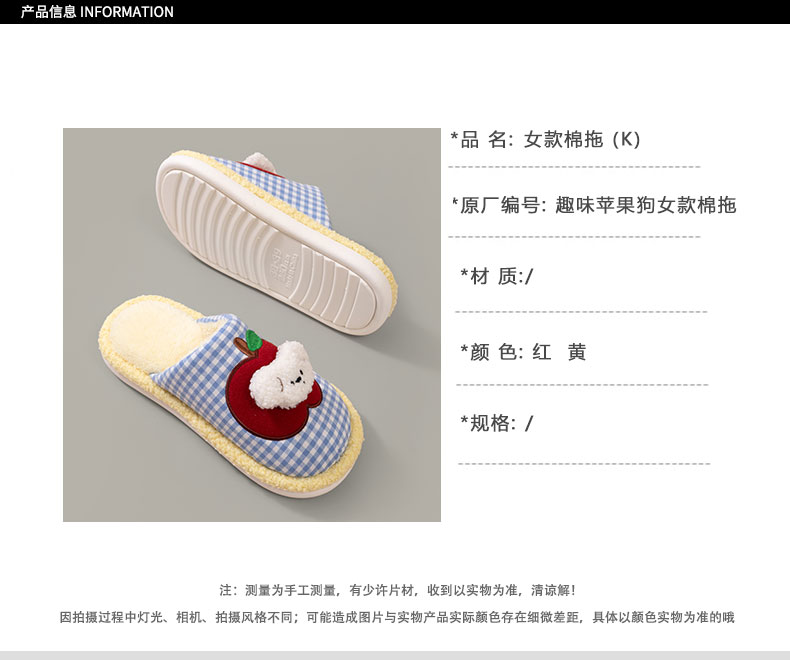 可爱趣味苹果狗女款棉拖女款棉拖-纪念日百货门店同款 164693536