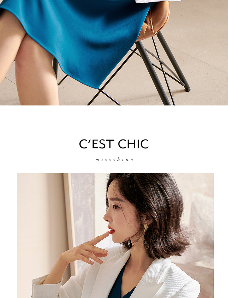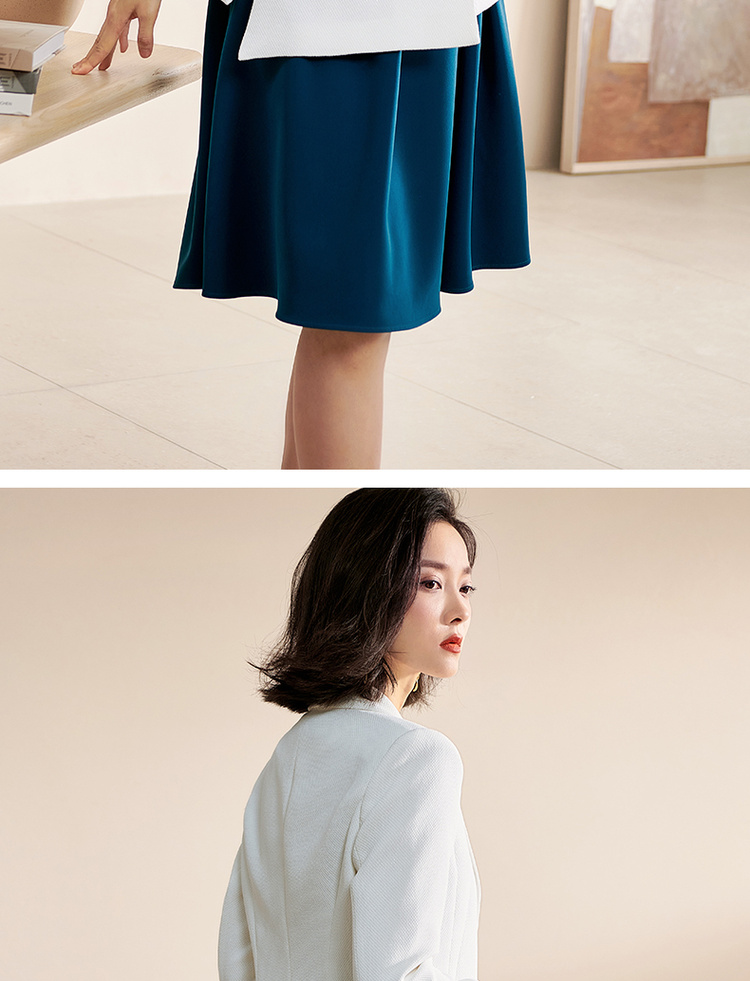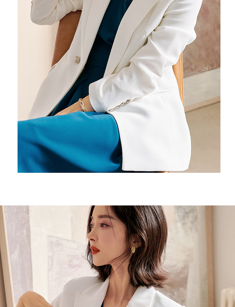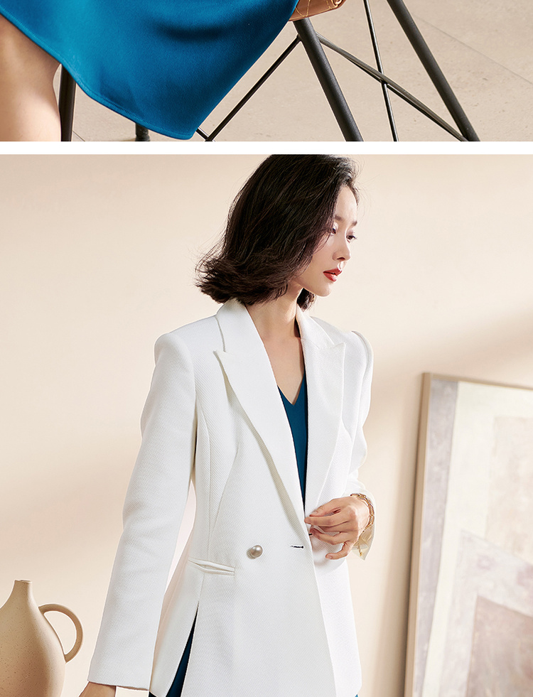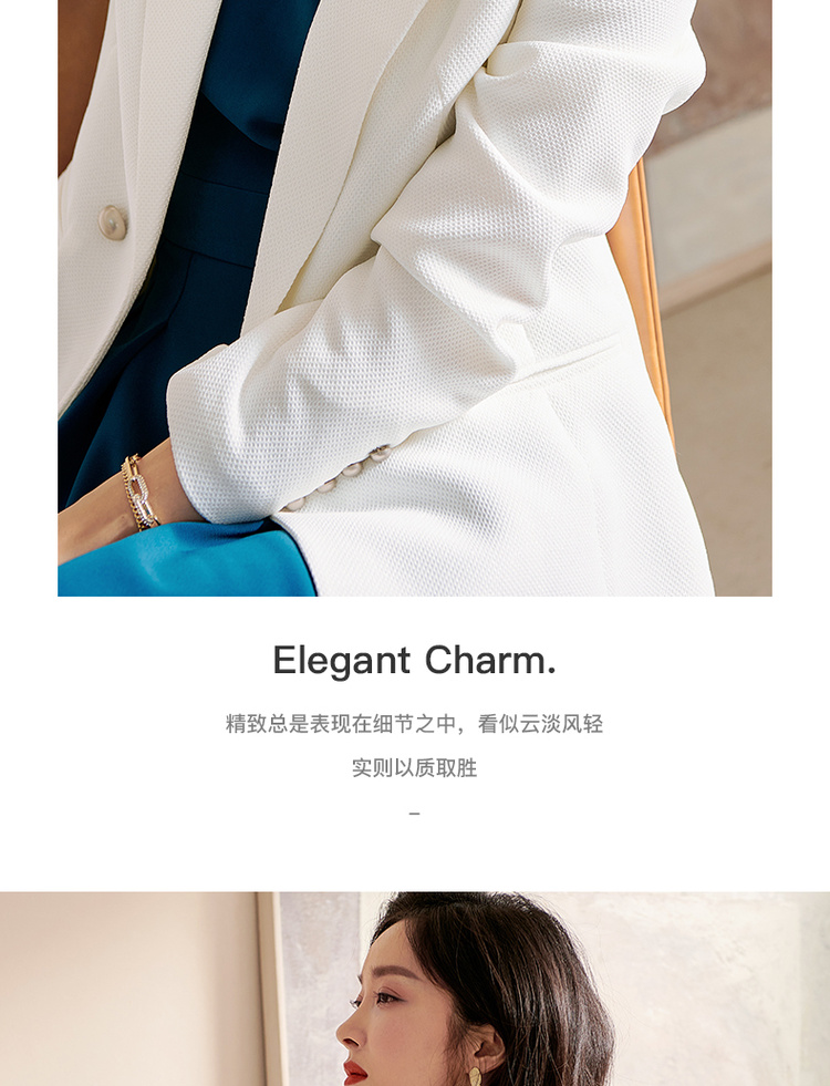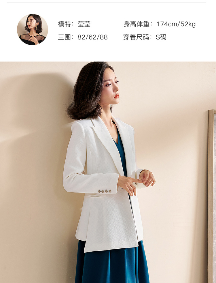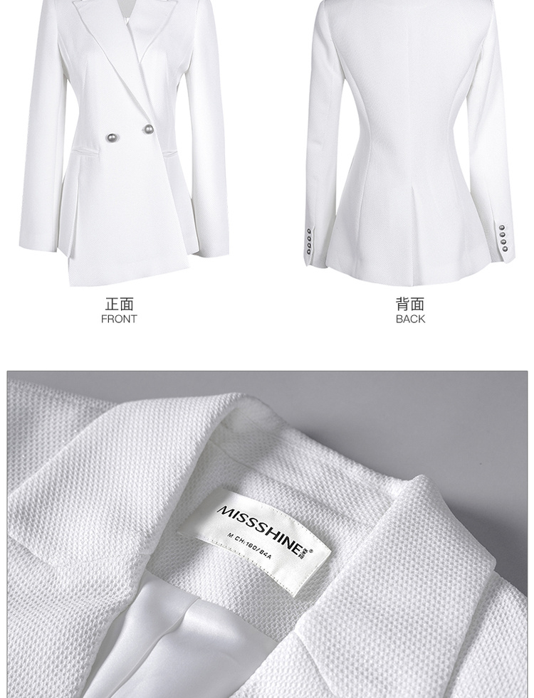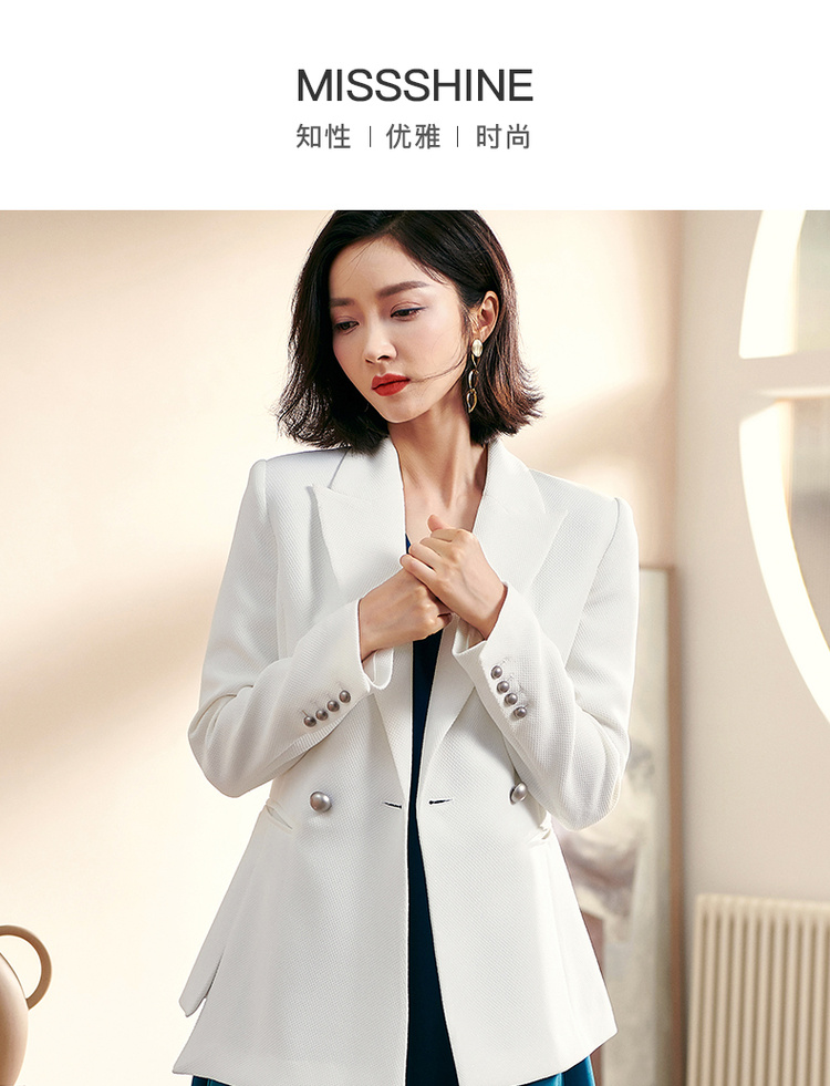 米思阳2022秋装新款时尚不对称设计感修身显瘦白色西装外套女0600