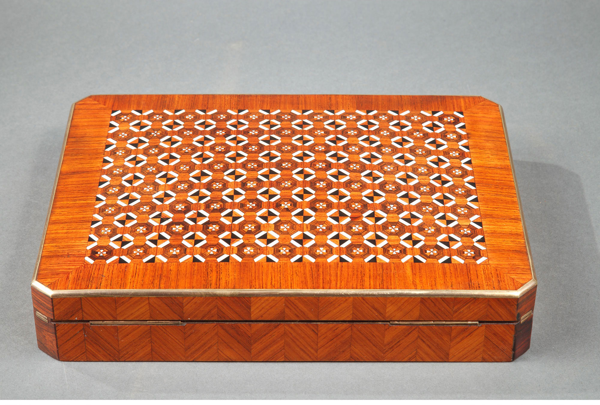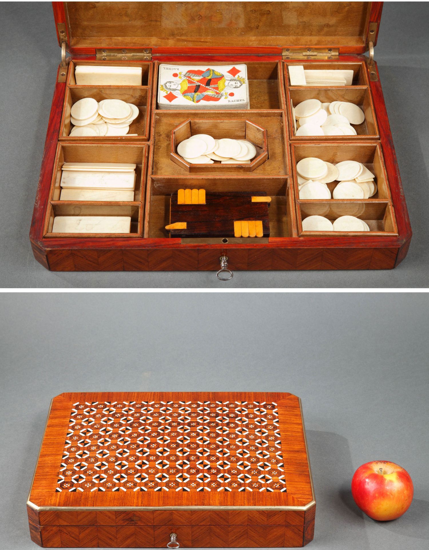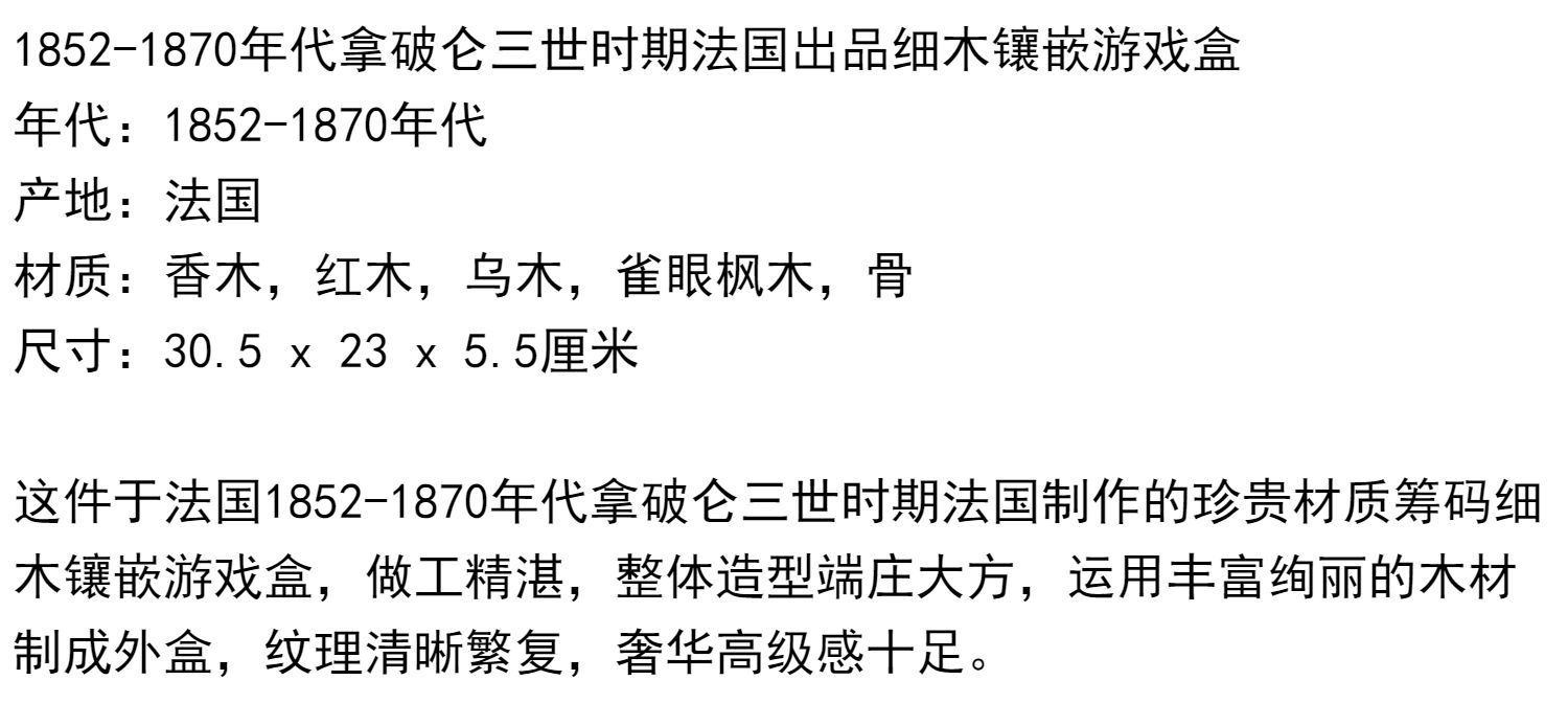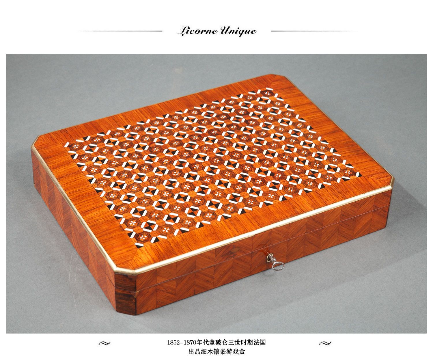 独角鹿西洋古董1852-1870年代拿破仑三世时期法国细木镶嵌游戏盒