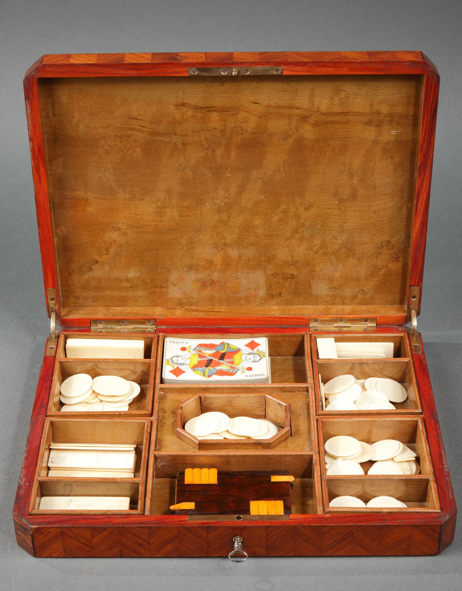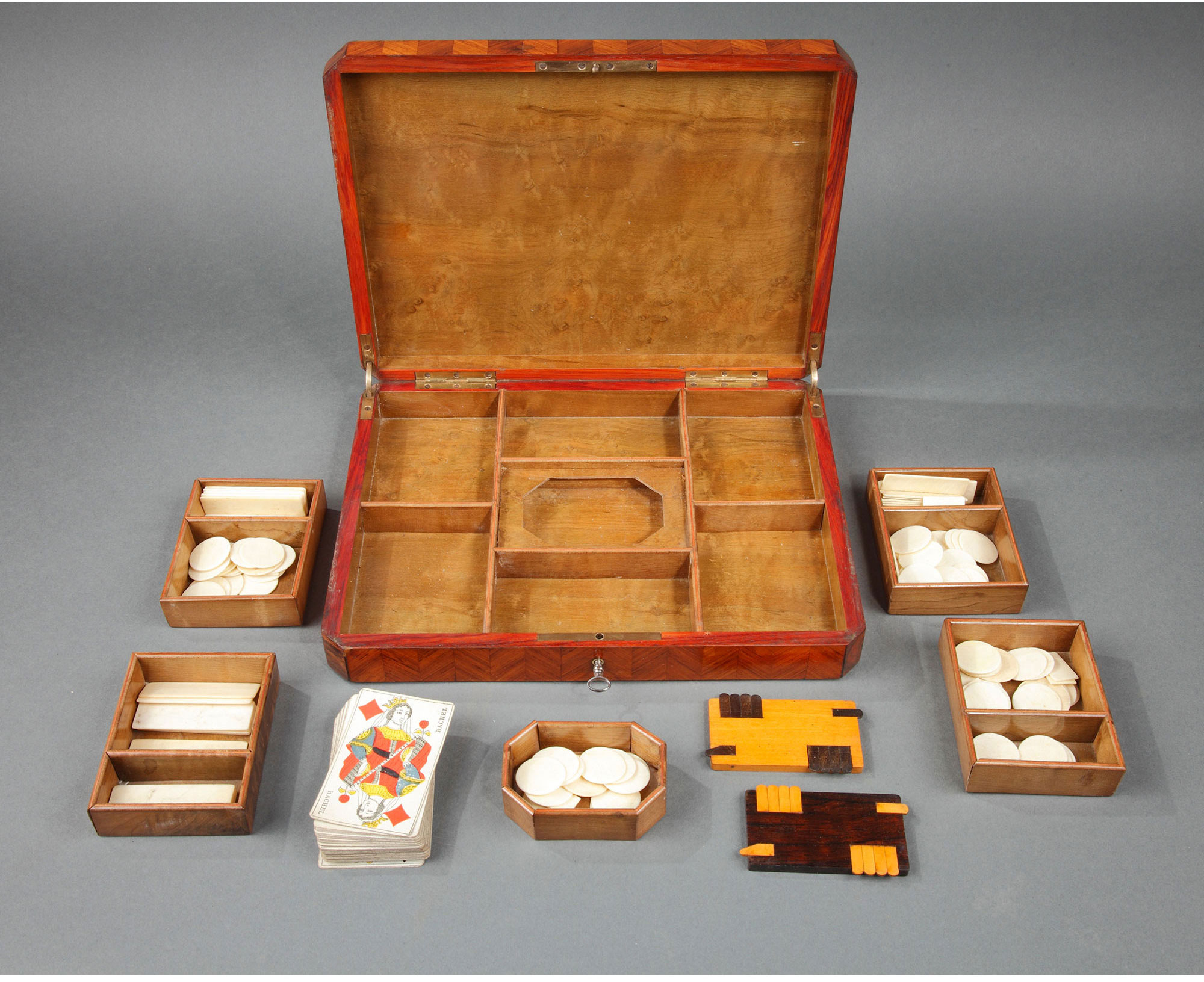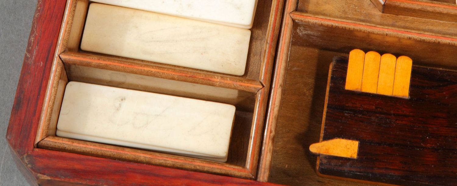 独角鹿西洋古董1852-1870年代拿破仑三世时期法国细木镶嵌游戏盒