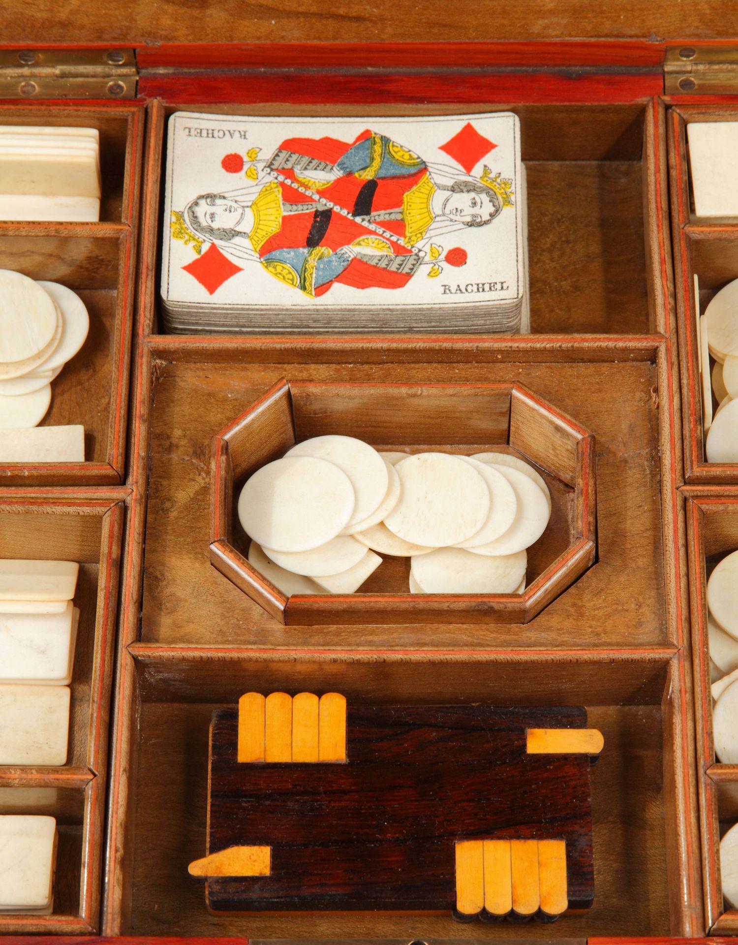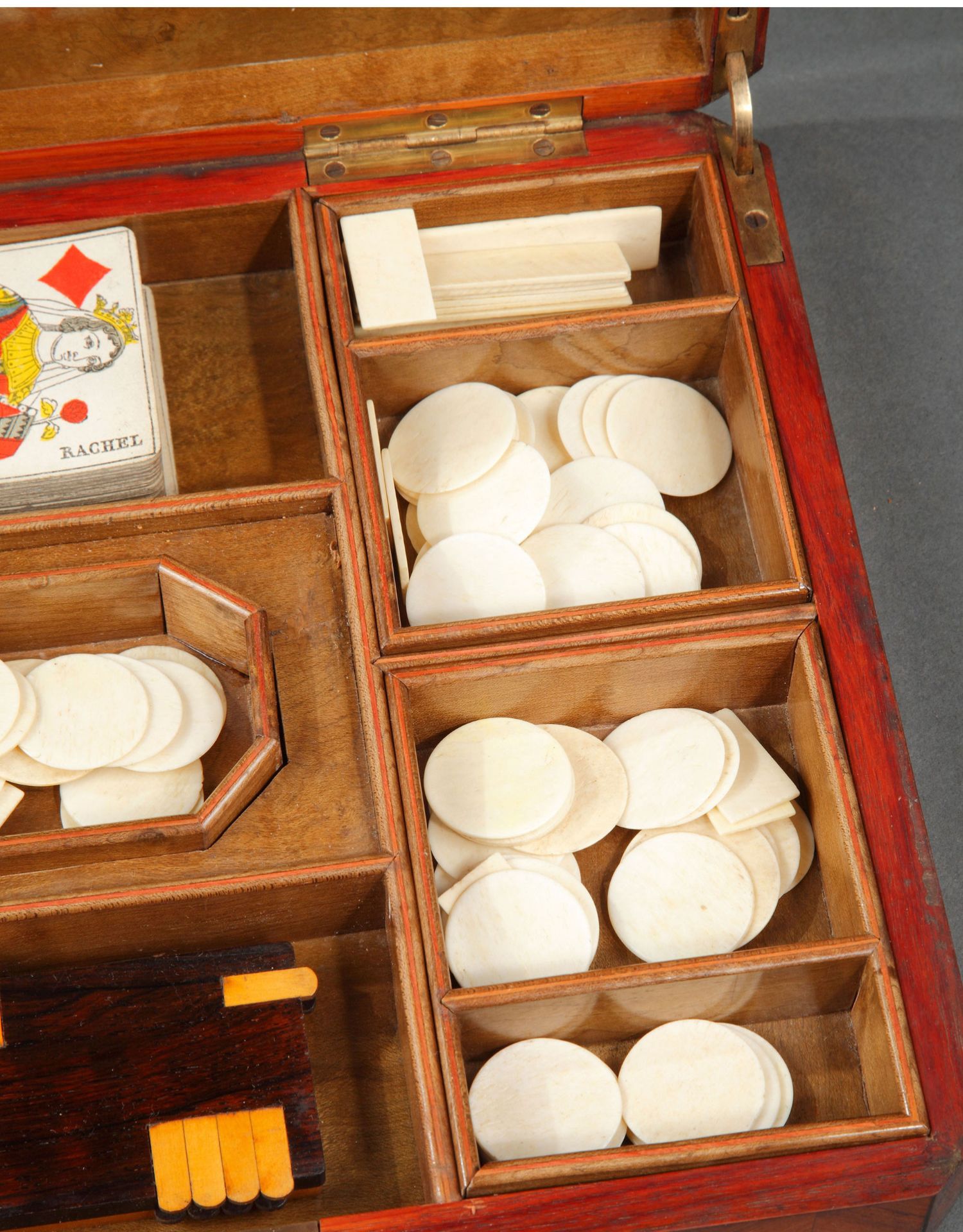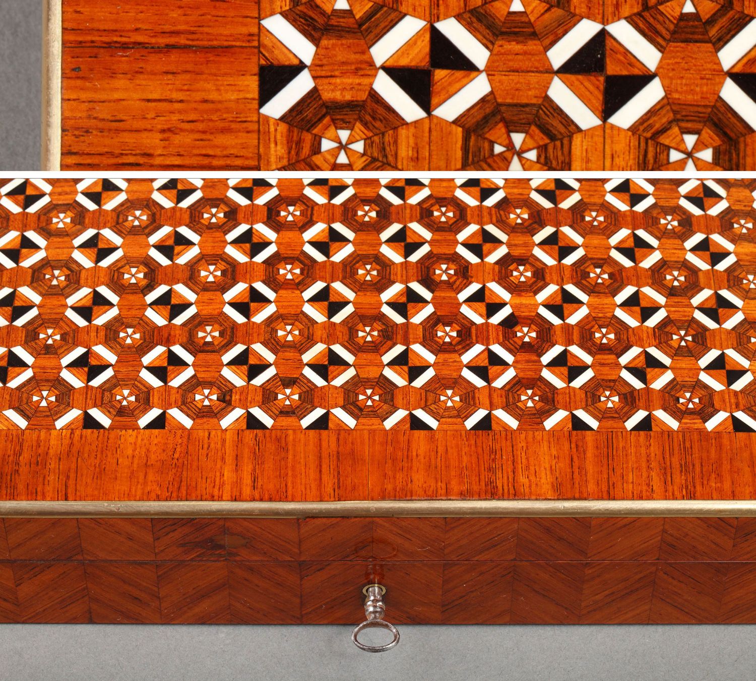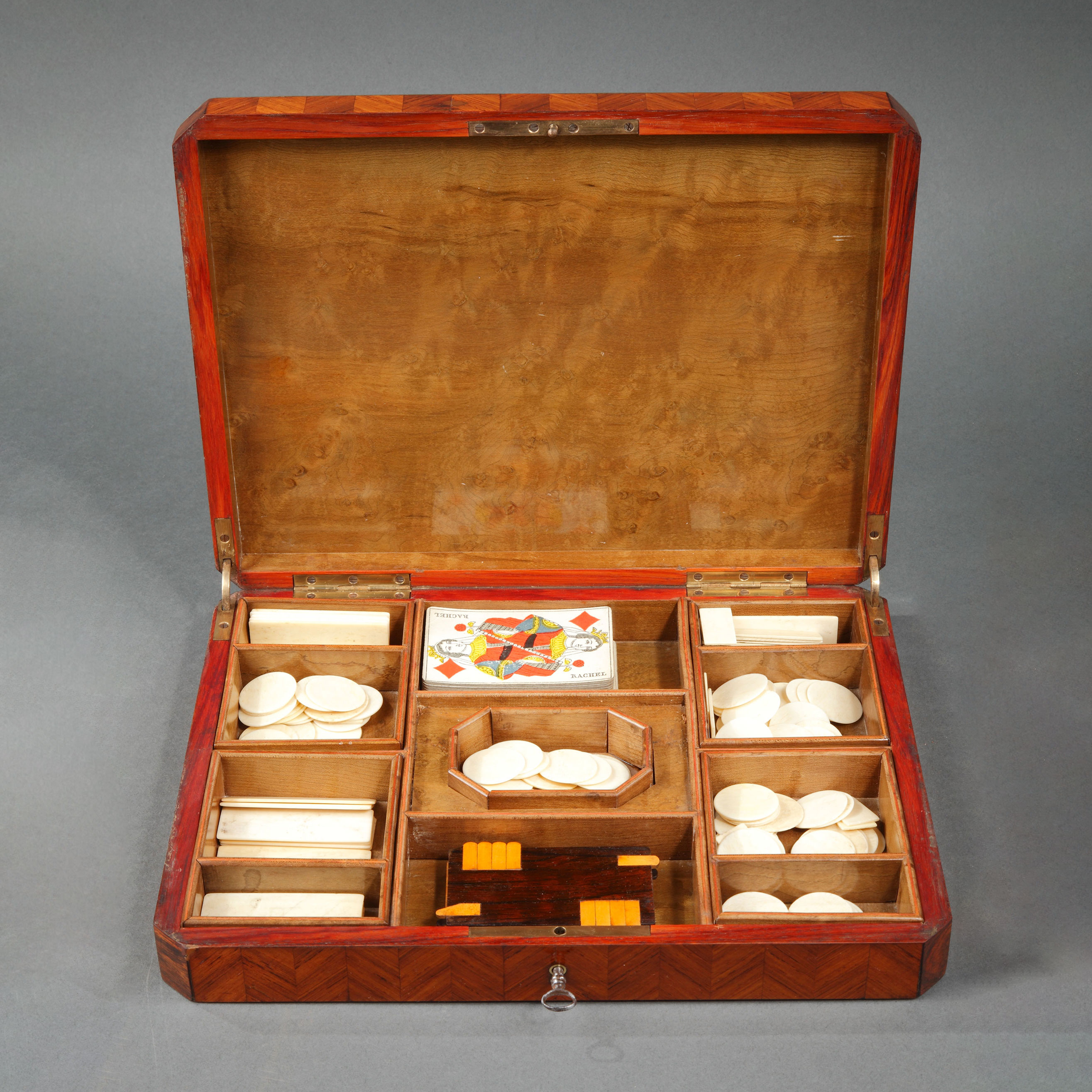 独角鹿西洋古董1852-1870年代拿破仑三世时期法国细木镶嵌游戏盒