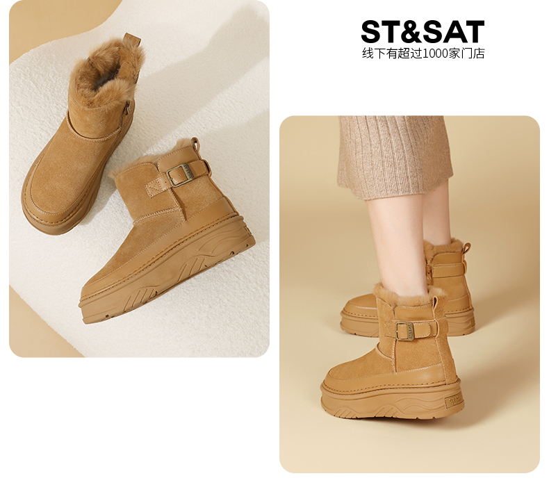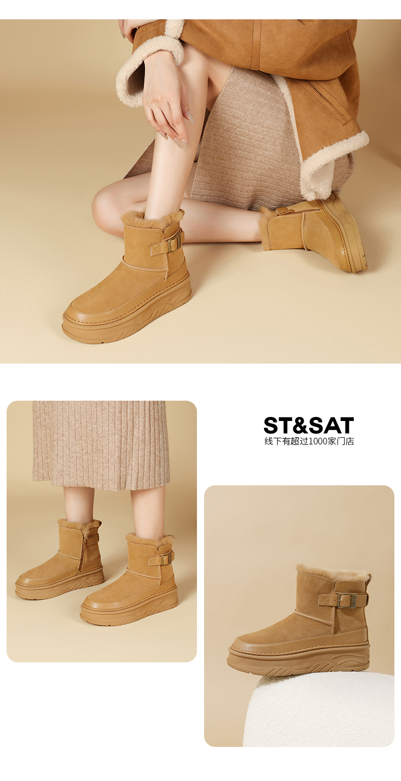 星期六百搭扣带加绒厚底雪地靴SSC411A06P