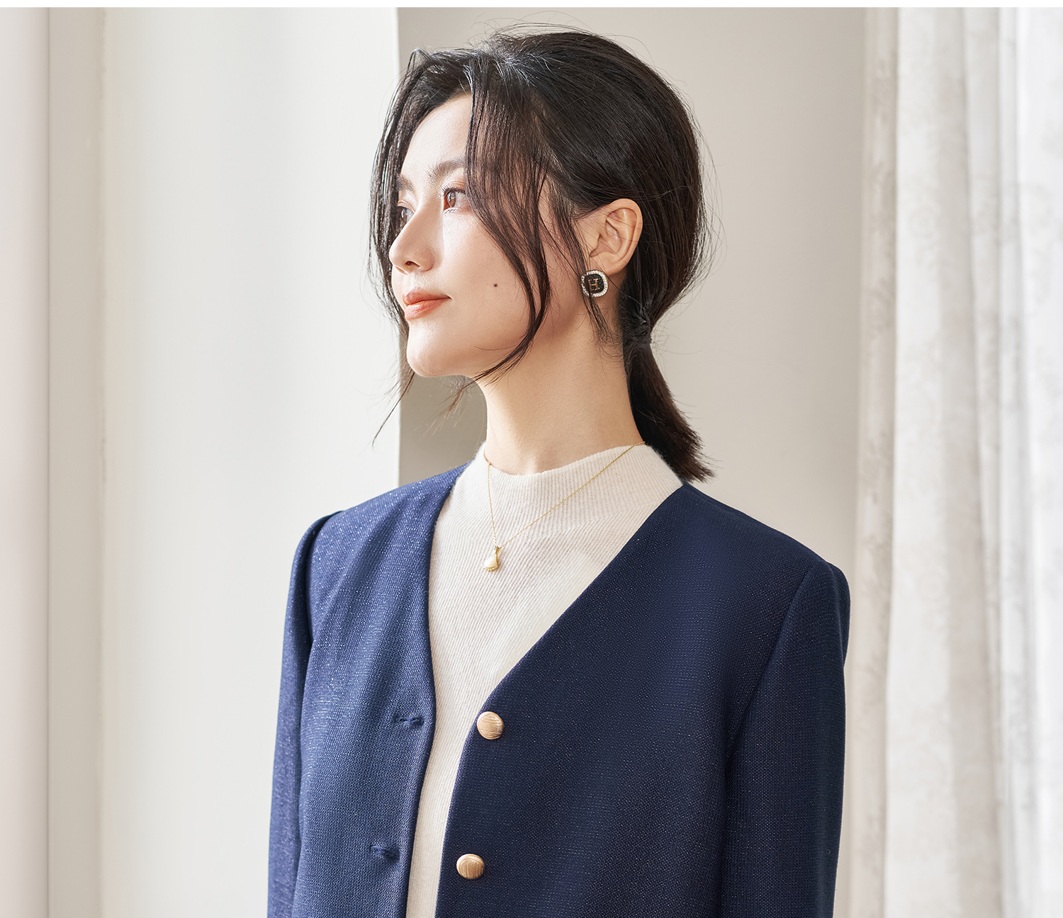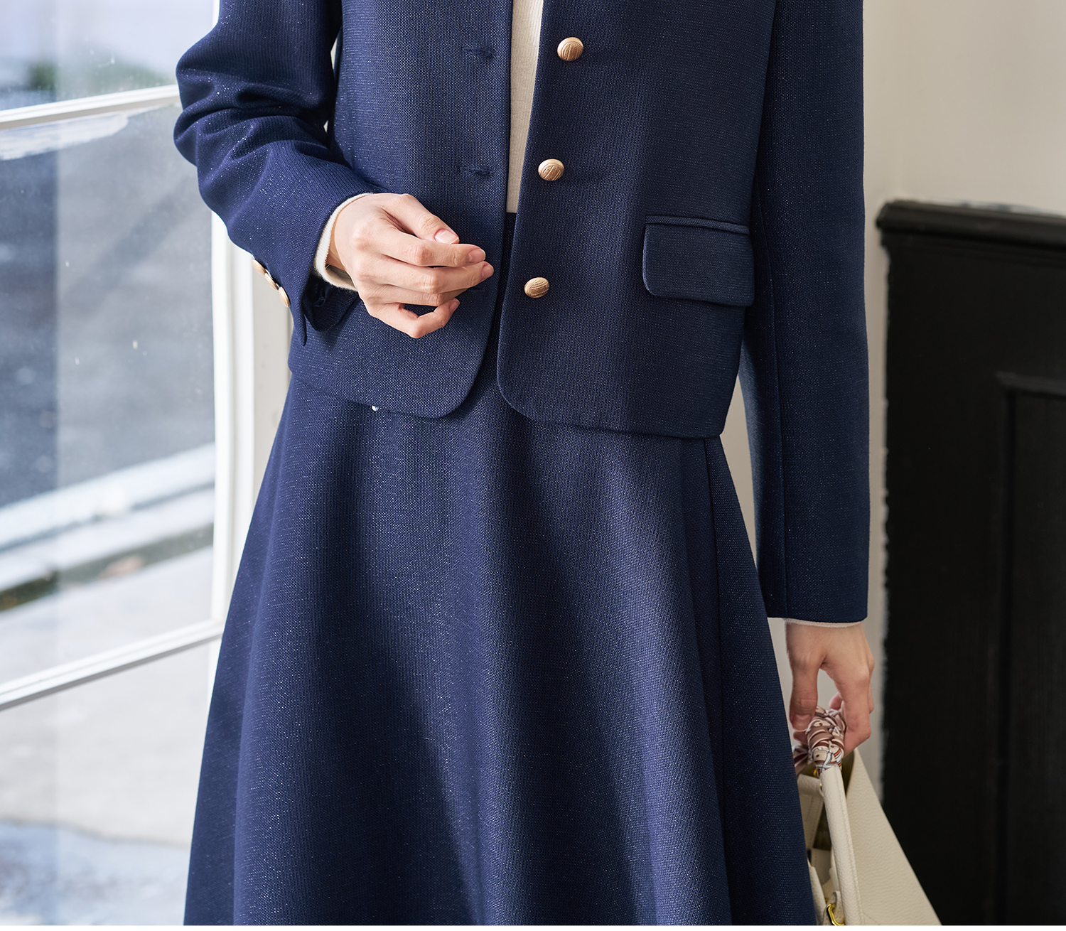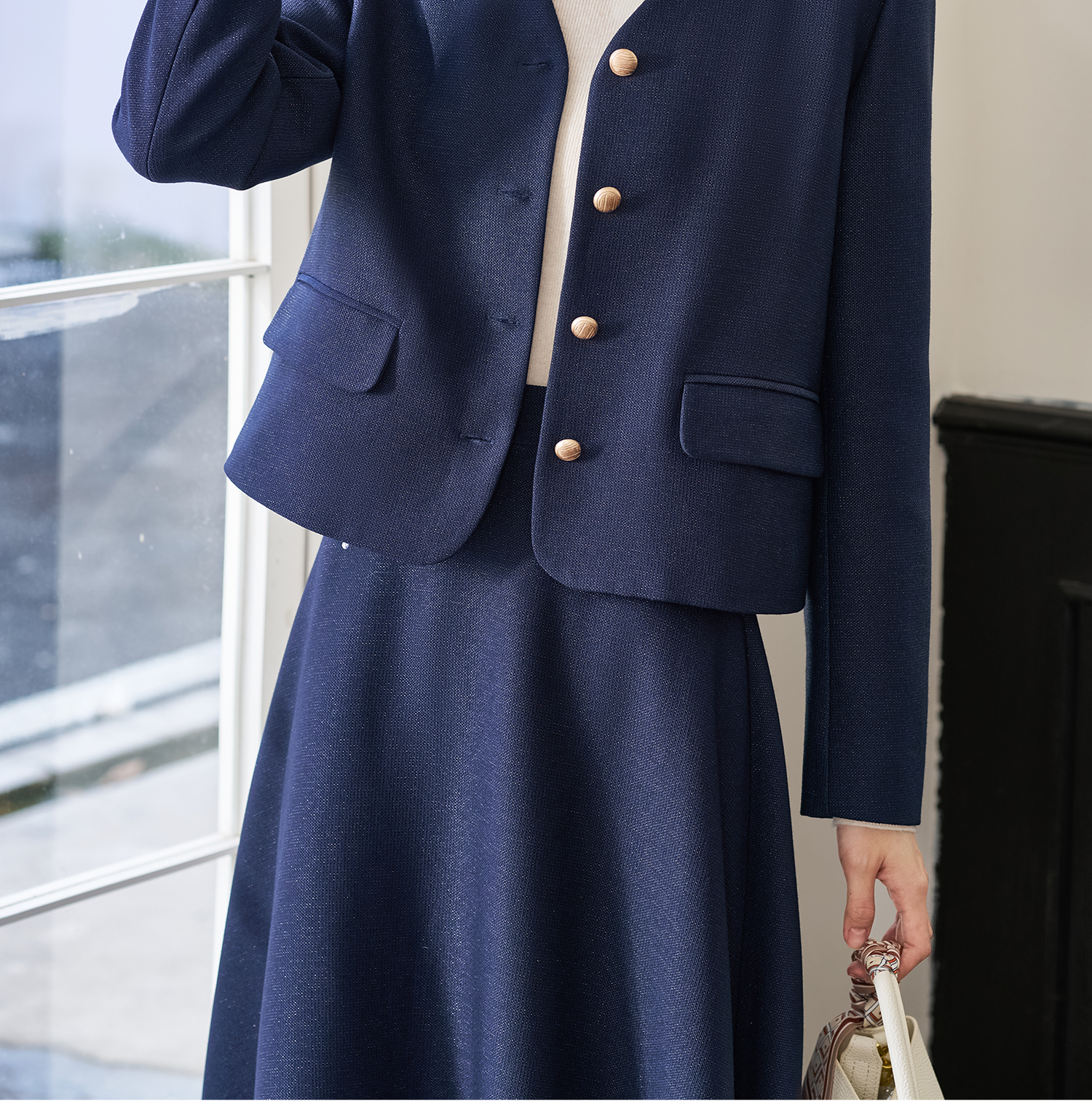 剩L/XL 【千金外套】米思阳2026春季新款名媛风小香风外套 复古显白蓝色 优雅时尚短外套