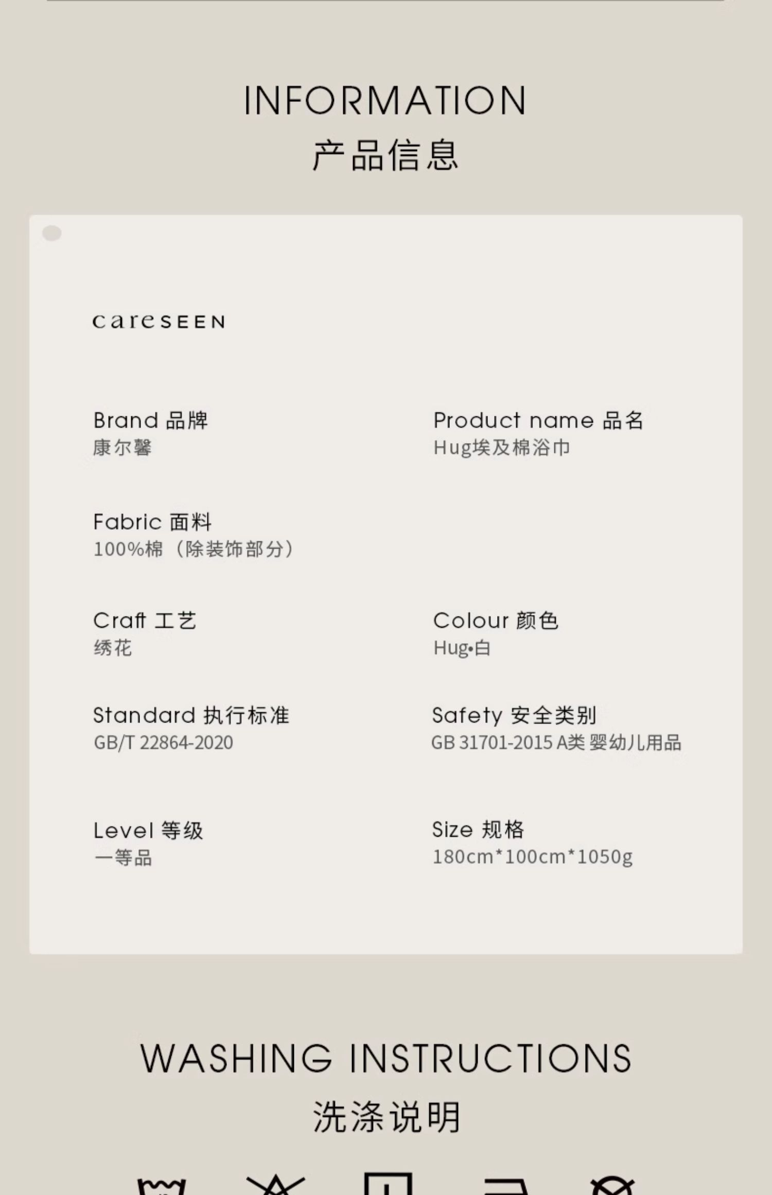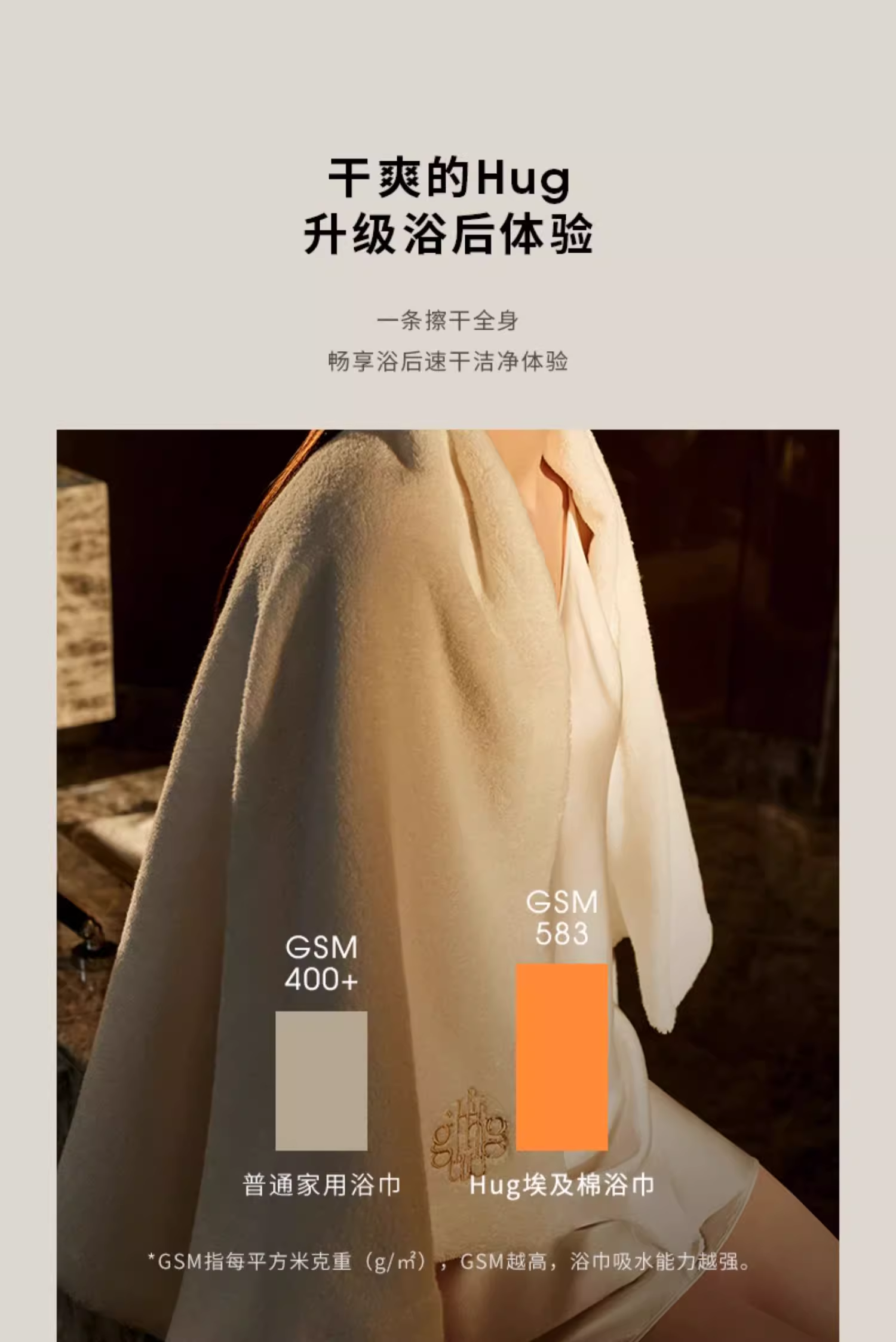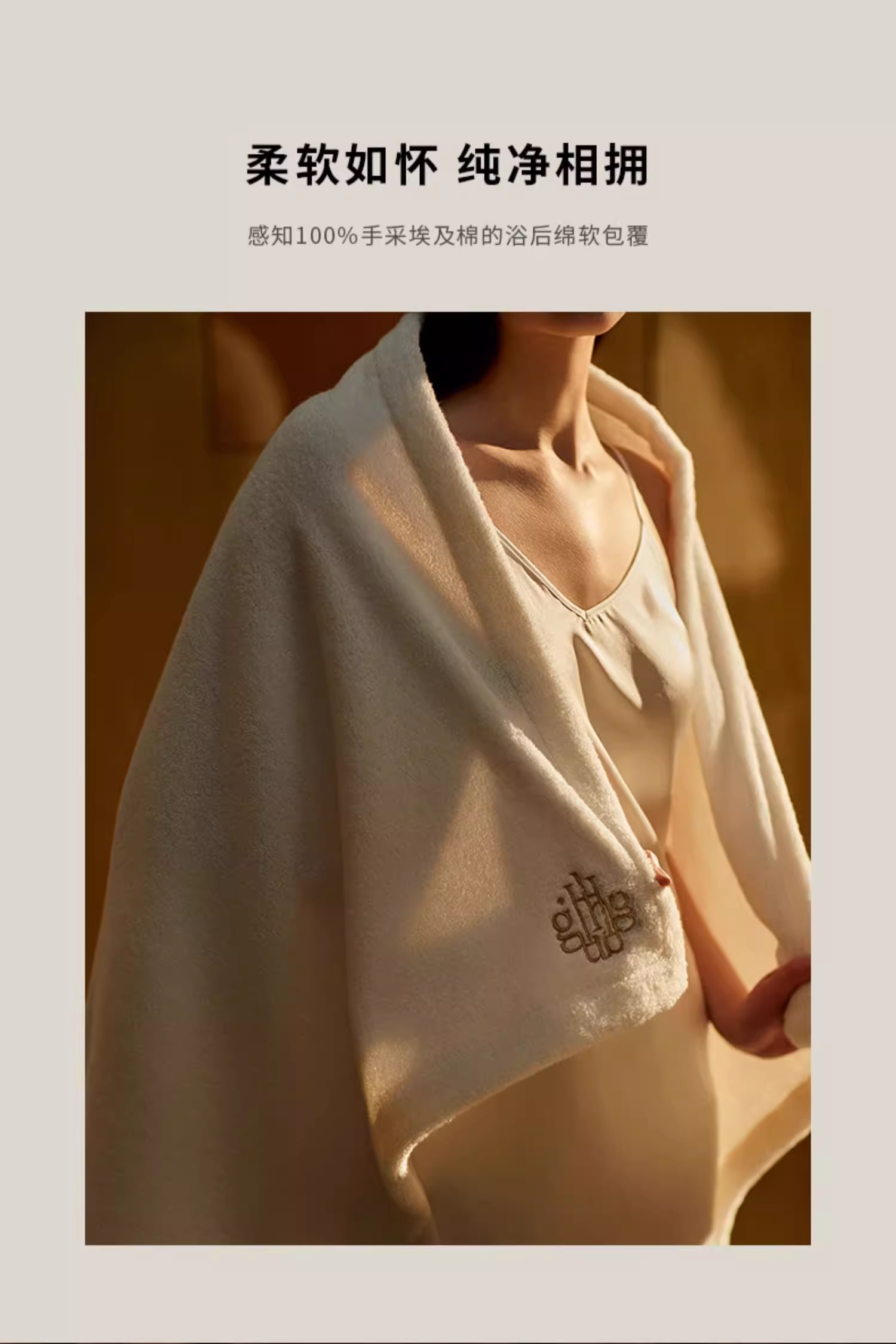 【Hug系列】康尔馨埃及棉浴巾超柔纯棉新款加大浴巾女冬季高级白