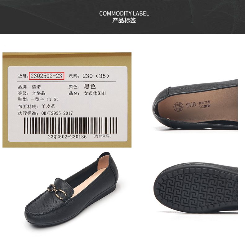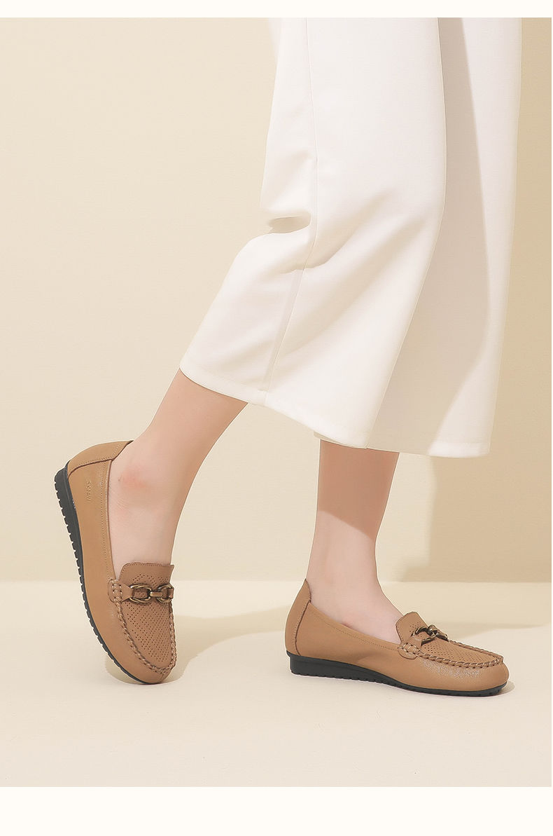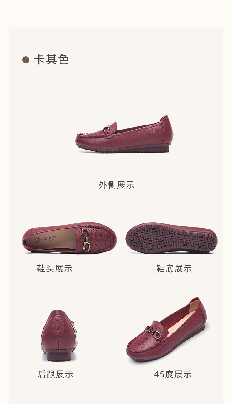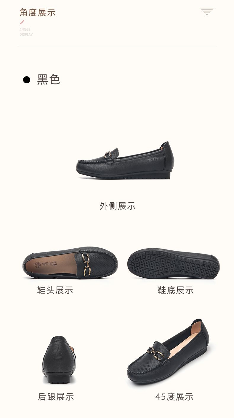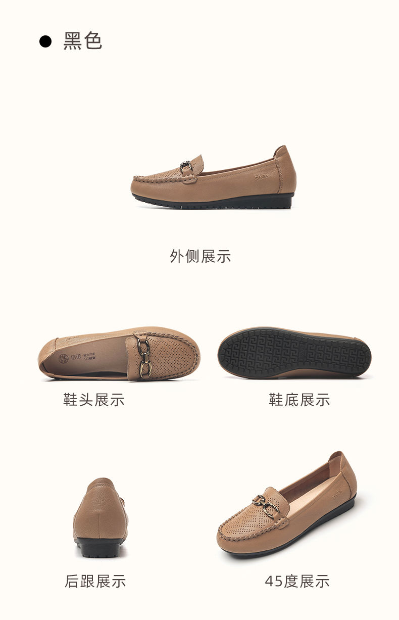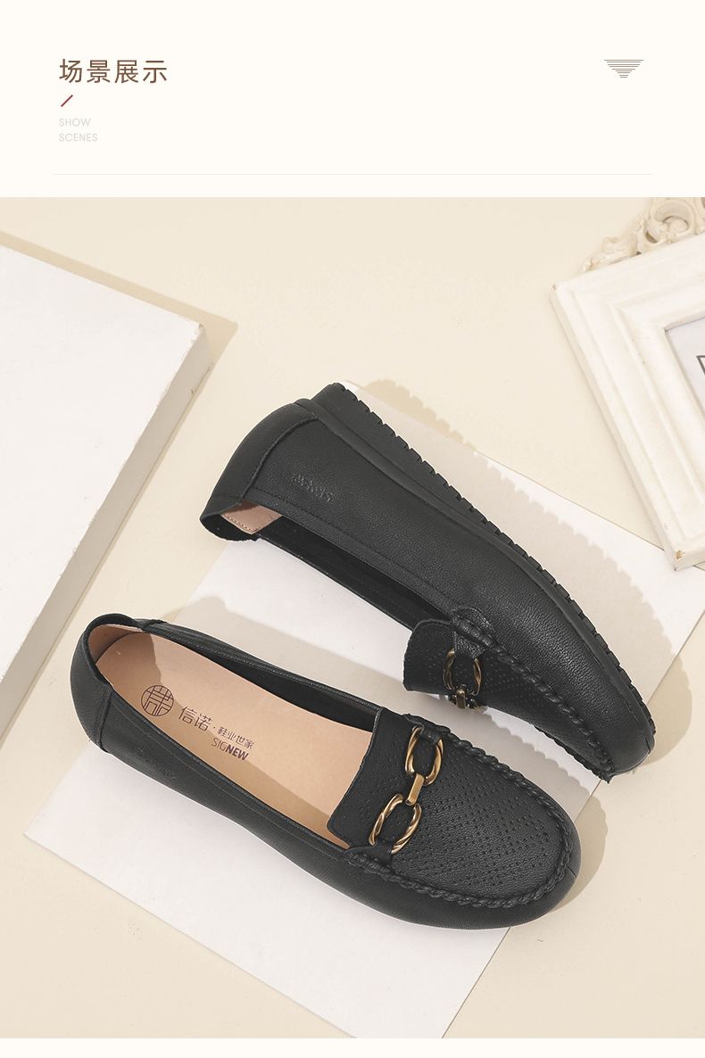 信诺真皮乐福鞋女平底透气2023新款夏季中年妈妈皮鞋软底豆豆鞋23Q2502-23