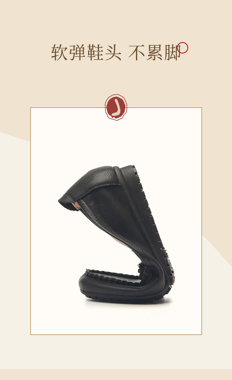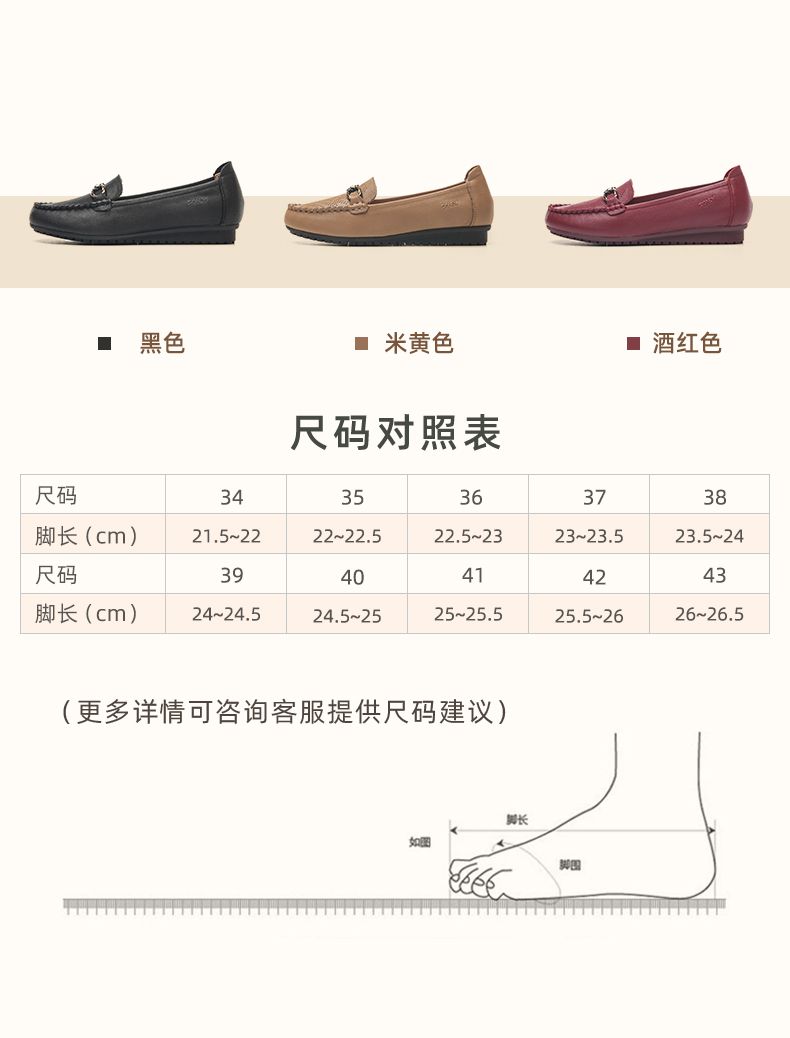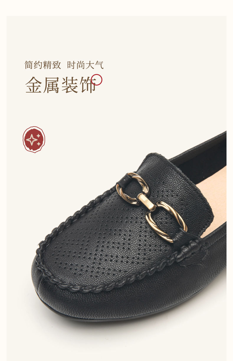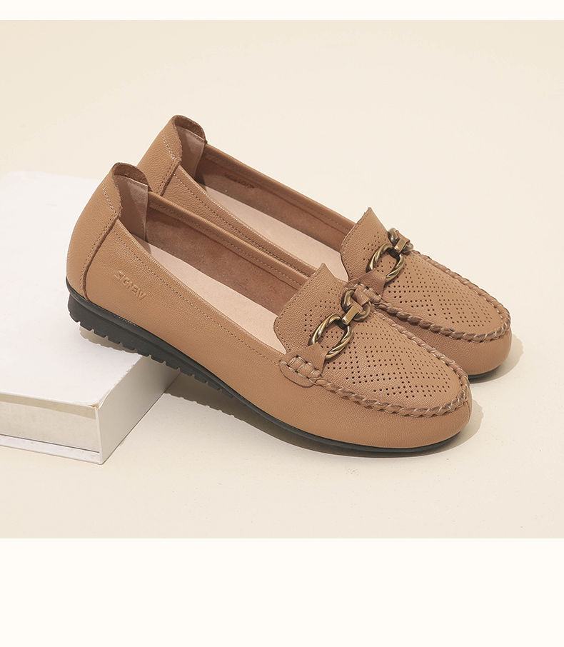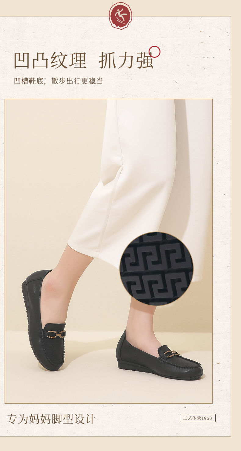 信诺真皮乐福鞋女平底透气2023新款夏季中年妈妈皮鞋软底豆豆鞋23Q2502-23