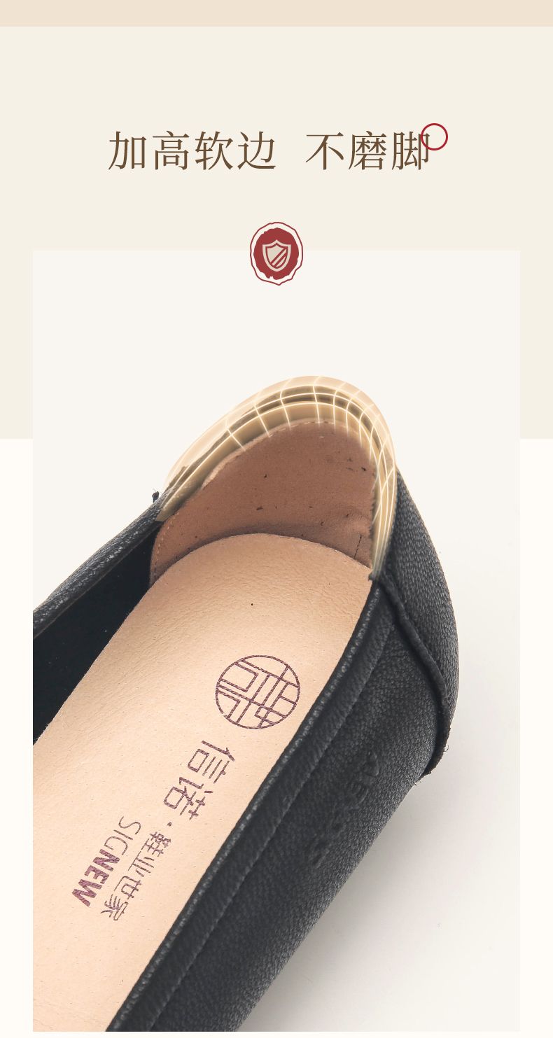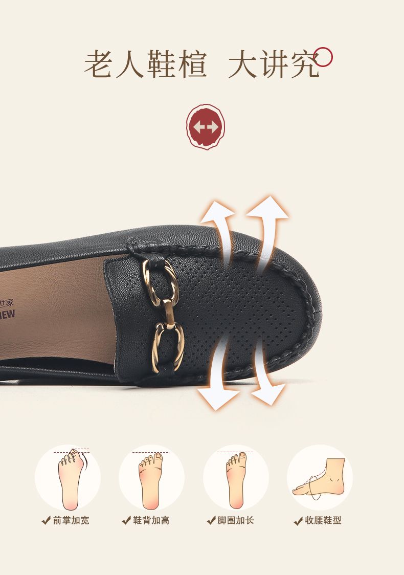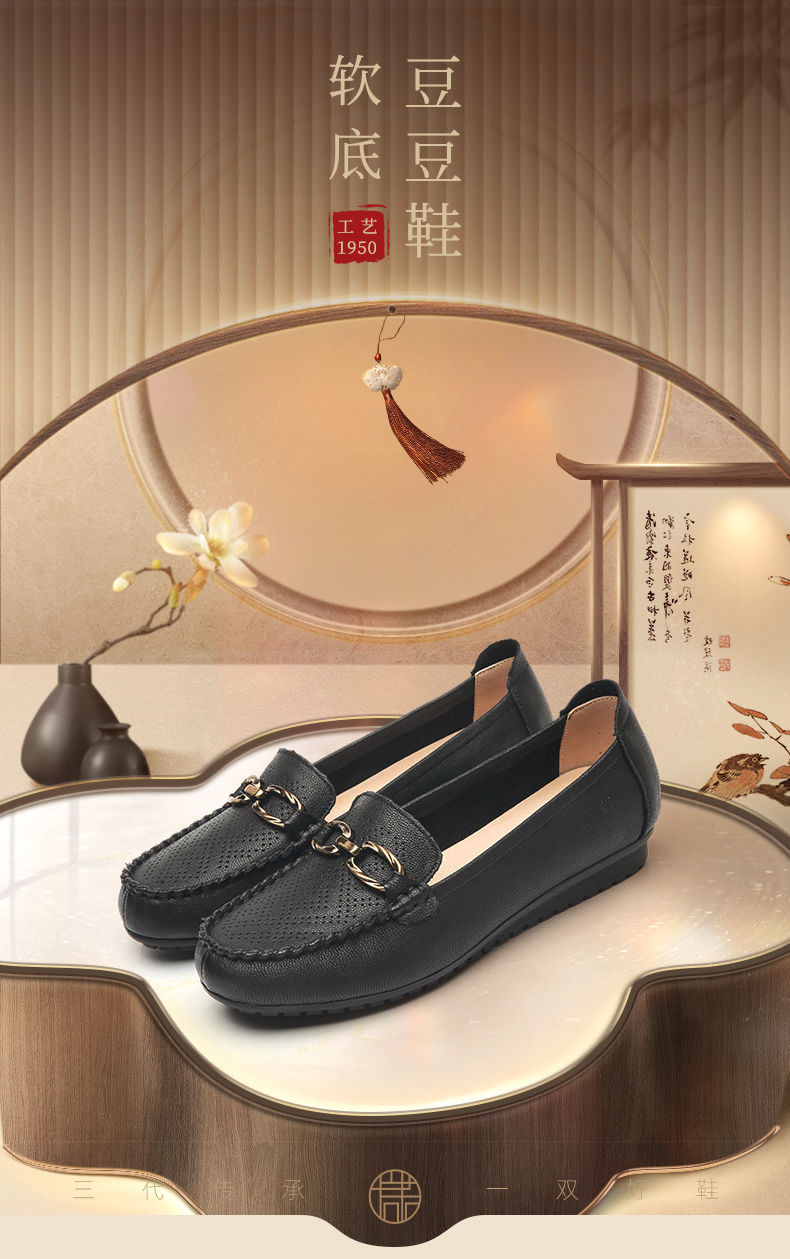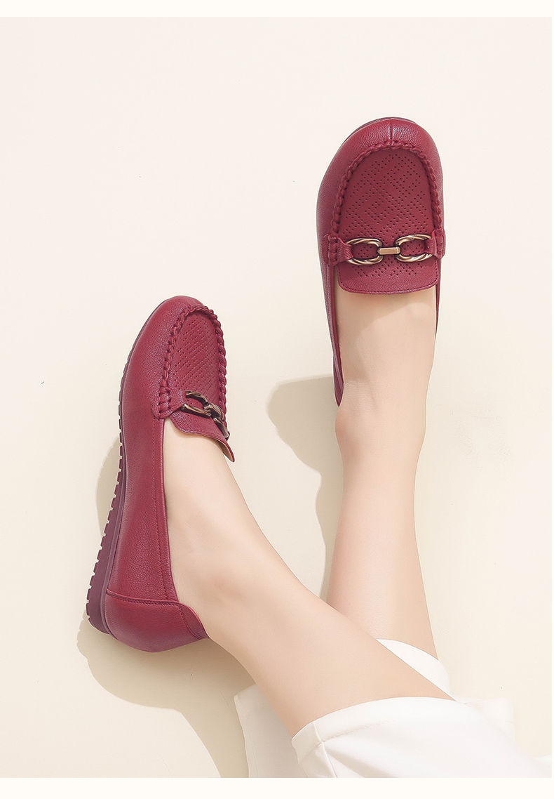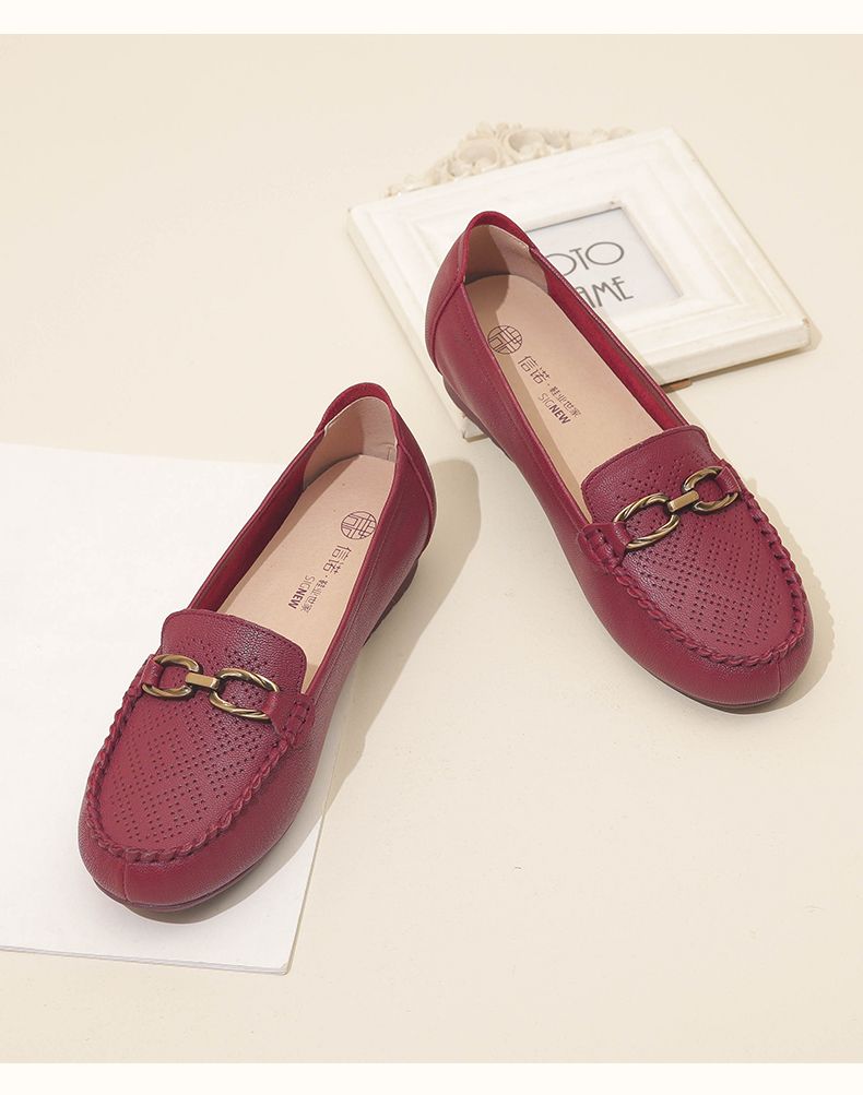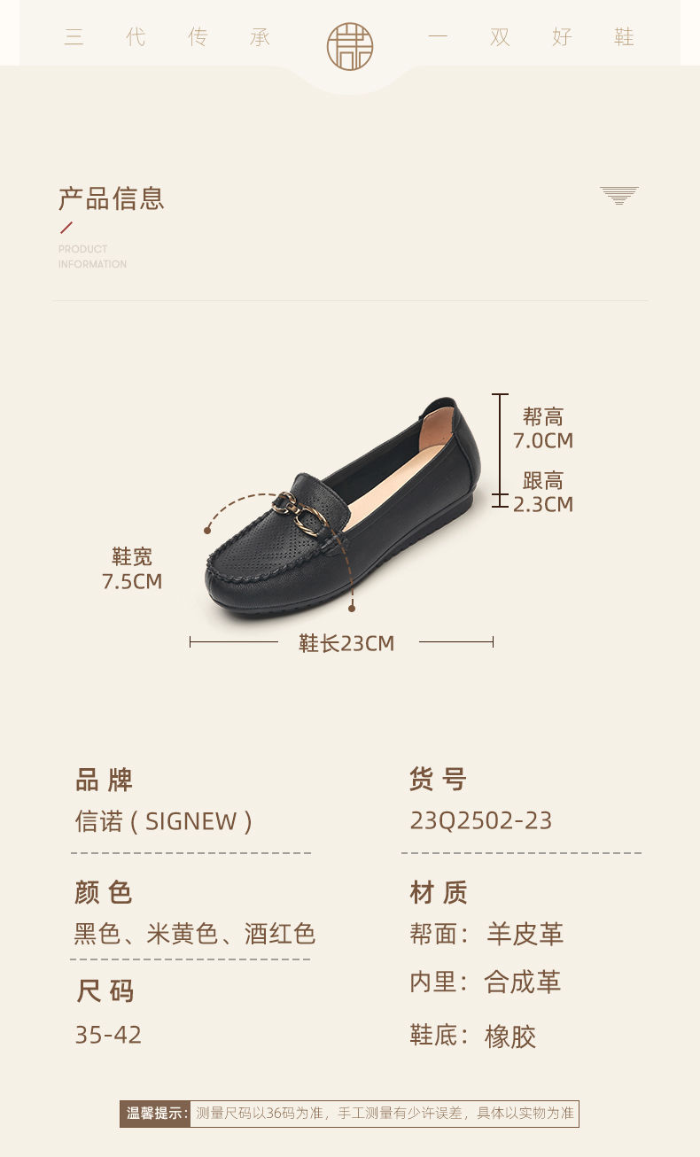 信诺真皮乐福鞋女平底透气2023新款夏季中年妈妈皮鞋软底豆豆鞋23Q2502-23