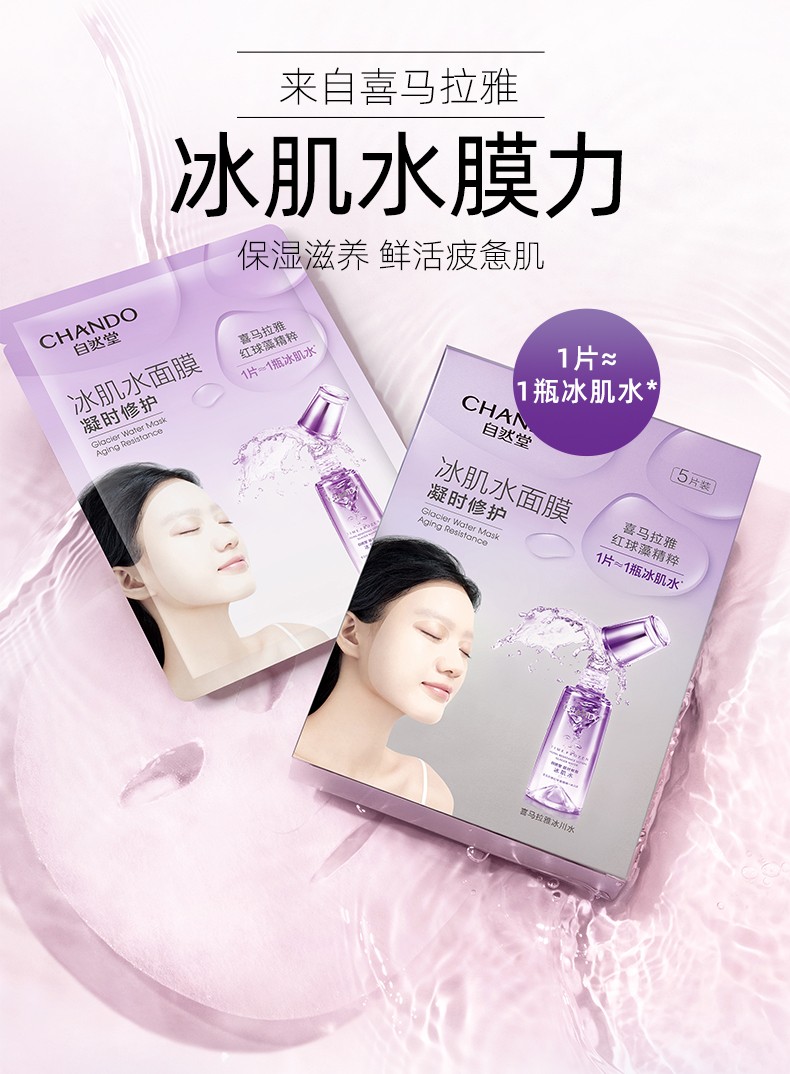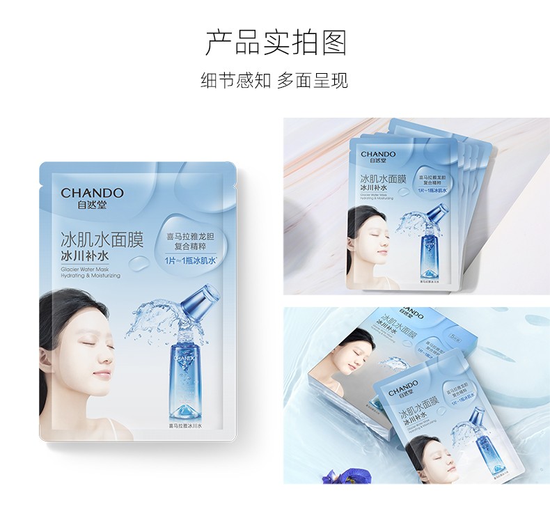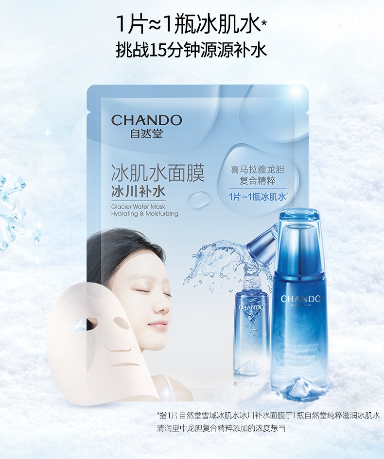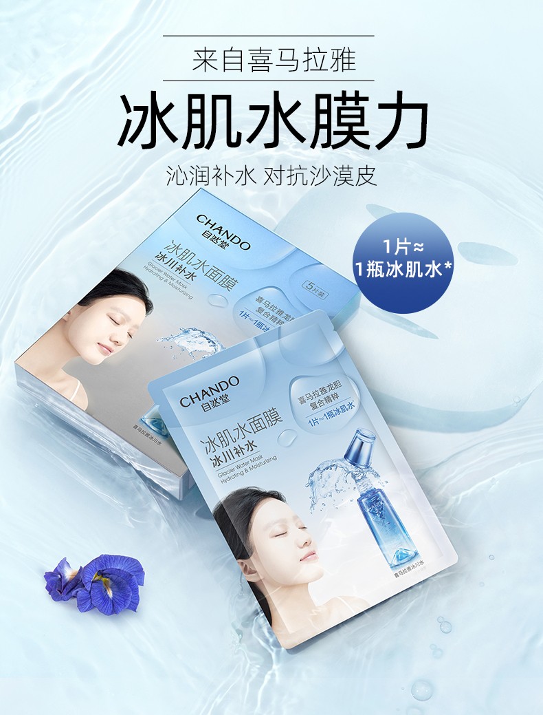 自然堂冰肌水面膜 深层补水修护滋养保湿提亮肤色改善粗糙暗沉男女面部护肤面膜5盒