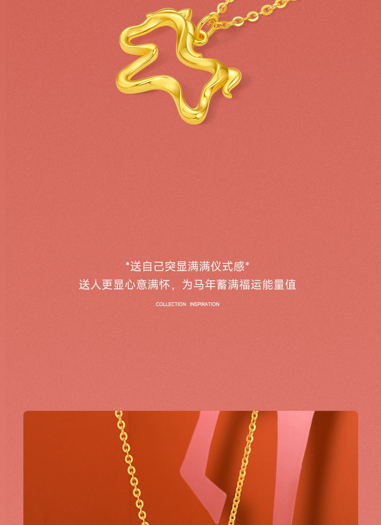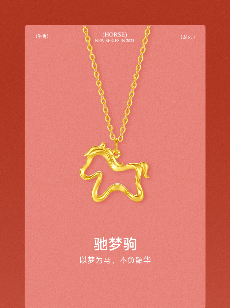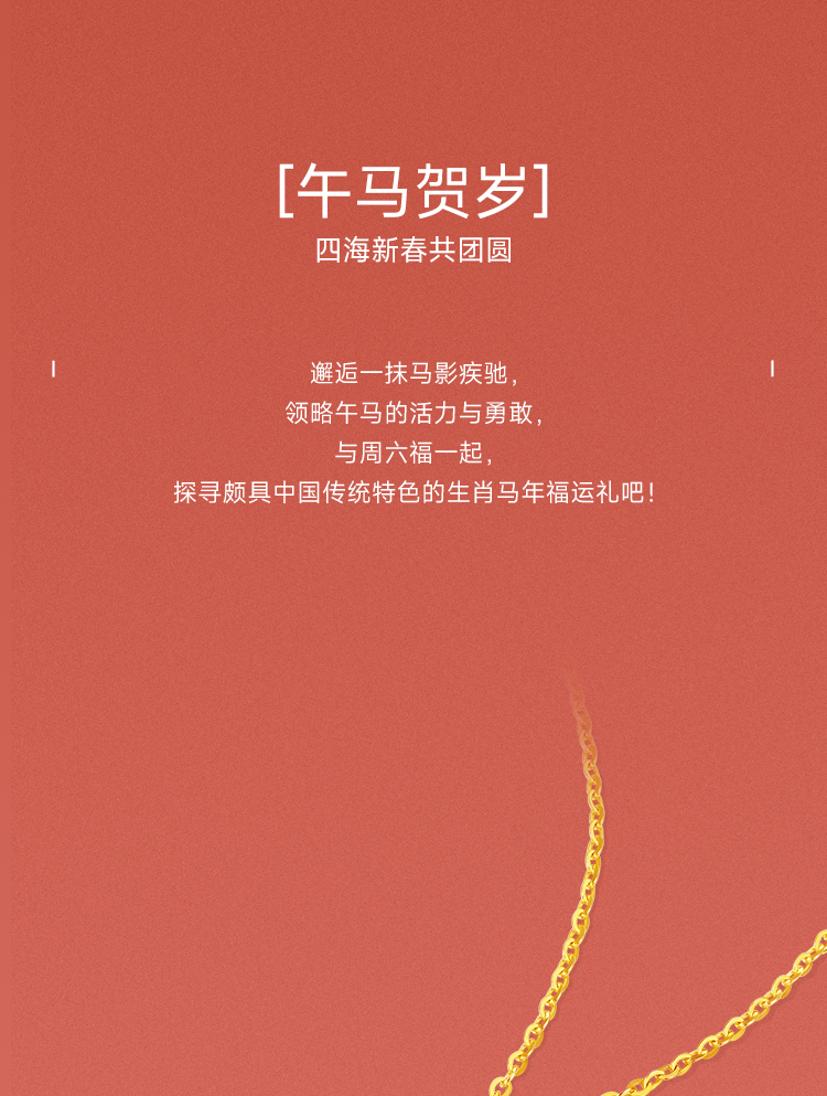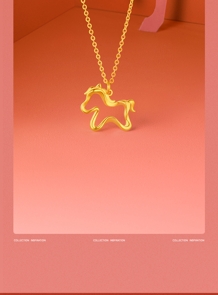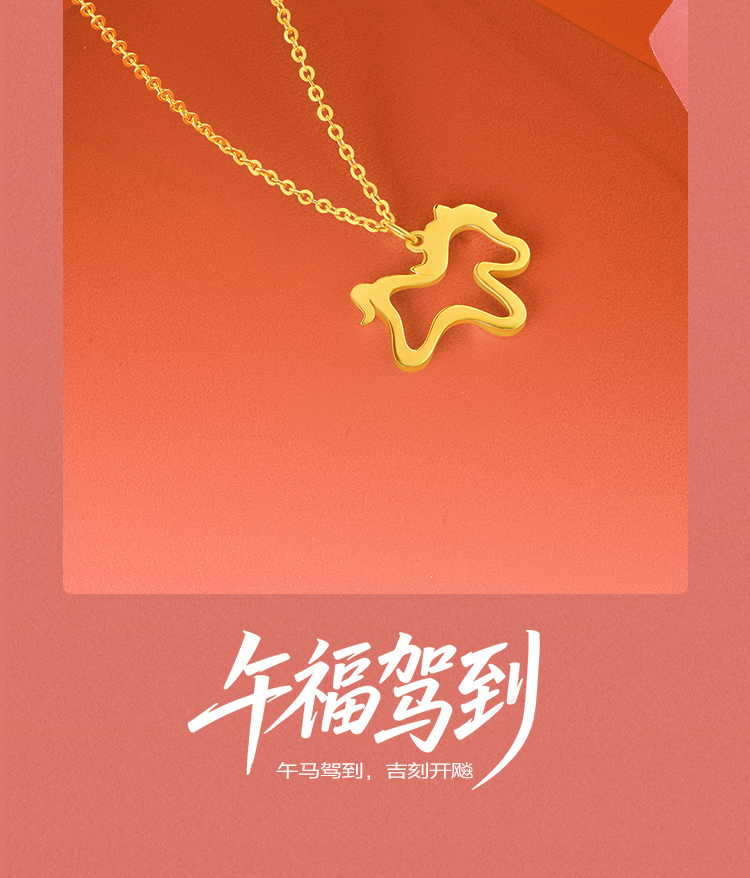 周六福黄18K金项链女驰梦驹链坠生肖马系列AU750多彩金跨年礼物