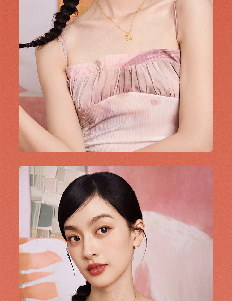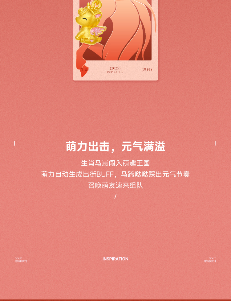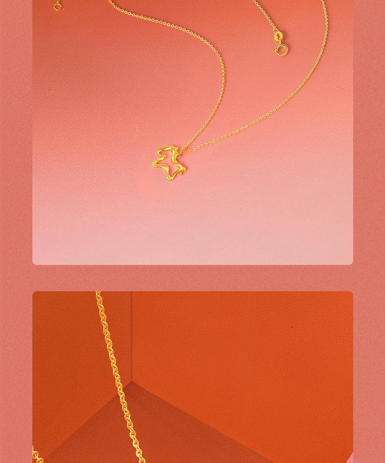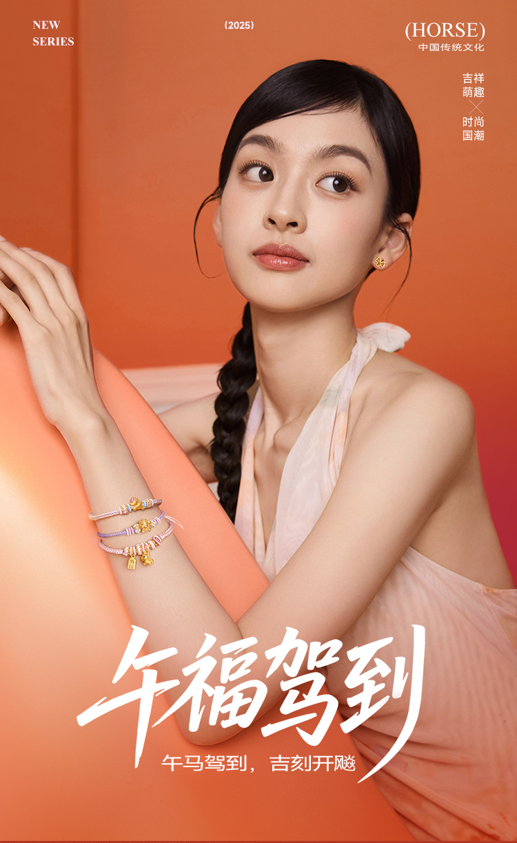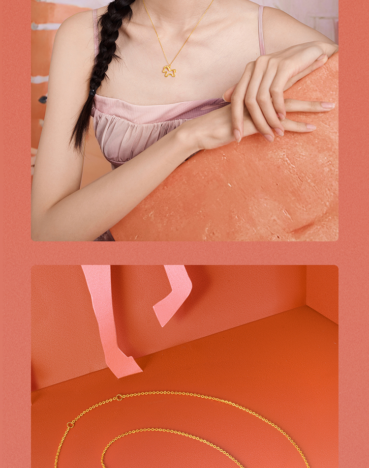 周六福黄18K金项链女驰梦驹链坠生肖马系列AU750多彩金跨年礼物