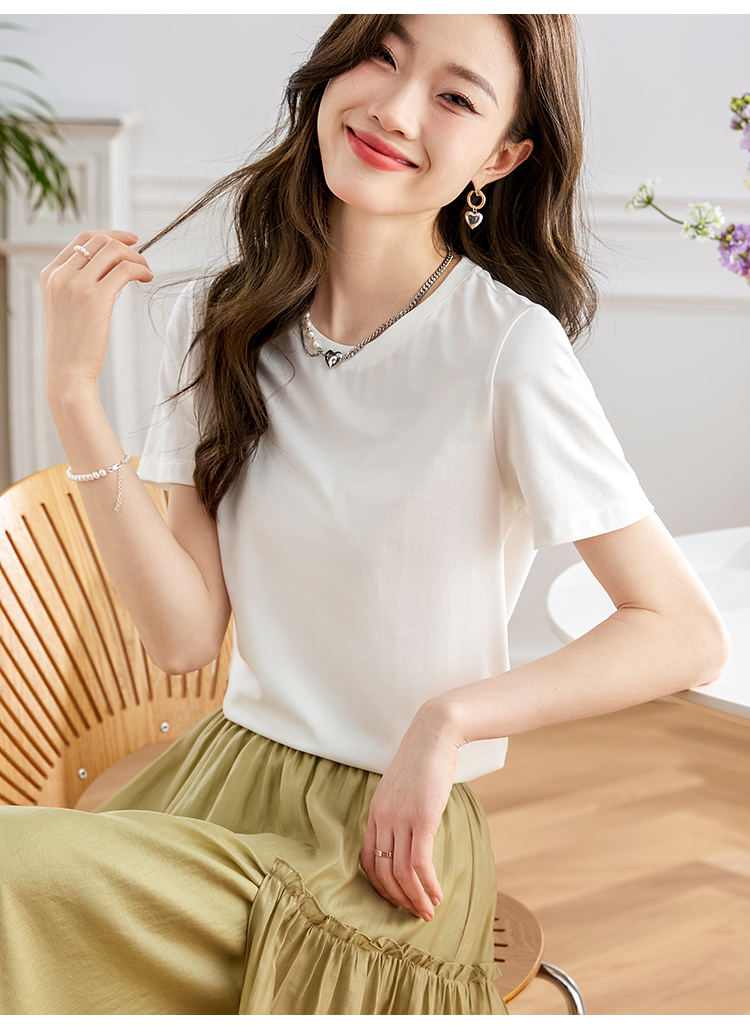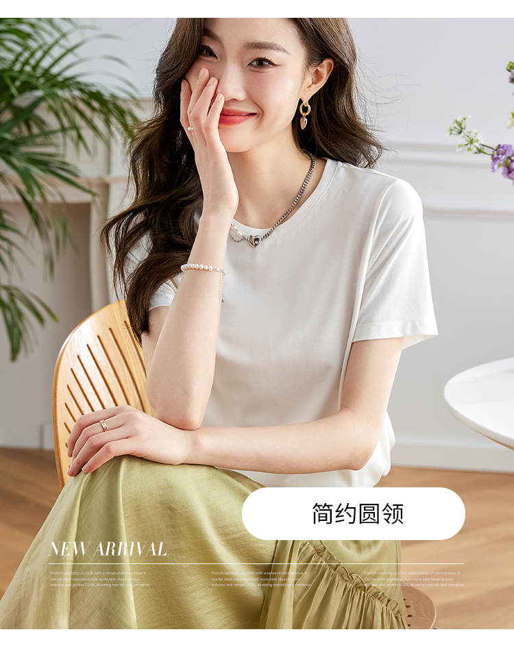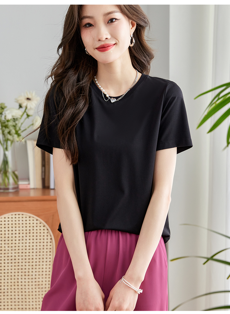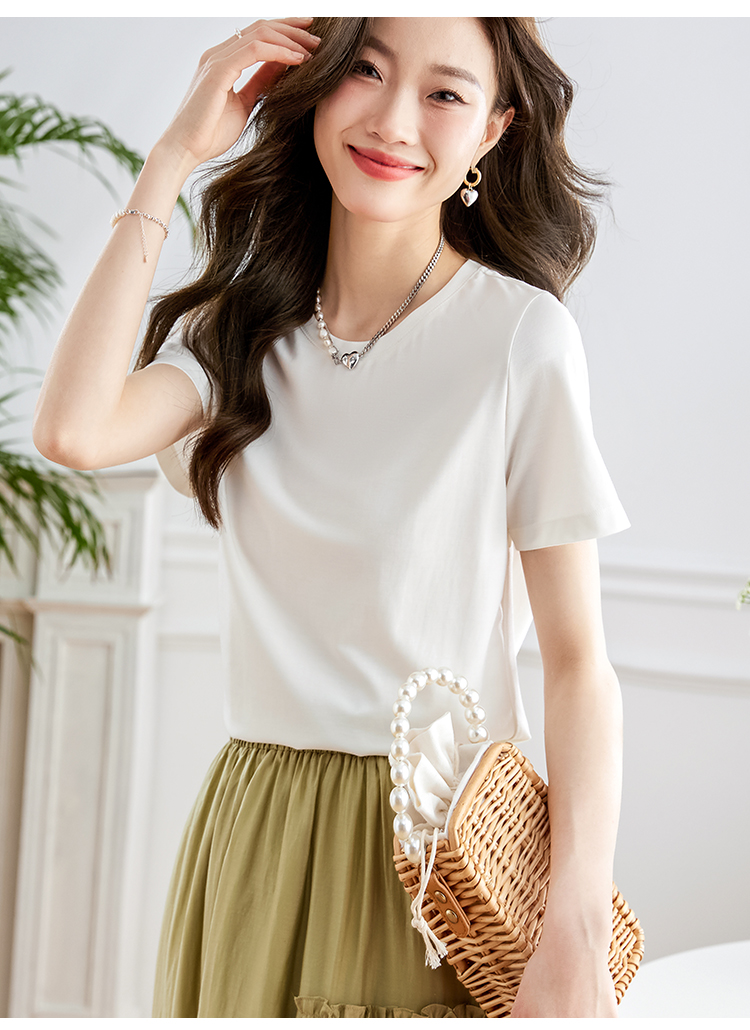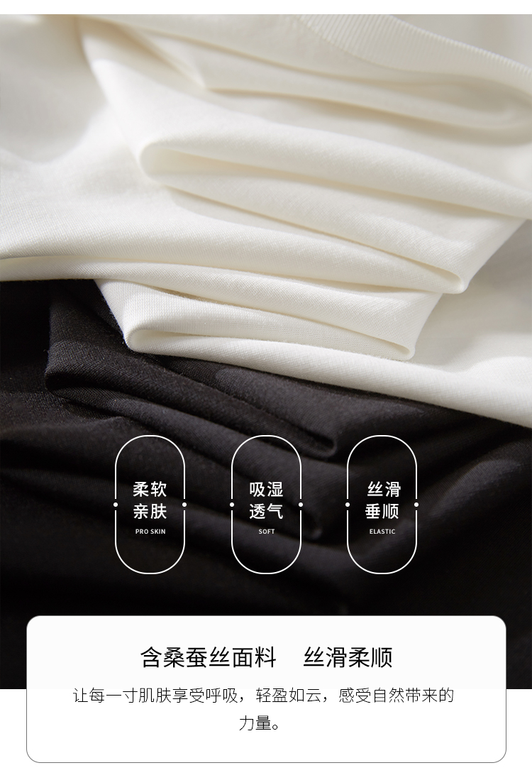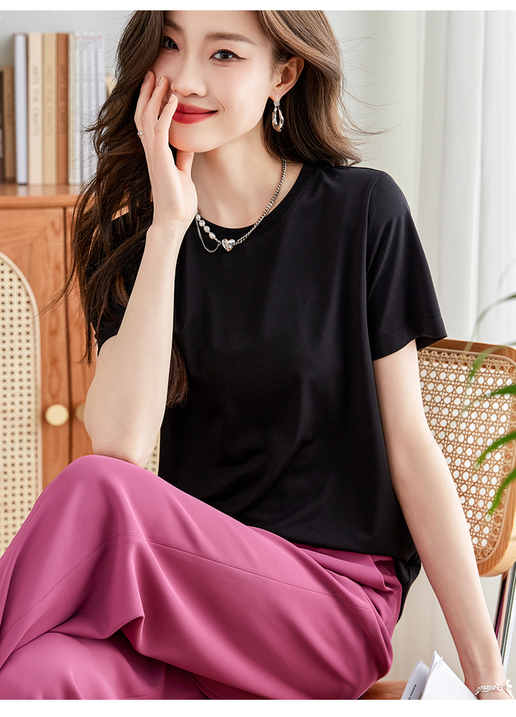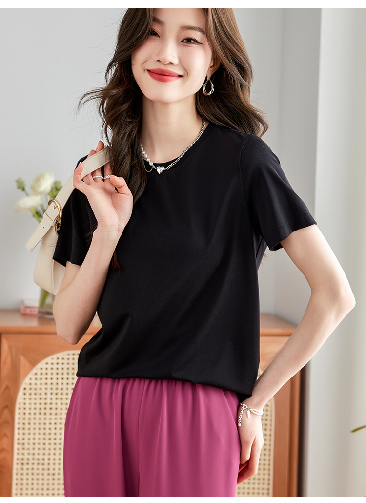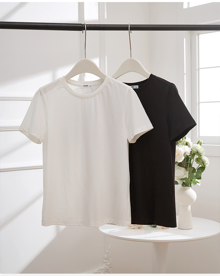【39元福袋不支持退换】熙世界天丝+甄贵桑蚕丝黑色T恤女士短袖夏季基础百搭宽松显瘦上衣