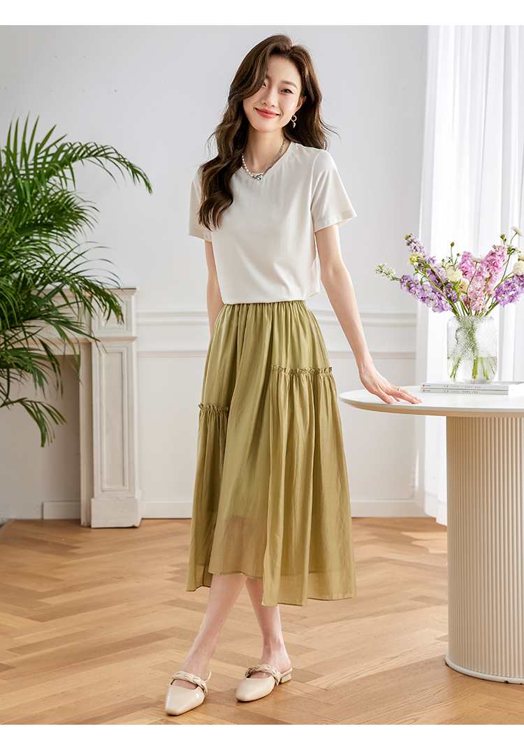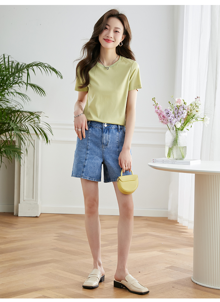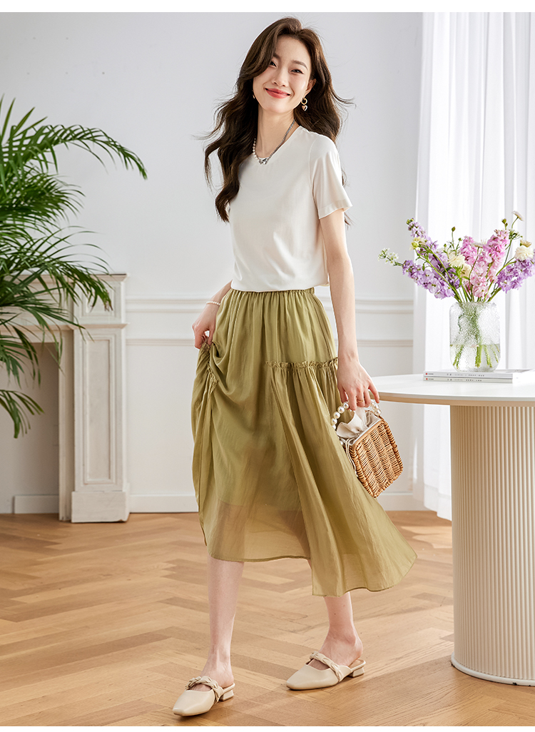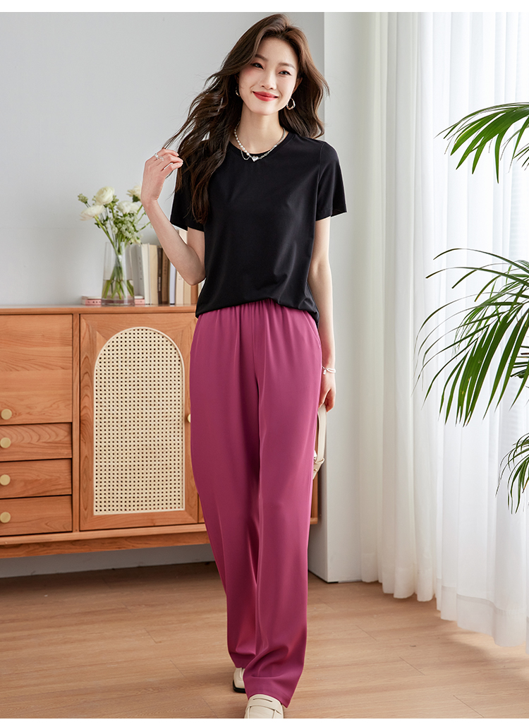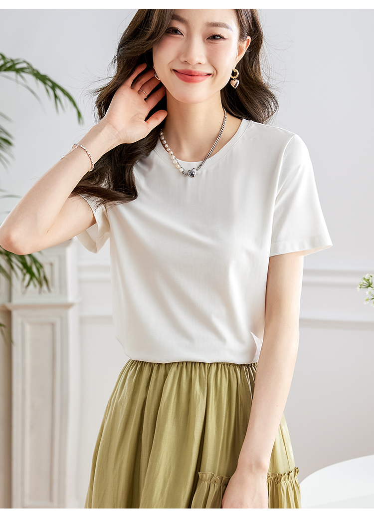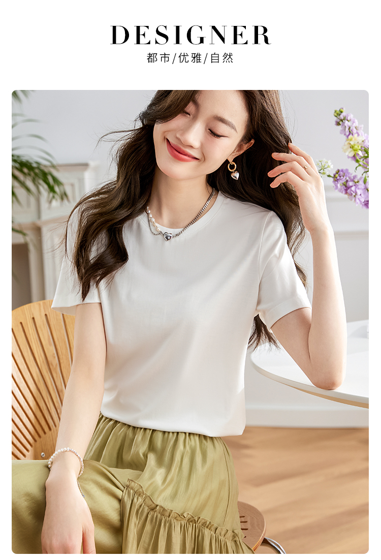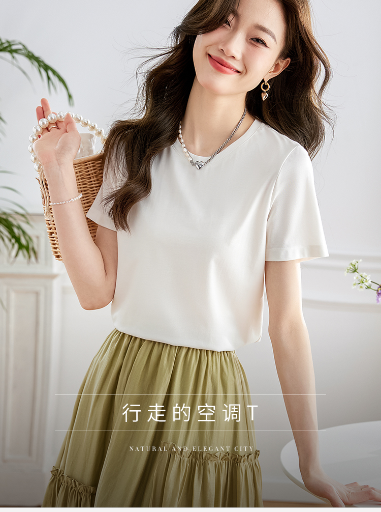 【39元福袋不支持退换】熙世界天丝+甄贵桑蚕丝黑色T恤女士短袖夏季基础百搭宽松显瘦上衣