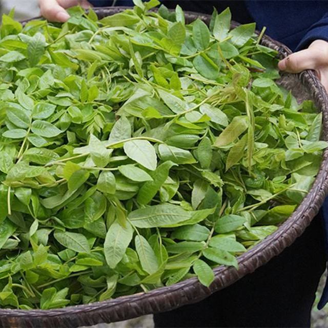 采摘特点:青钱柳采摘时间也比较重要,一般情况下6-8月采摘的口感较好,味甜微涩, 9月中下旬青钱柳部分叶子开始泛黄,即将落叶,此时即使采摘青叶,味也比较涩口,相对疗效要差一些。3月底至4月初采摘野生青钱柳新萌发的嫩芽,由于这样的鲜叶经过冬天的潜伏,香气物质和滋味有机物质含量丰富,营养成分保留最完整。