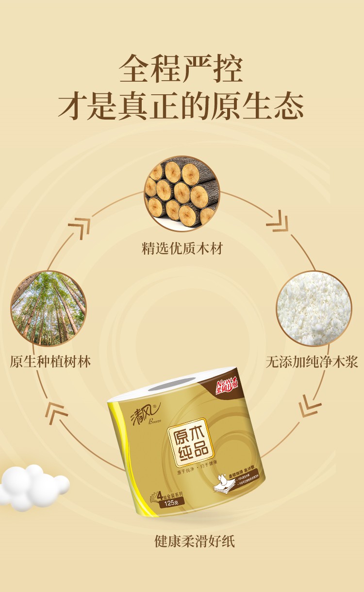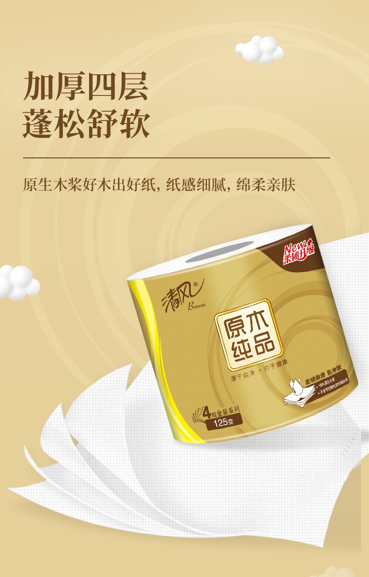 清风 金装有芯卷筒纸10卷*125克*4层 家用厕纸 加厚