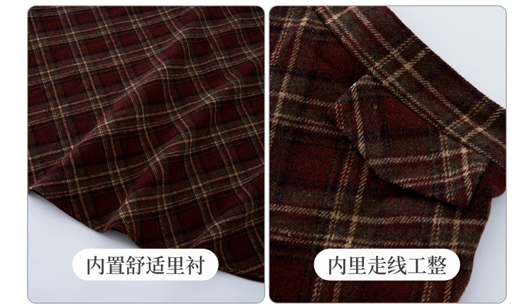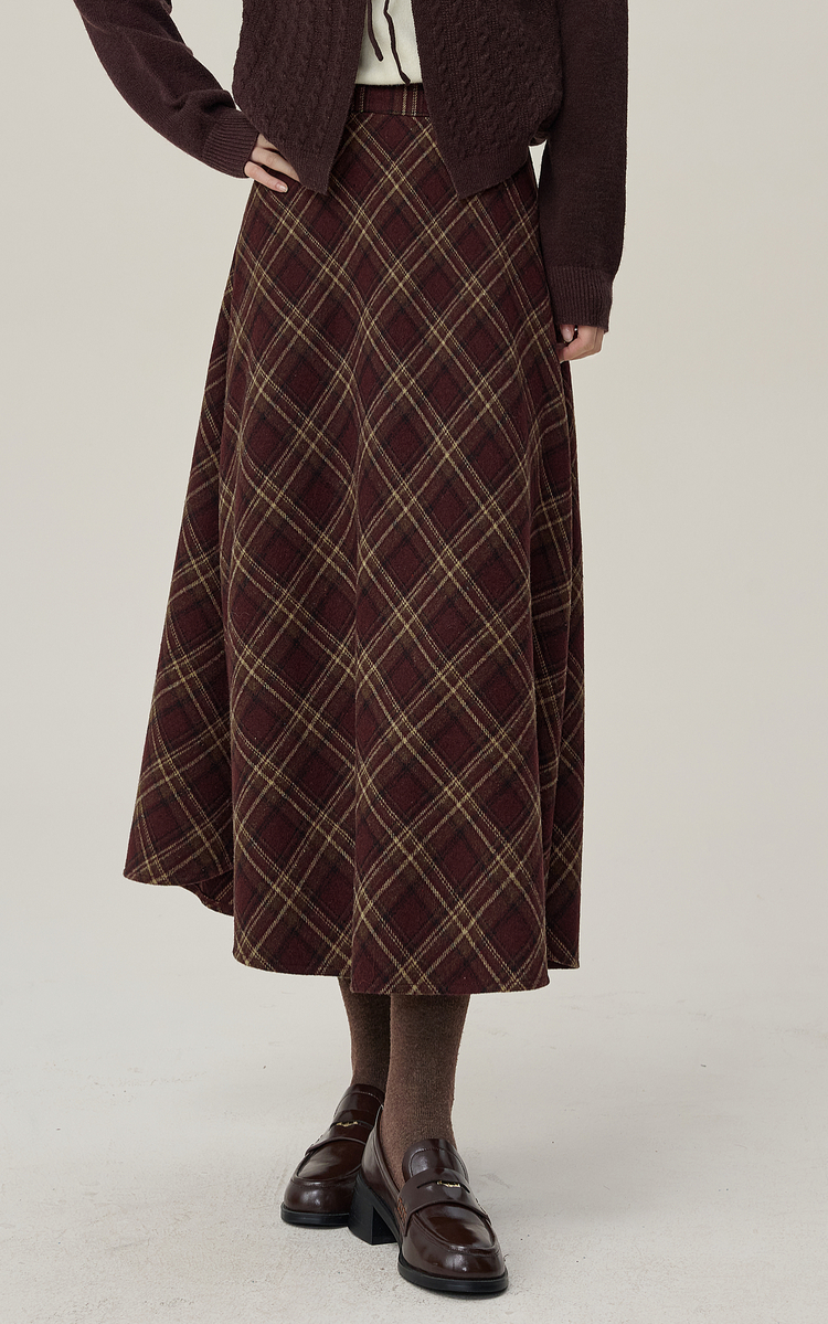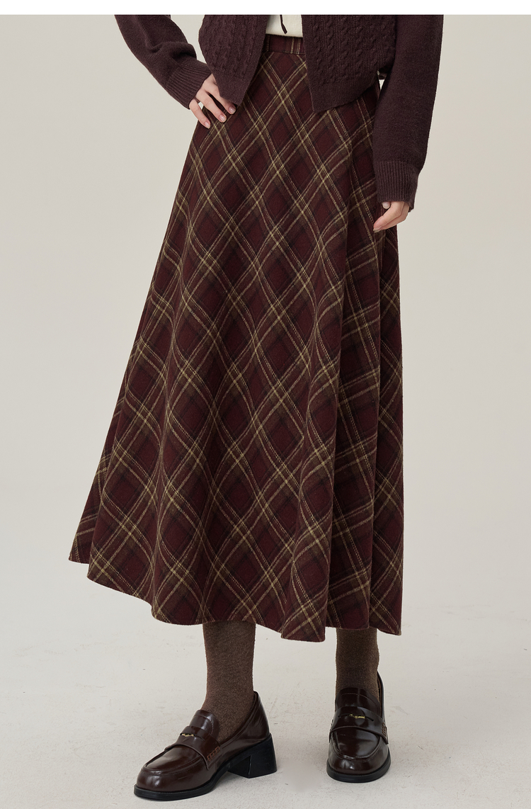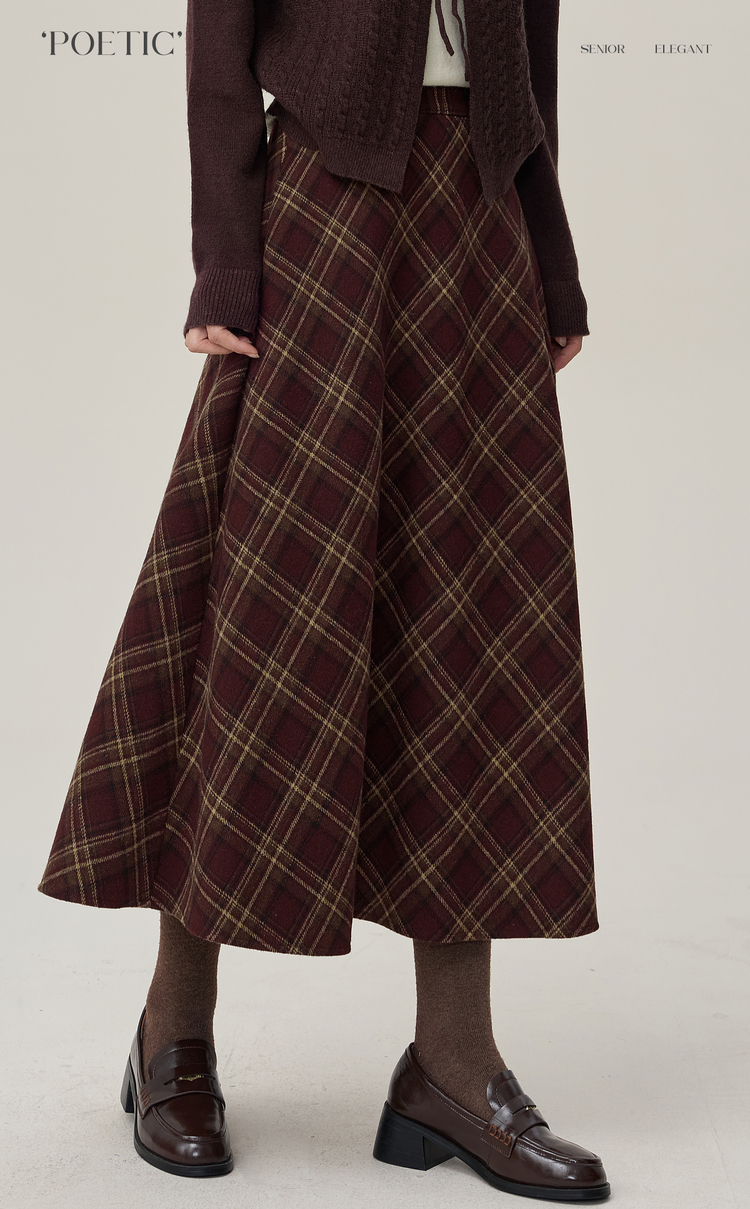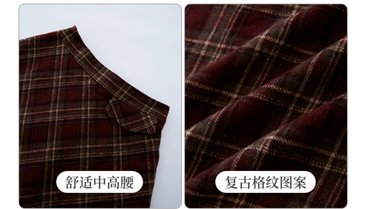 【10/15新品】熙世界美式复古格纹毛呢半身裙女2025秋冬款梨形身材高腰a字伞裙