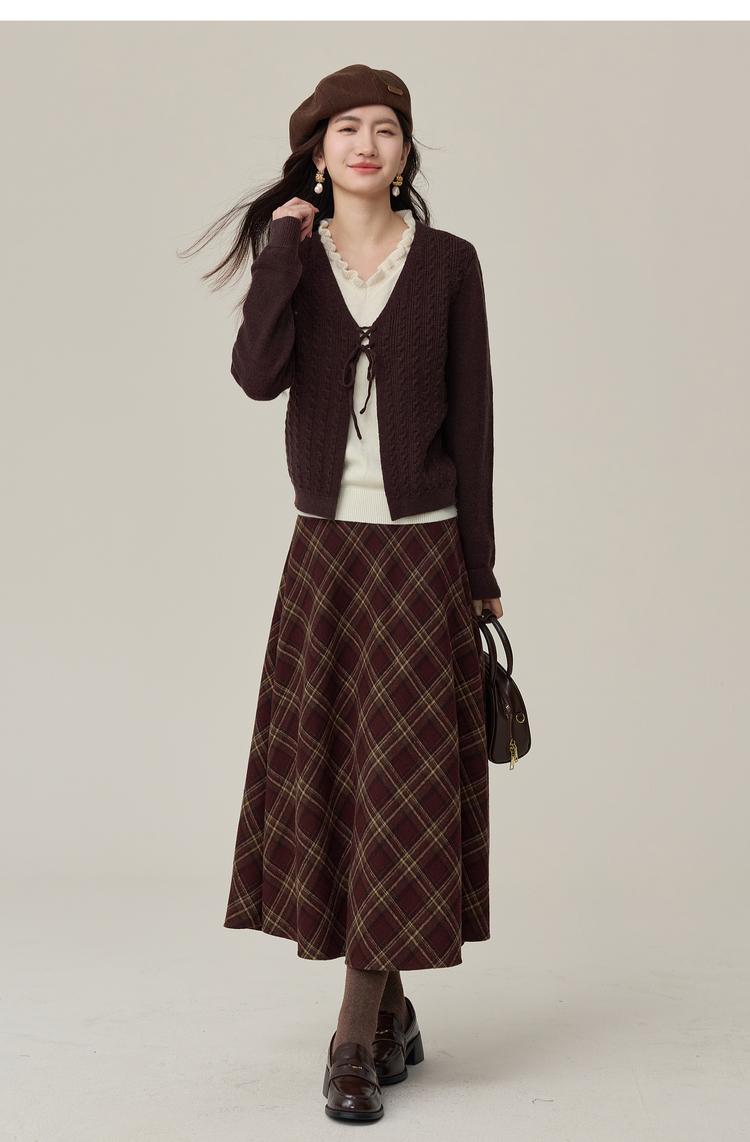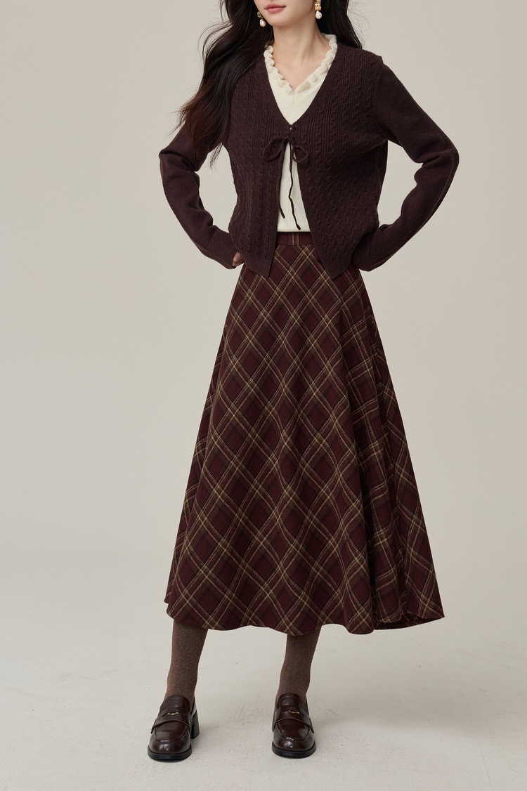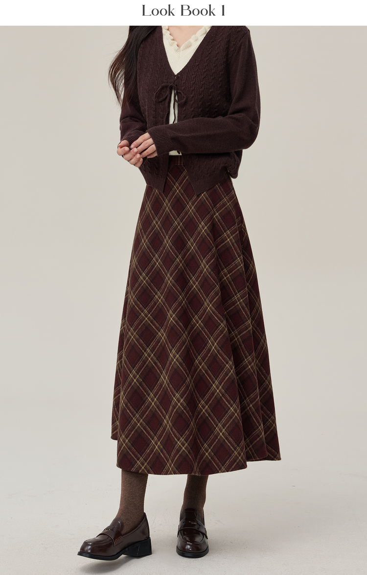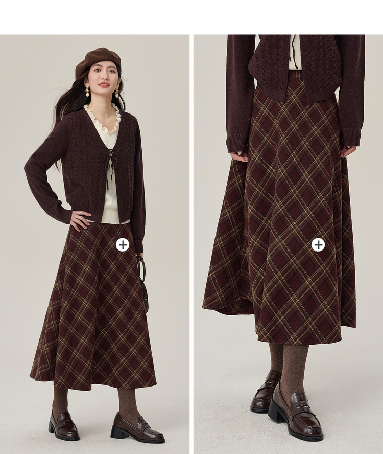 【10/15新品】熙世界美式复古格纹毛呢半身裙女2025秋冬款梨形身材高腰a字伞裙