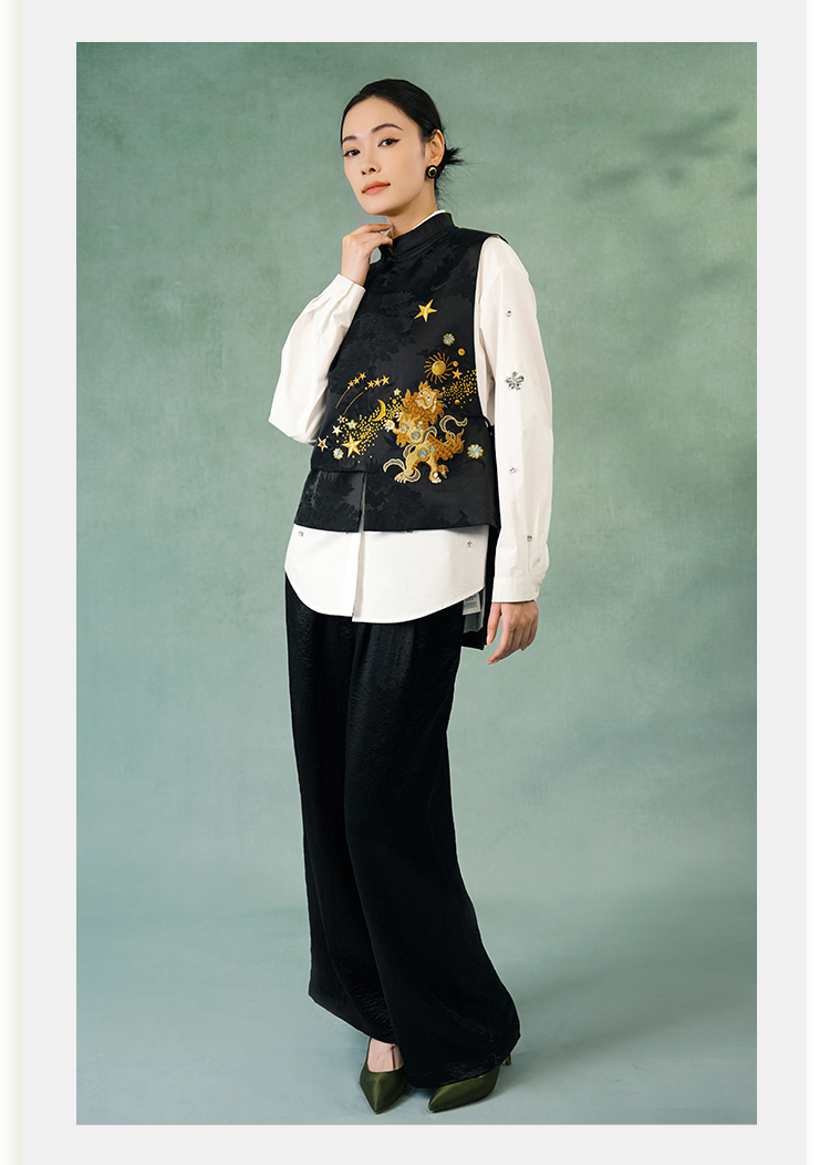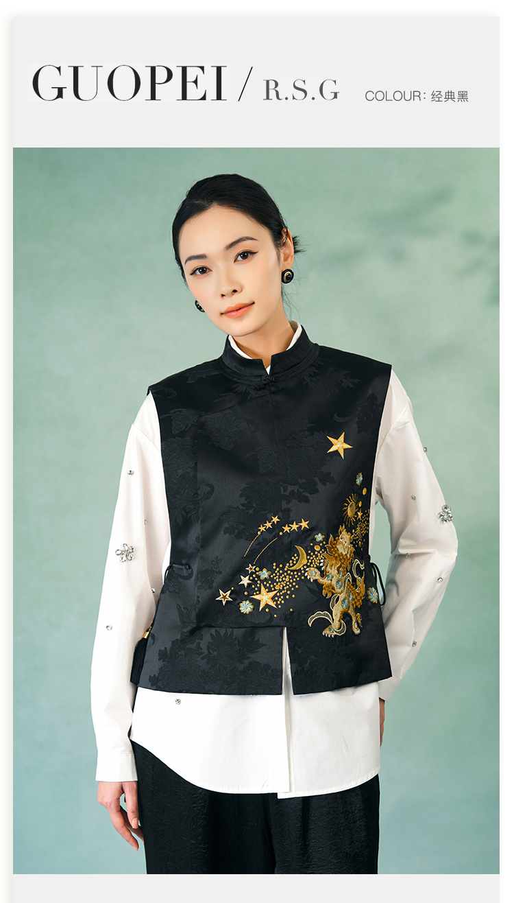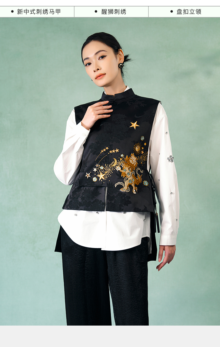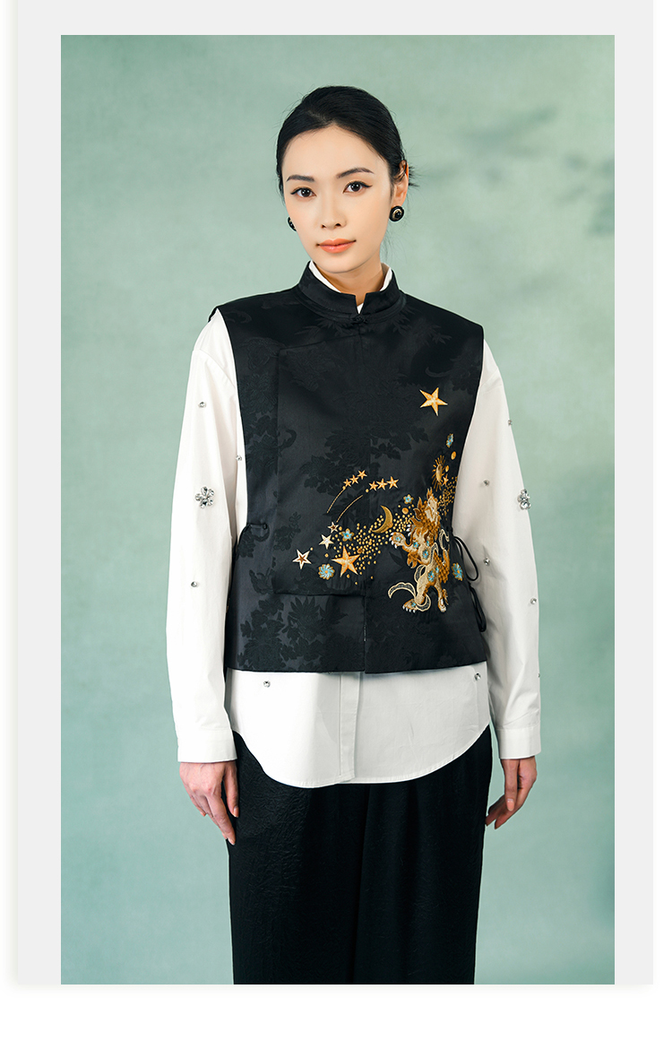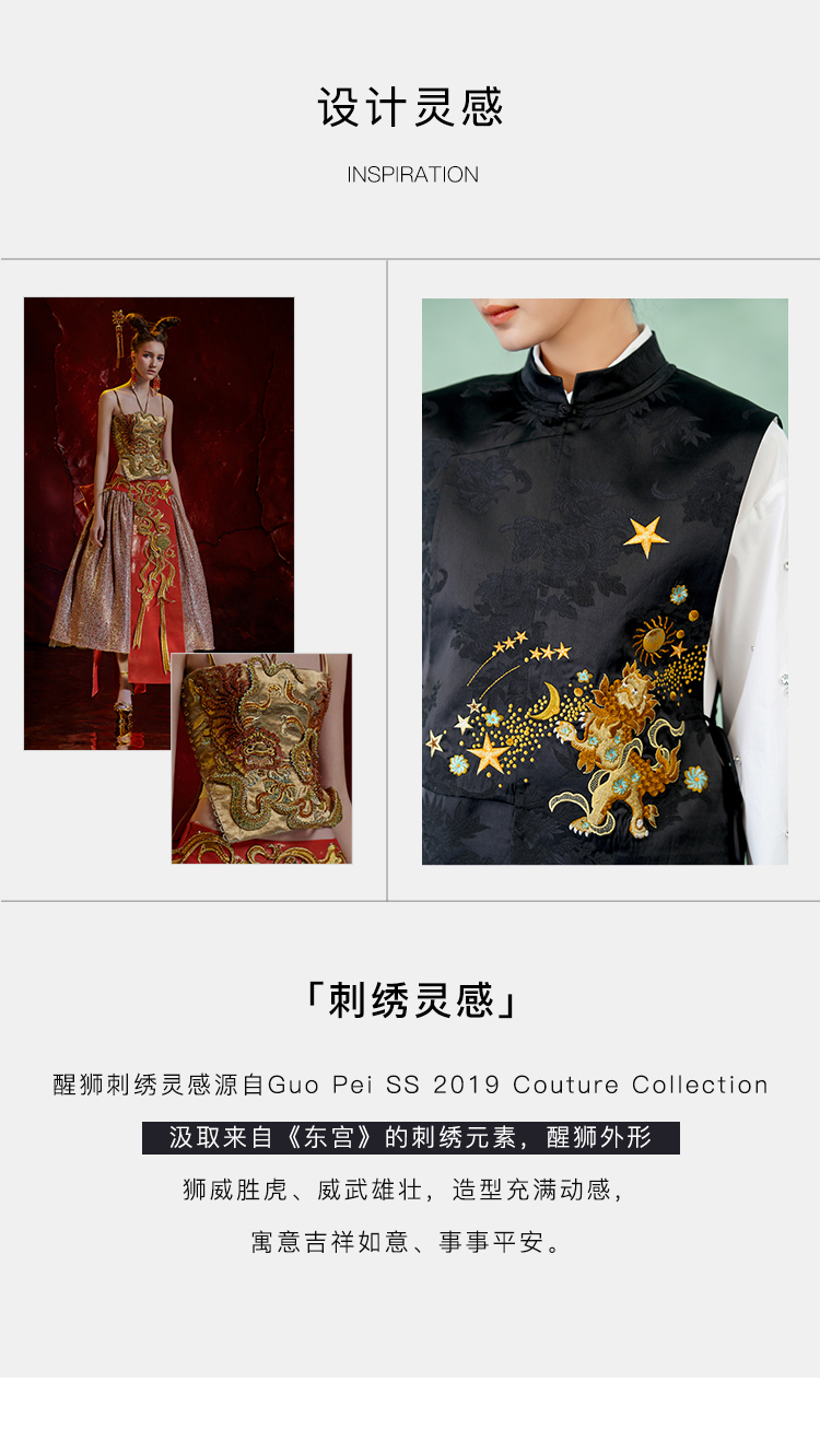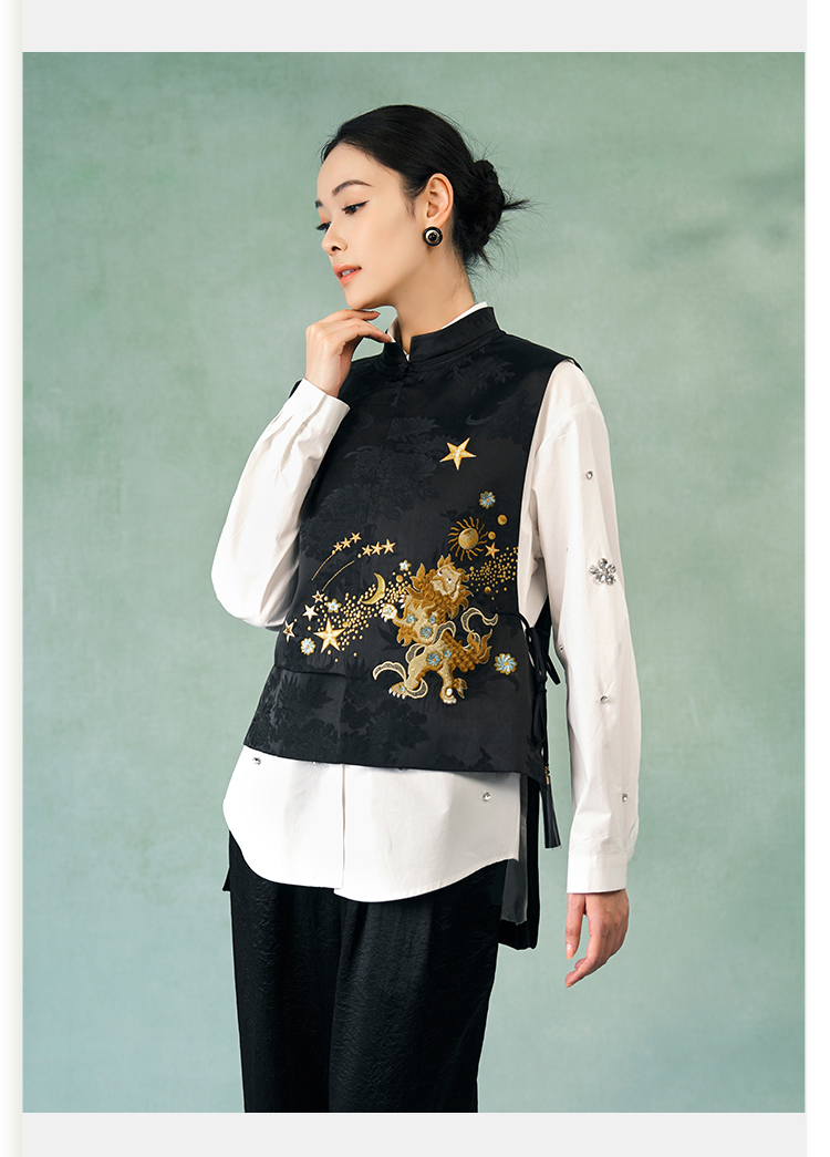 郭培成衣品牌精品系列新中式醒狮滚绣球刺绣马甲