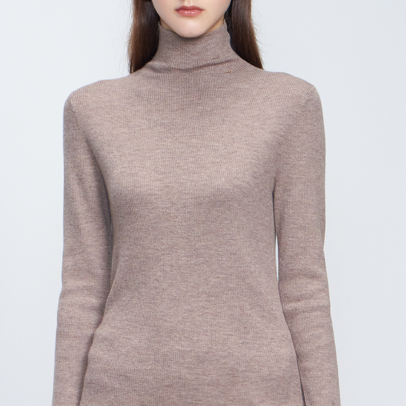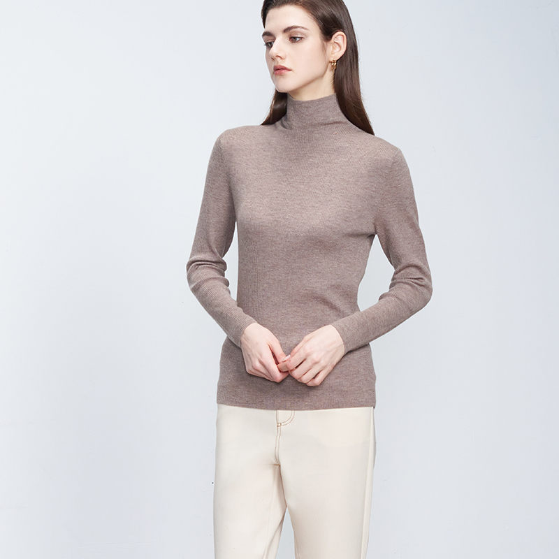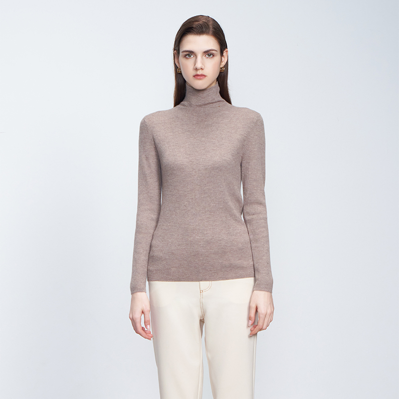 【高领抽条修身羊绒衫】羊绒世家秋冬新品女士长袖针织衫100%山羊绒精纺内搭保暖套头毛衣