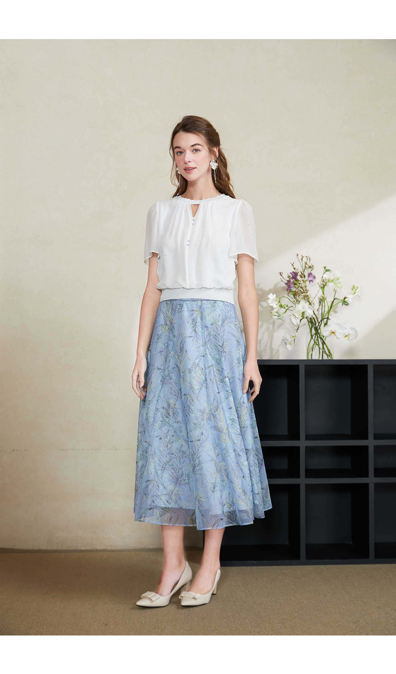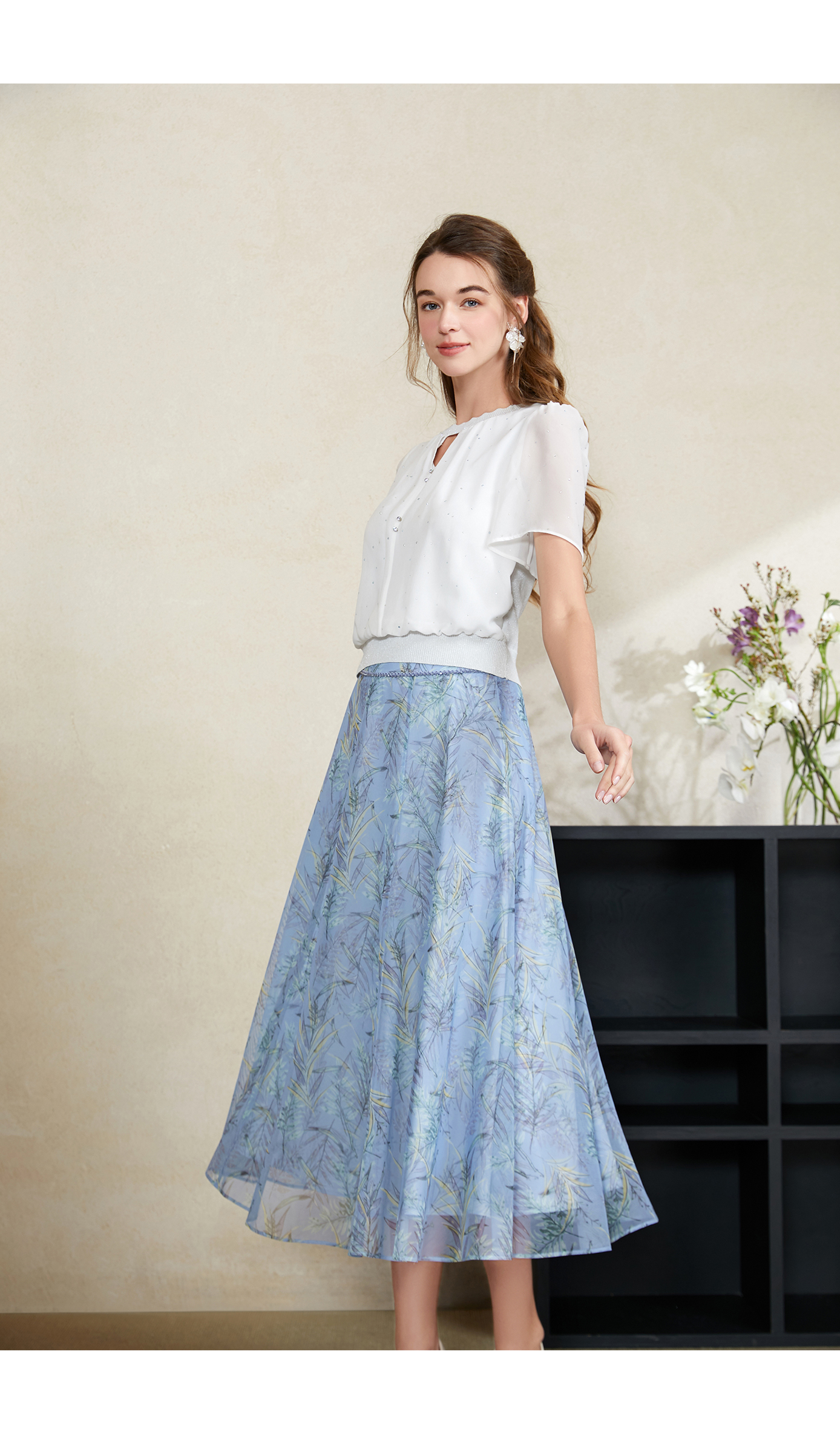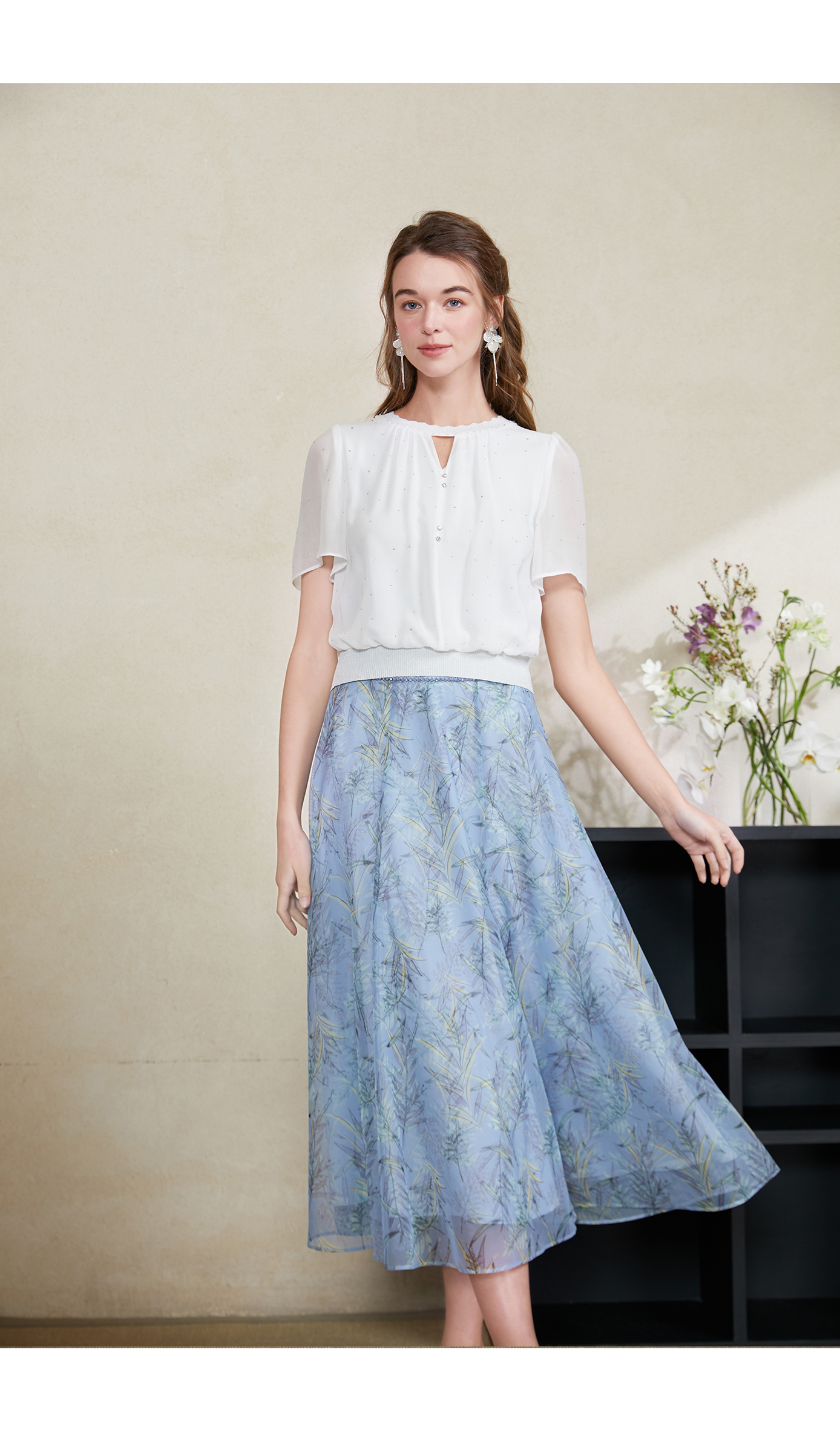 司歌印花收腰长袖雪纺上衣秋冬T921160X