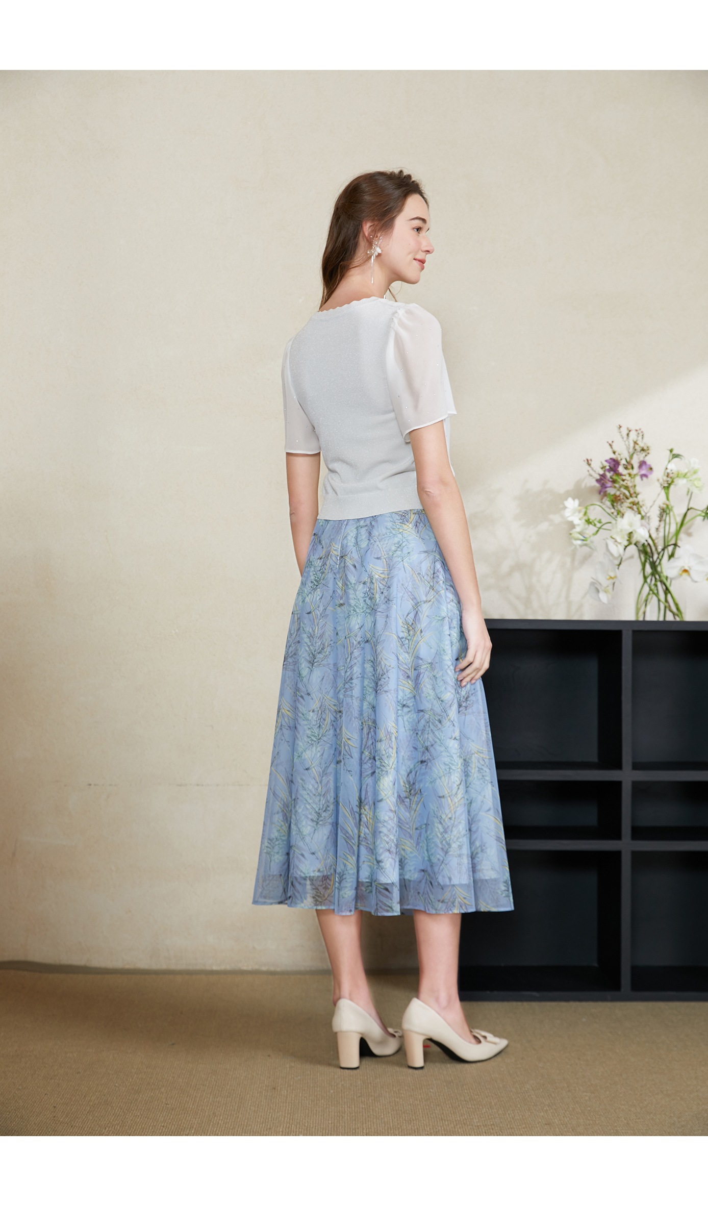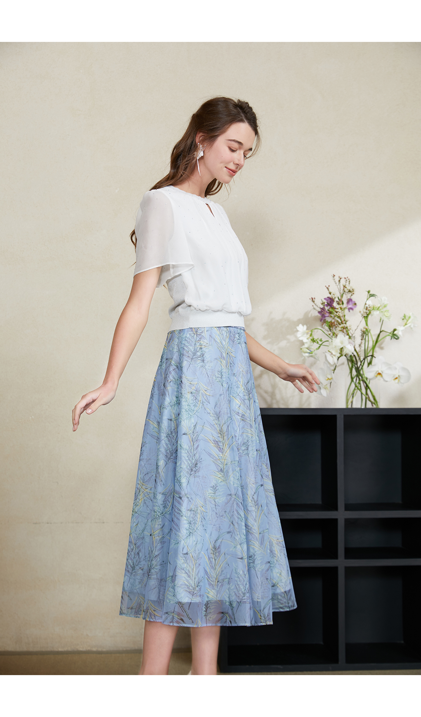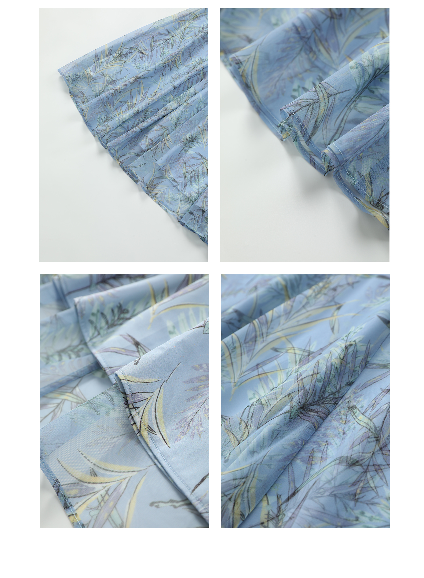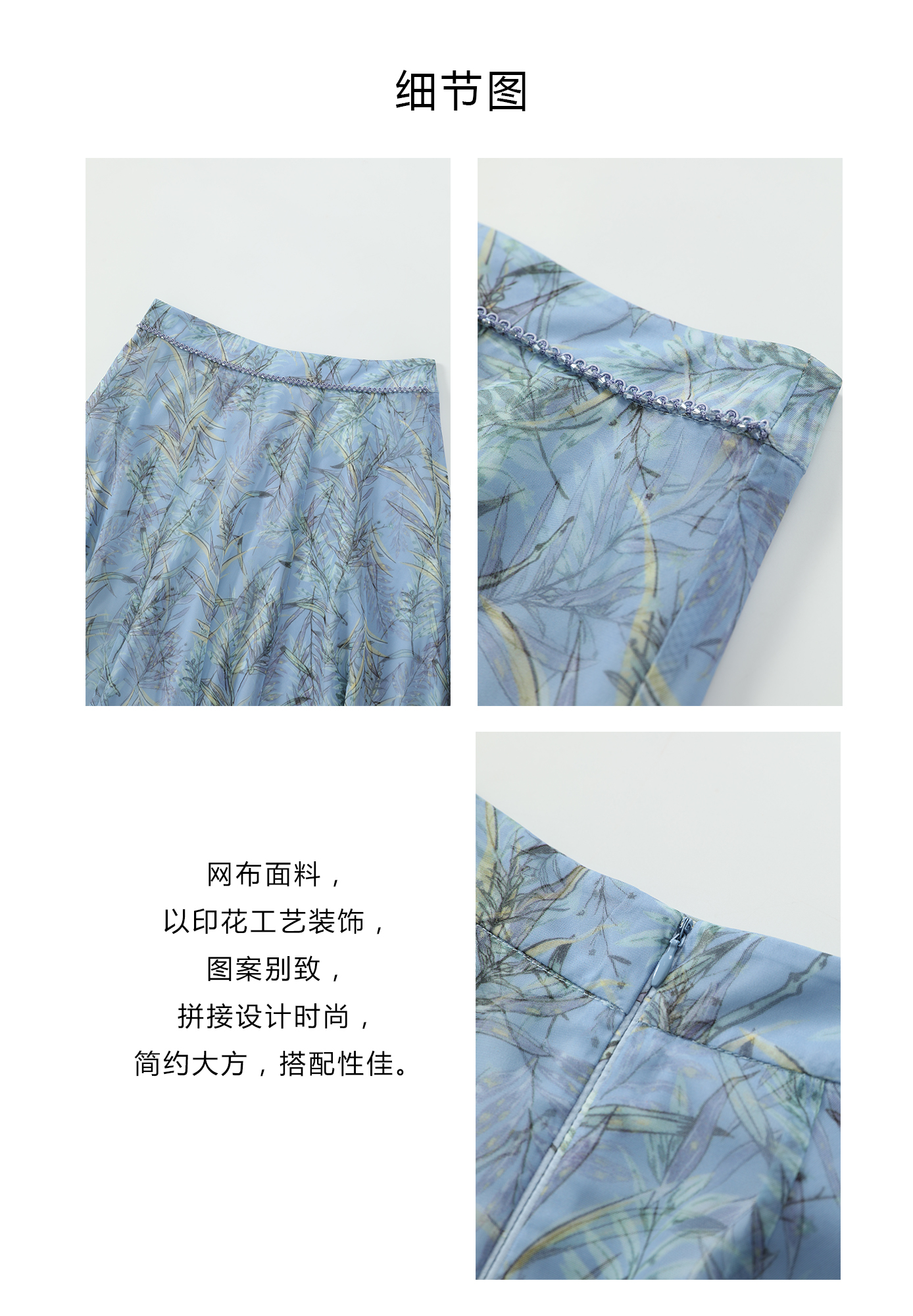 司歌印花收腰长袖雪纺上衣秋冬T921160X