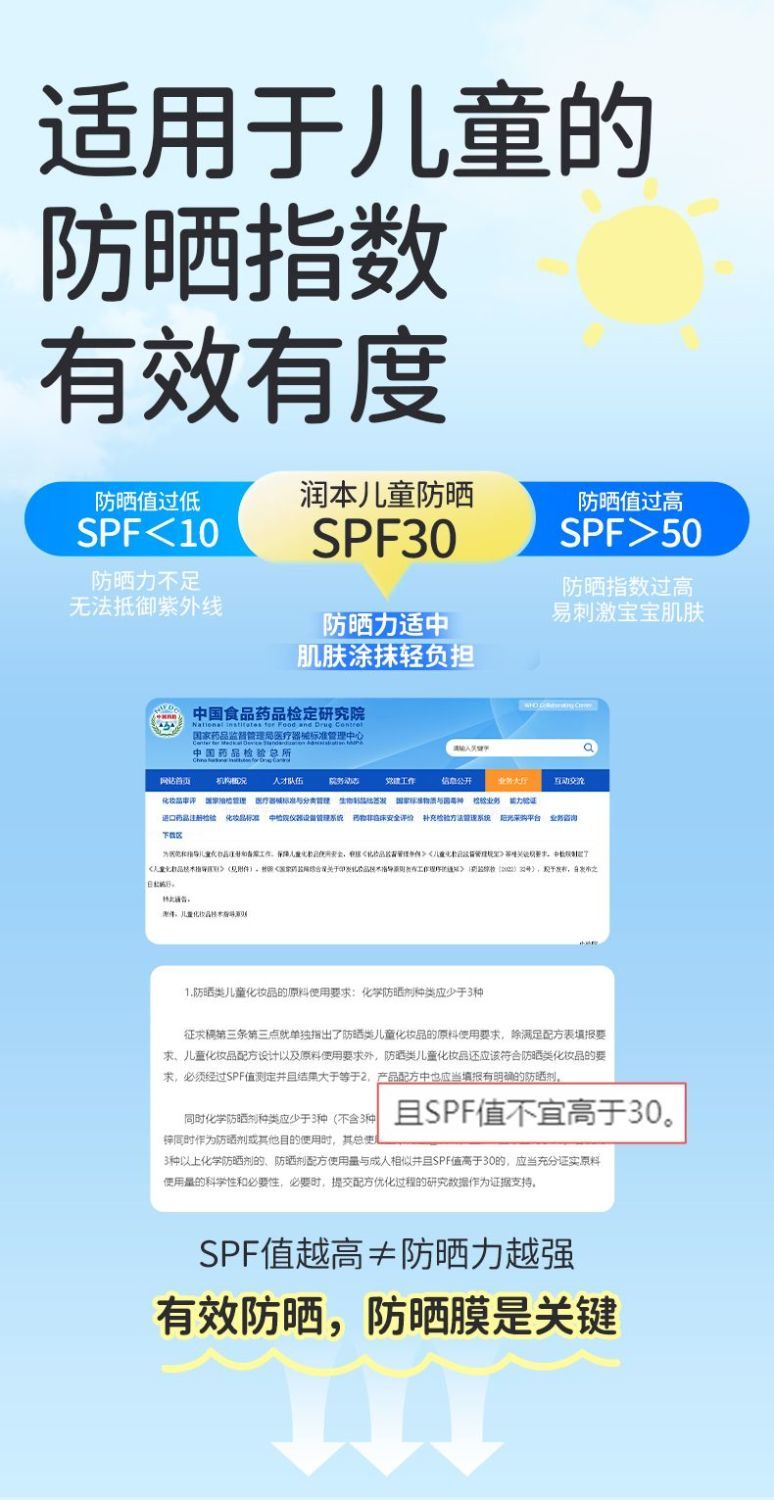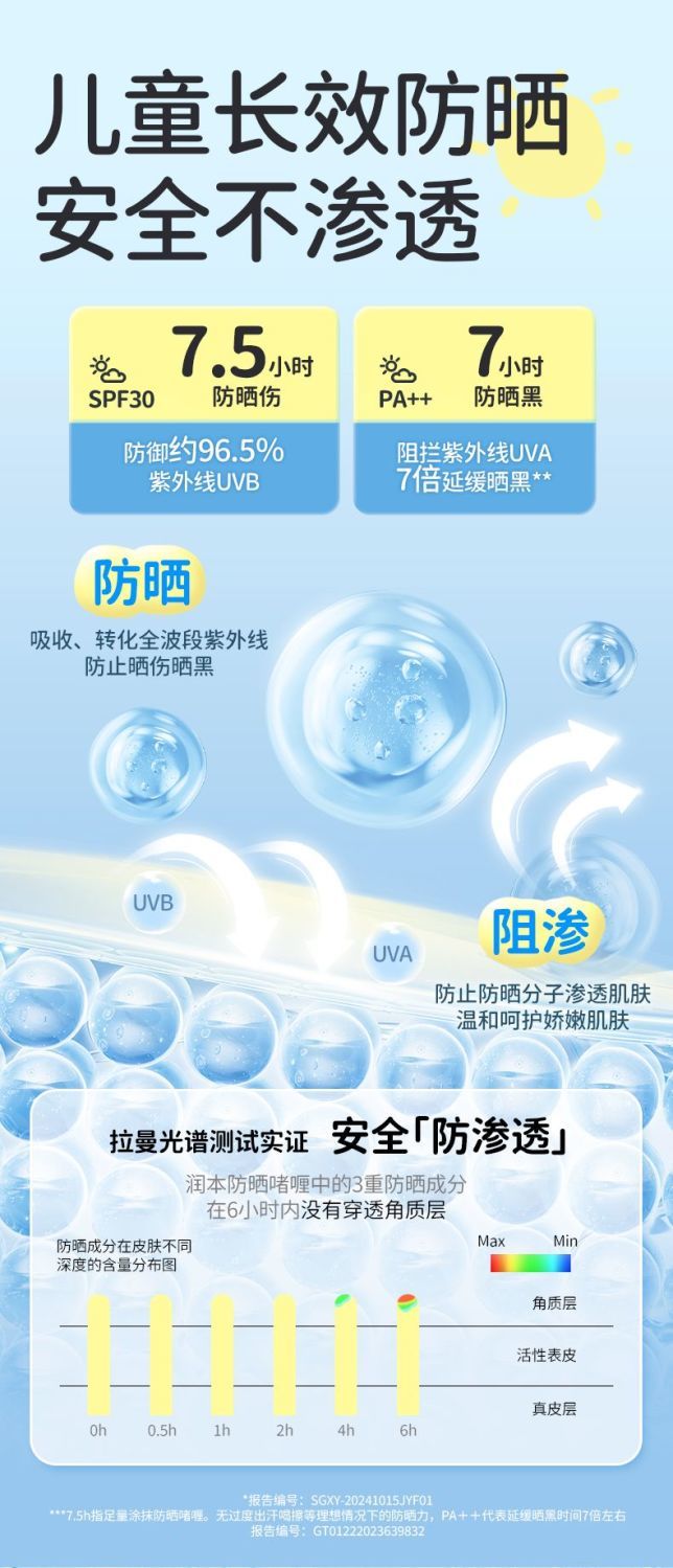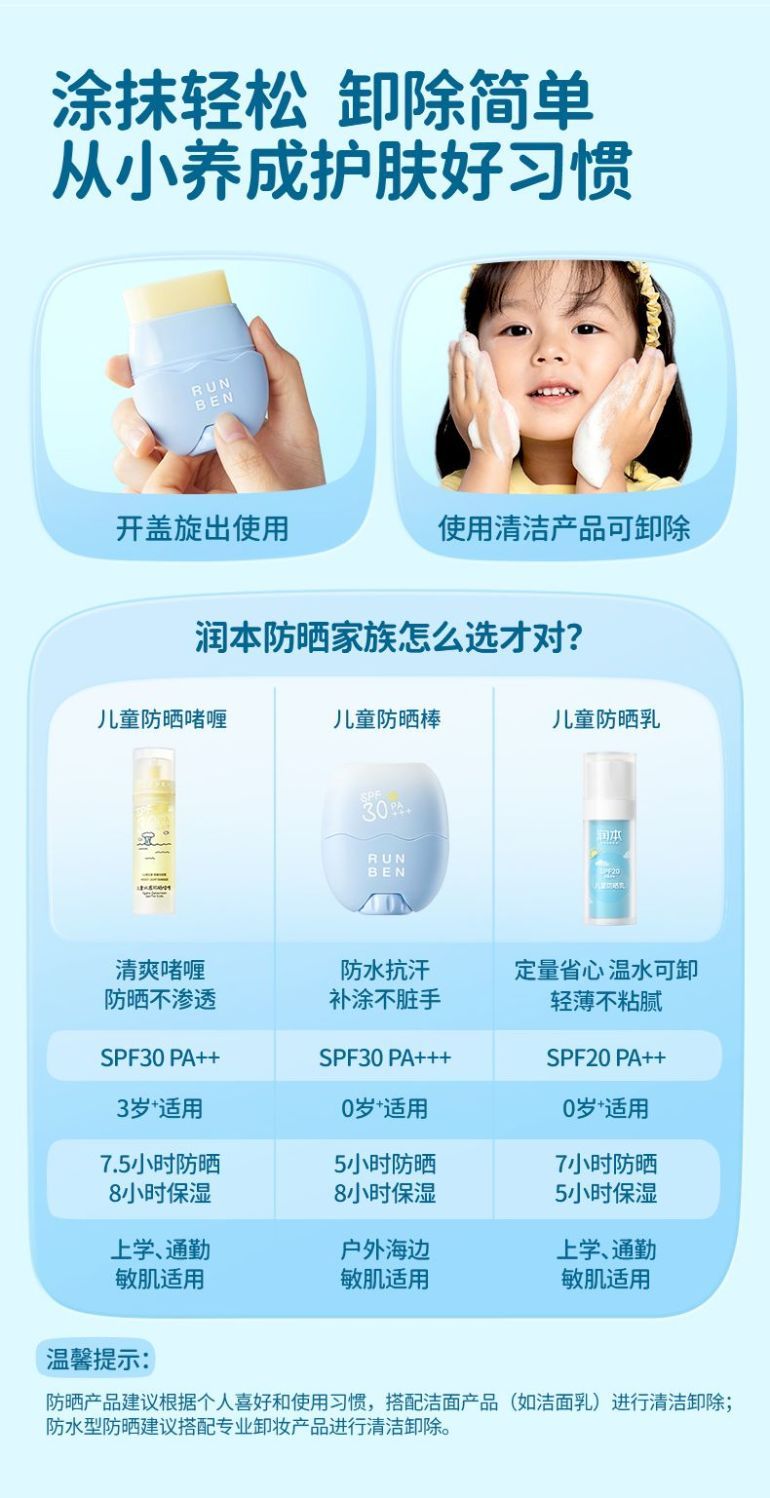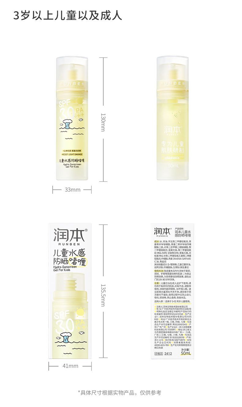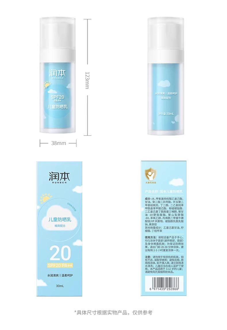 润本儿童防晒霜宝宝男女童专用隔离紫外线学生党物理化学防晒乳系列