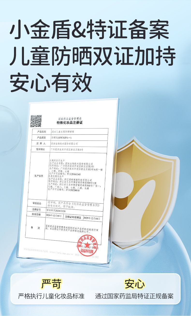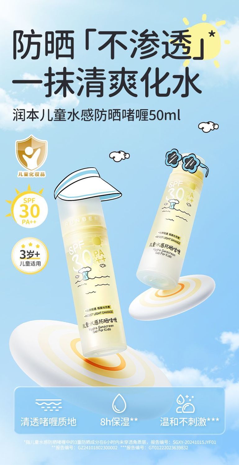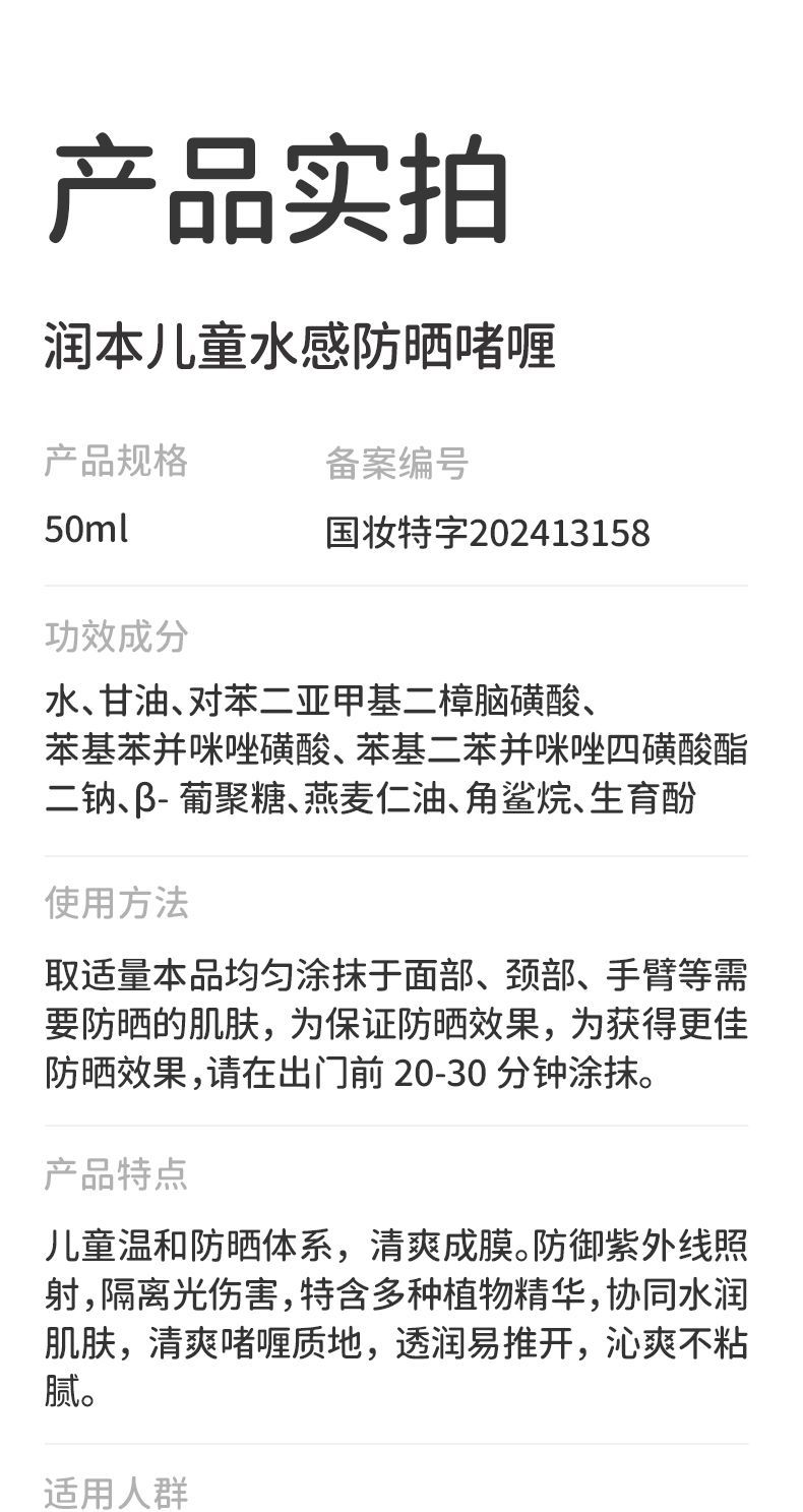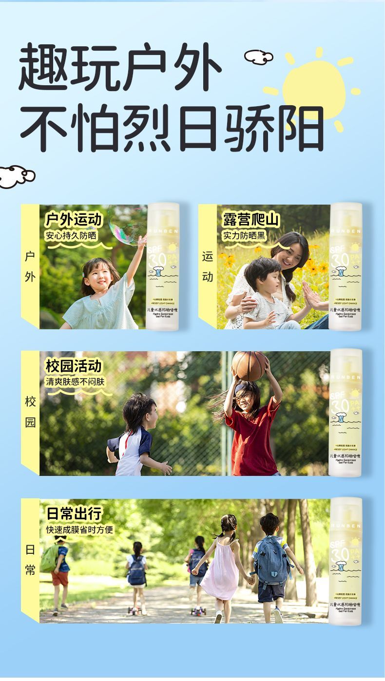 润本儿童防晒霜宝宝男女童专用隔离紫外线学生党物理化学防晒乳系列