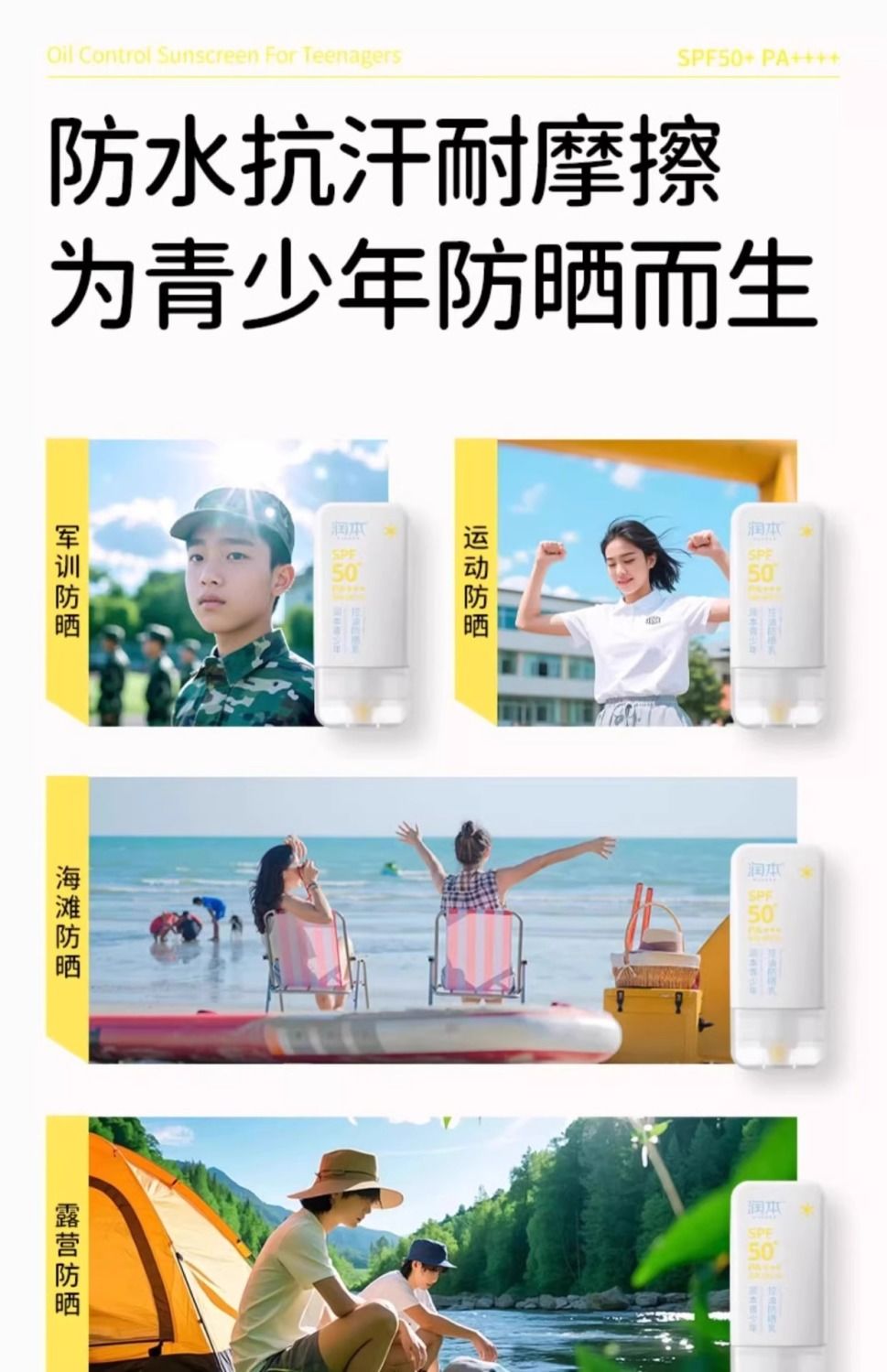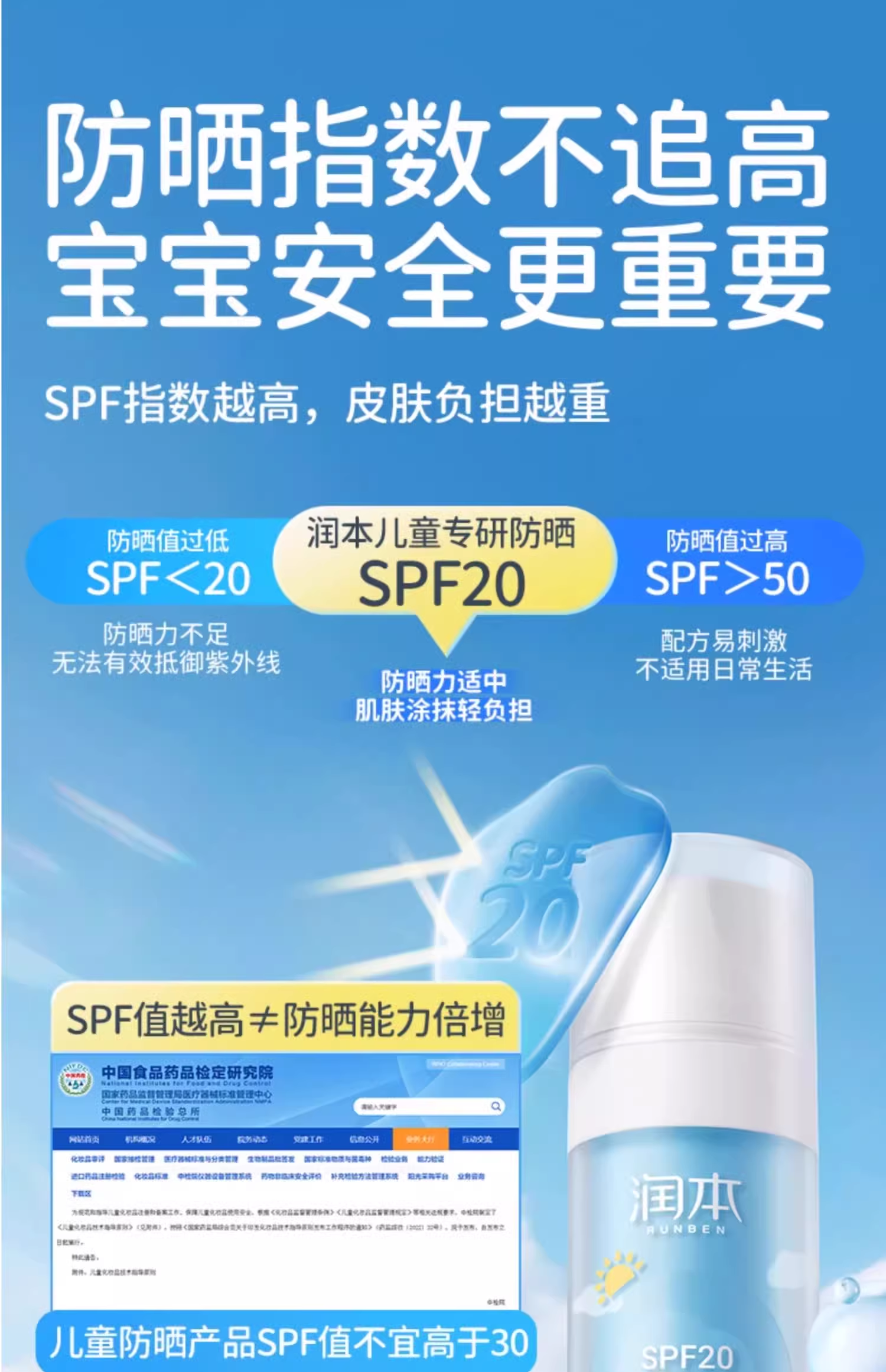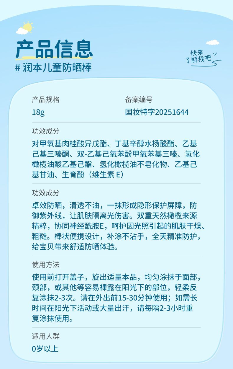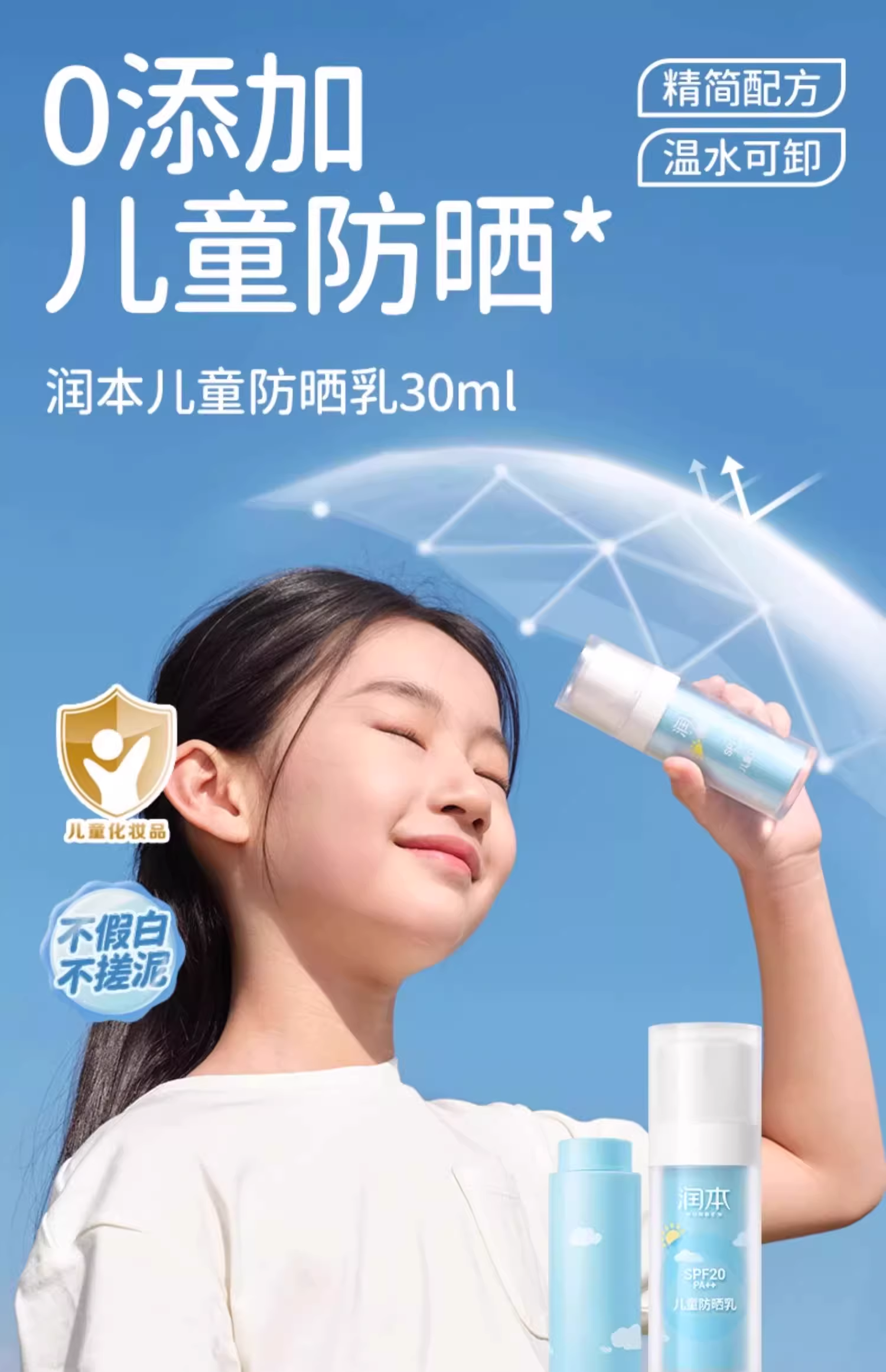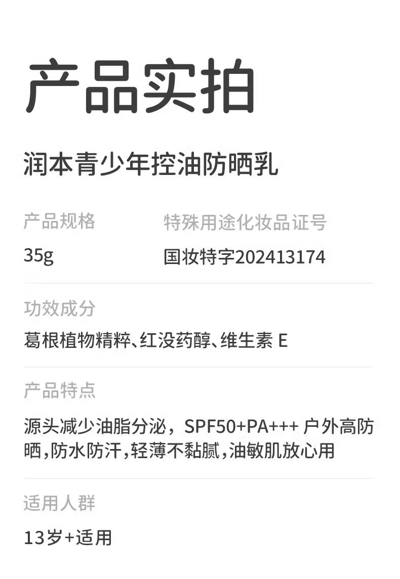 润本儿童防晒霜宝宝男女童专用隔离紫外线学生党物理化学防晒乳系列