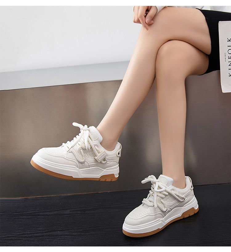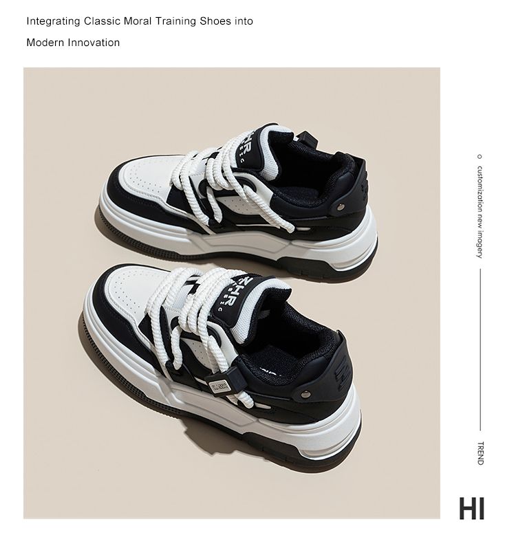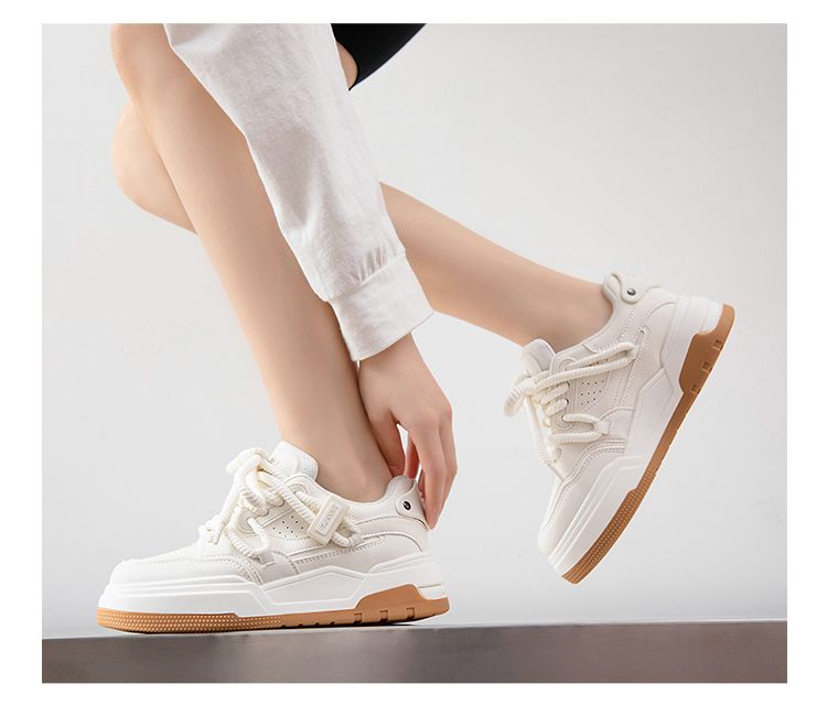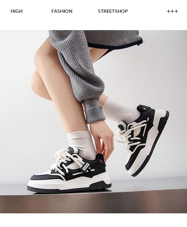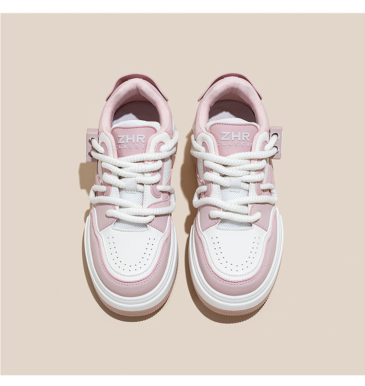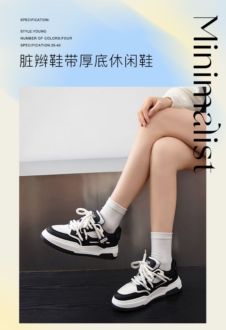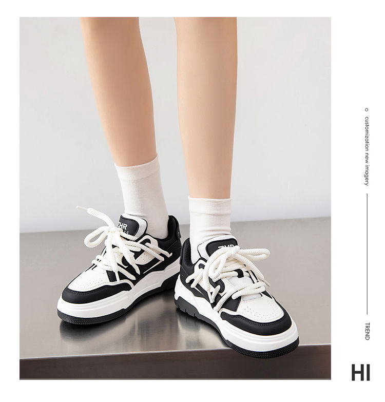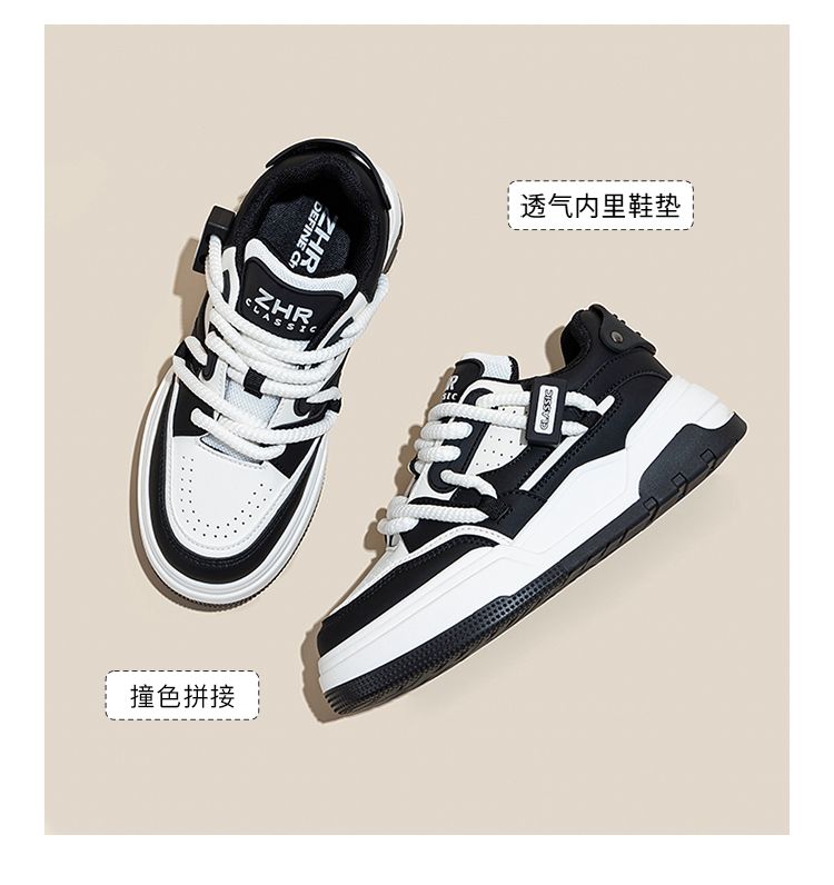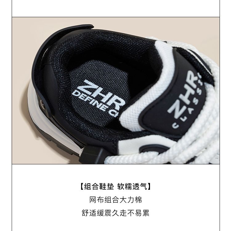 ZHR运动鞋女2023冬季新款潮流百搭休闲拼接脏辫鞋带厚底面包鞋