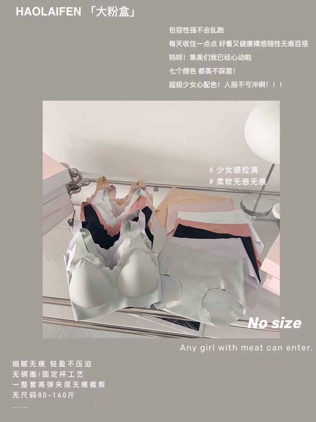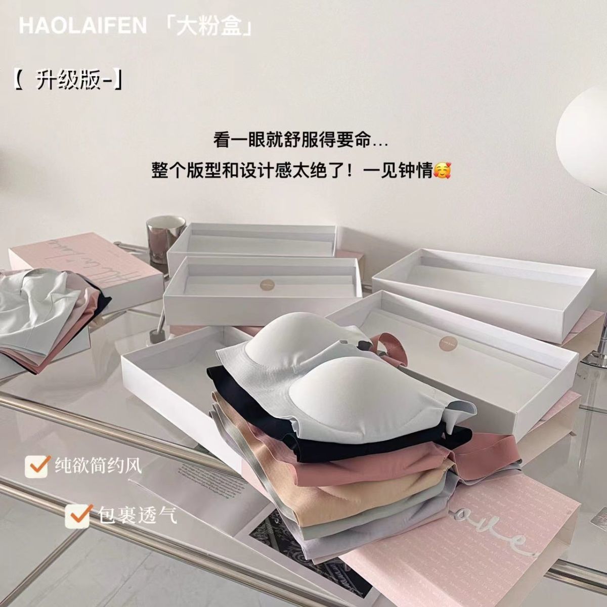 黛唯梵2022欧阳娜娜同款文胸2件优惠装春夏季新款大粉盒内衣无痕无钢圈透气抗jun上托背心式文胸套装女