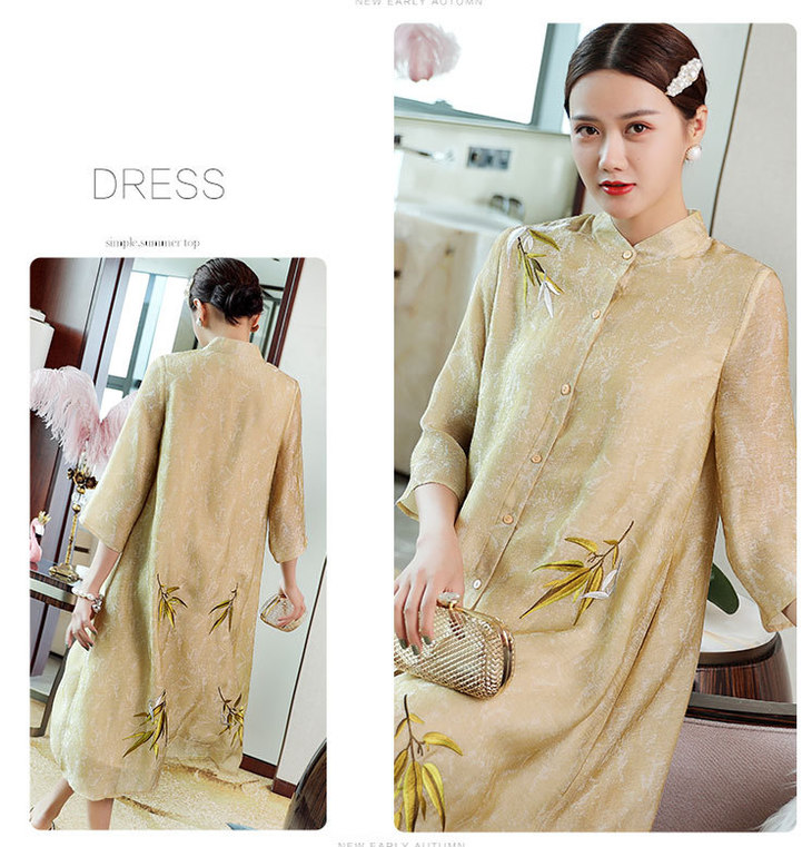 复古中国风,柳叶刺绣外披连衣裙OG99232