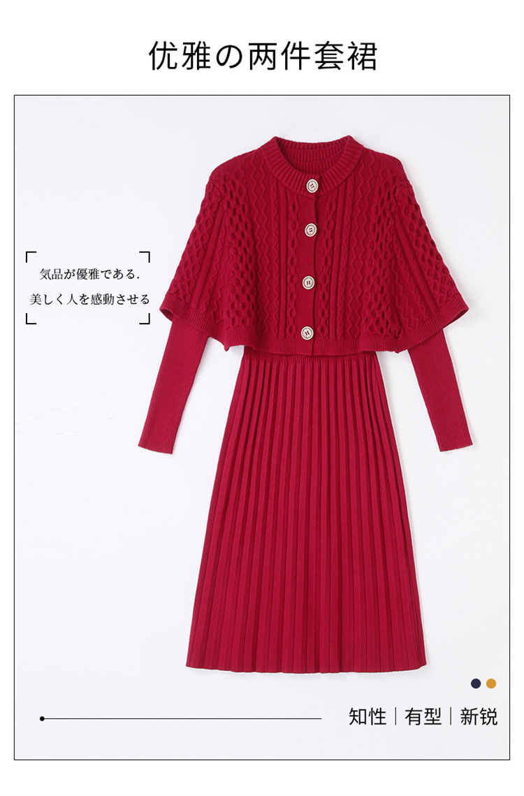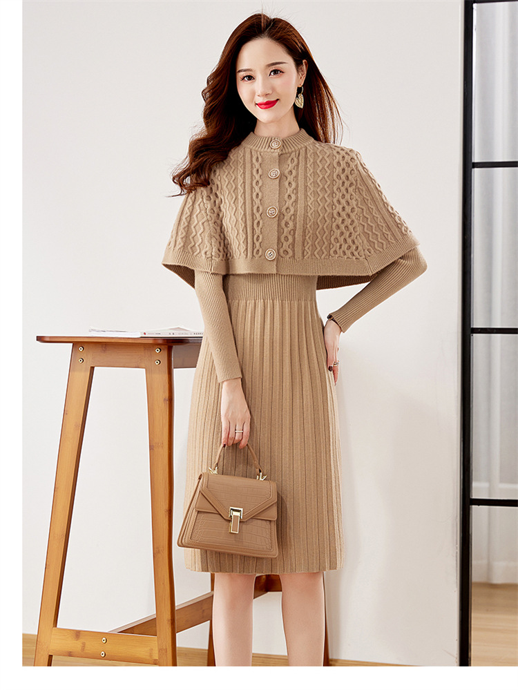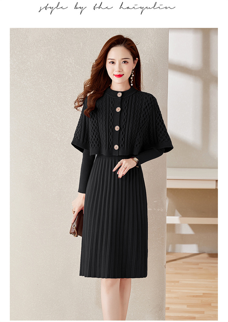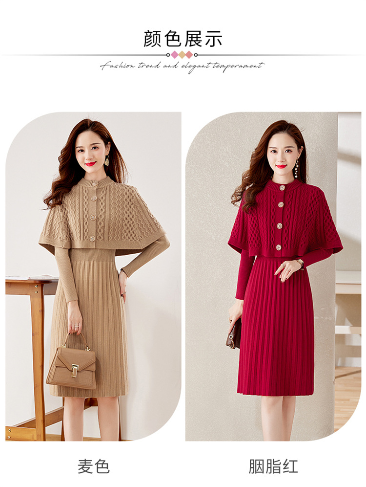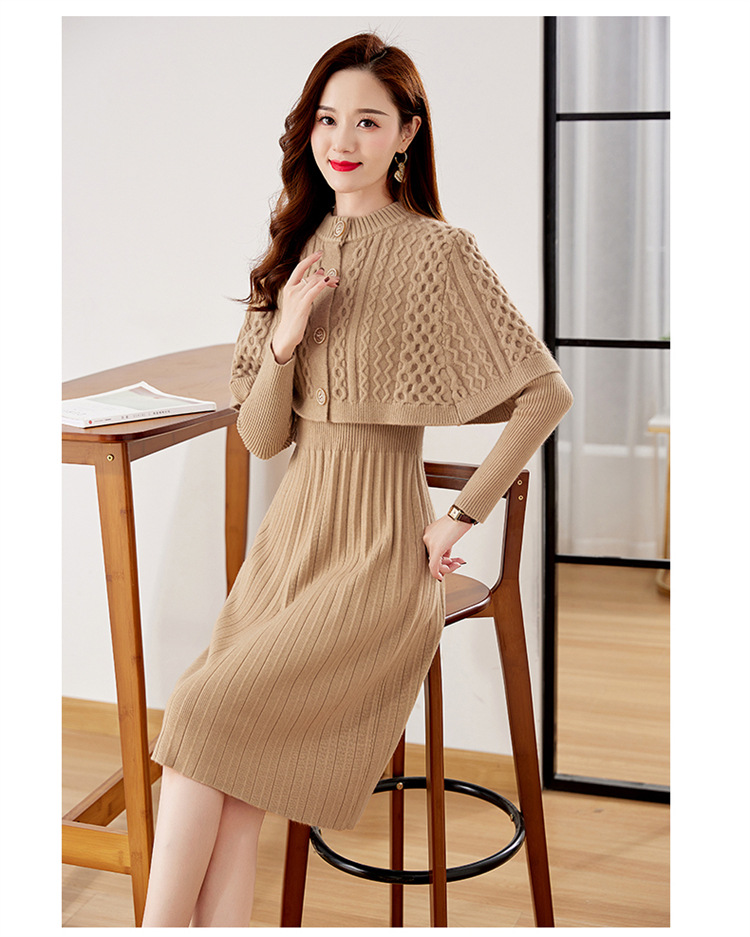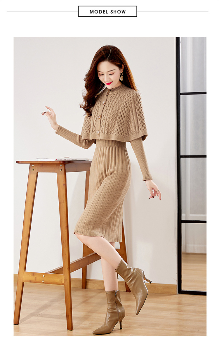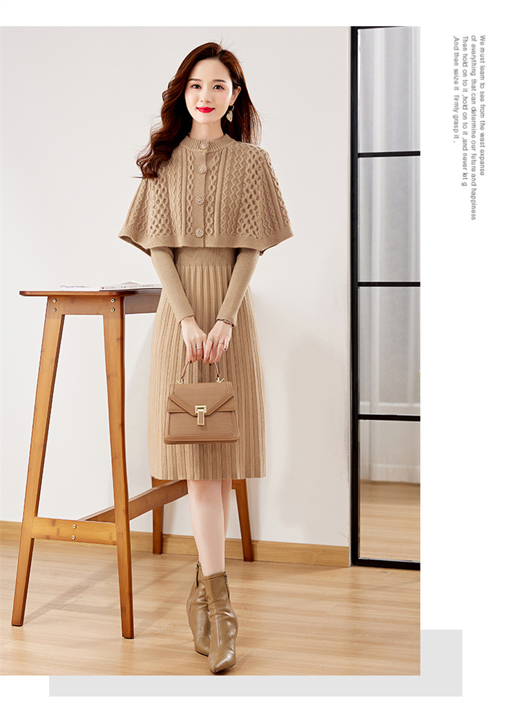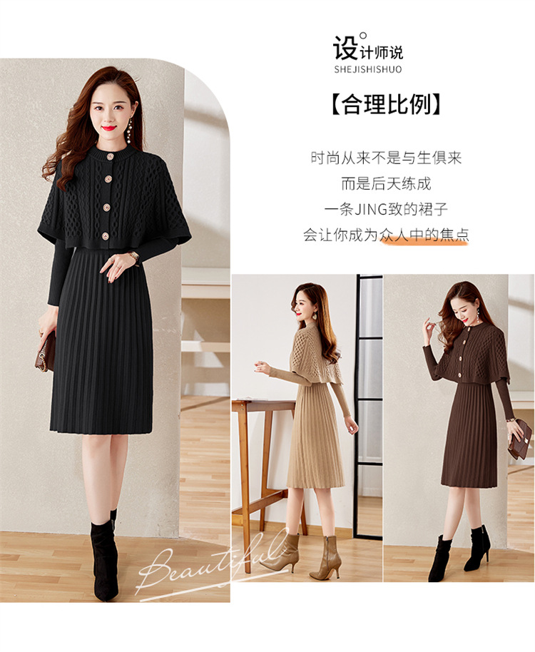 小个子针织连衣裙,法式气质毛衣裙披肩两件套装HR-WY23239