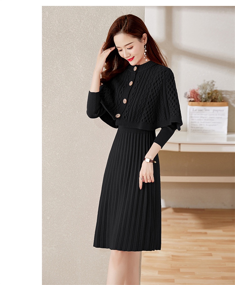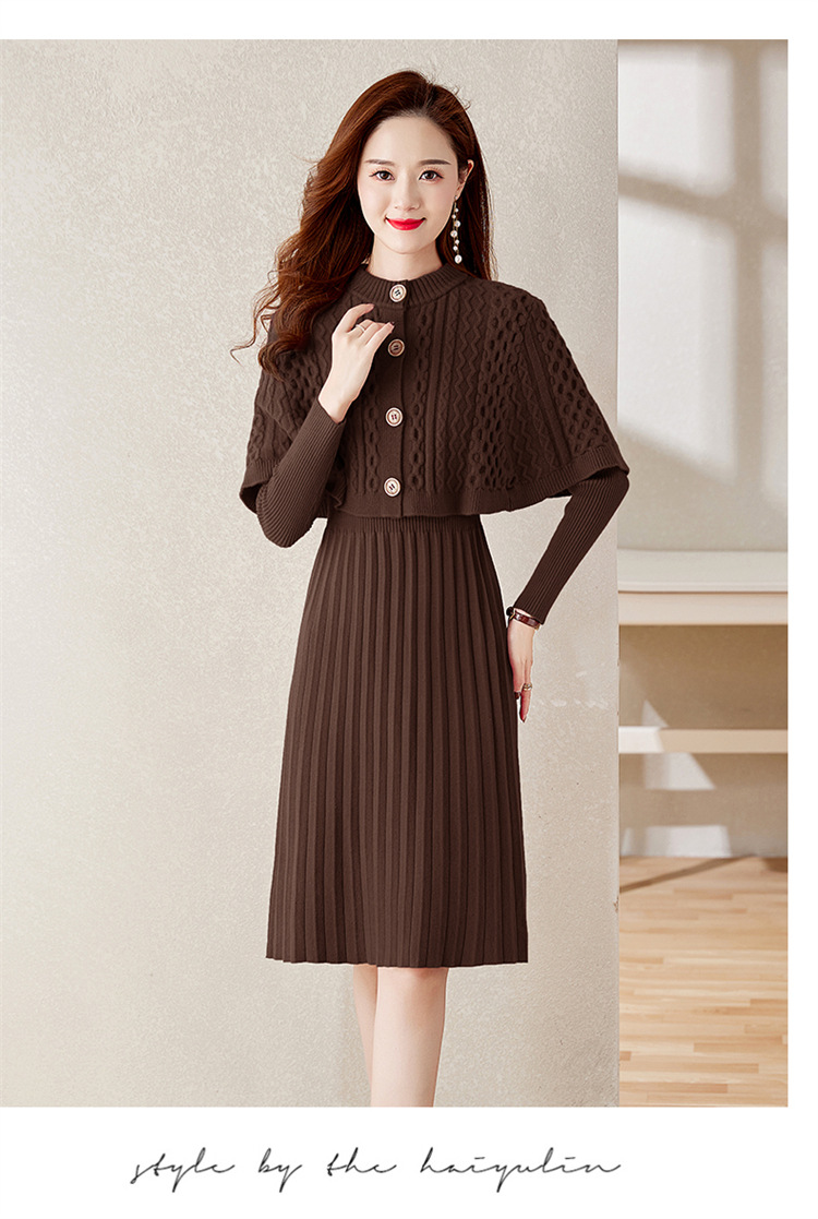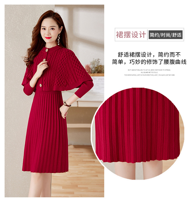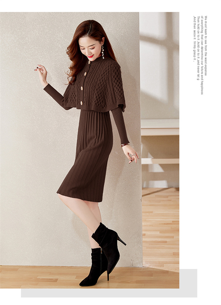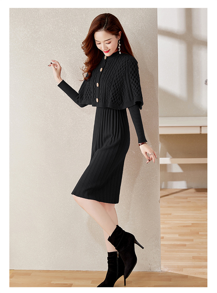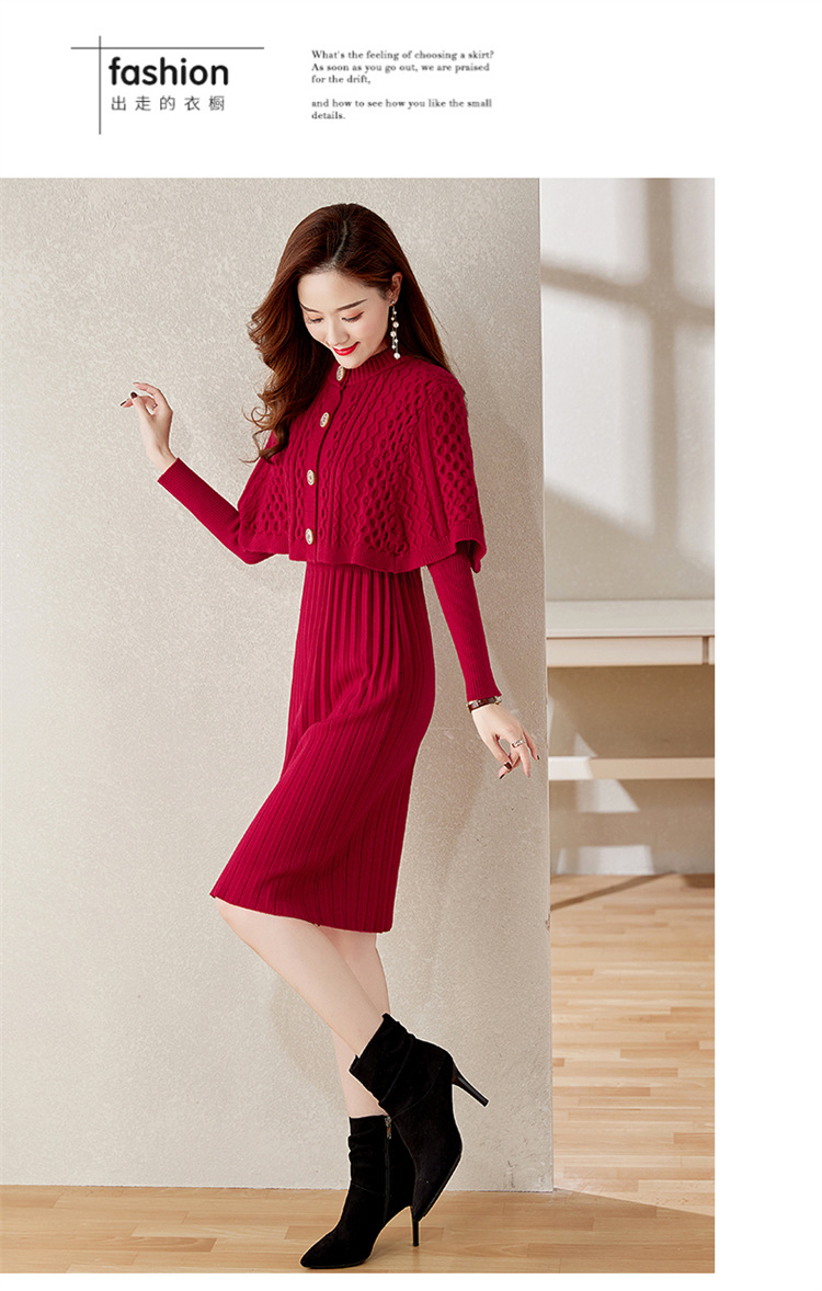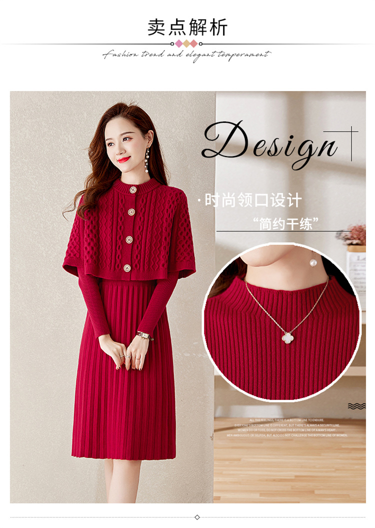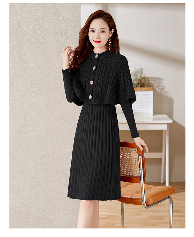 小个子针织连衣裙,法式气质毛衣裙披肩两件套装HR-WY23239