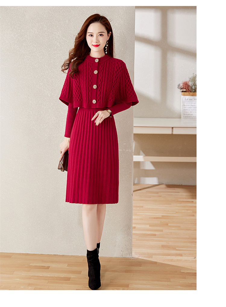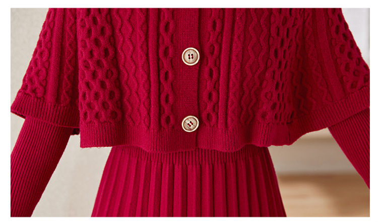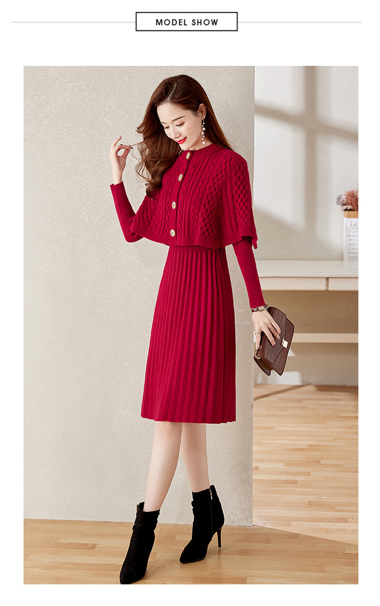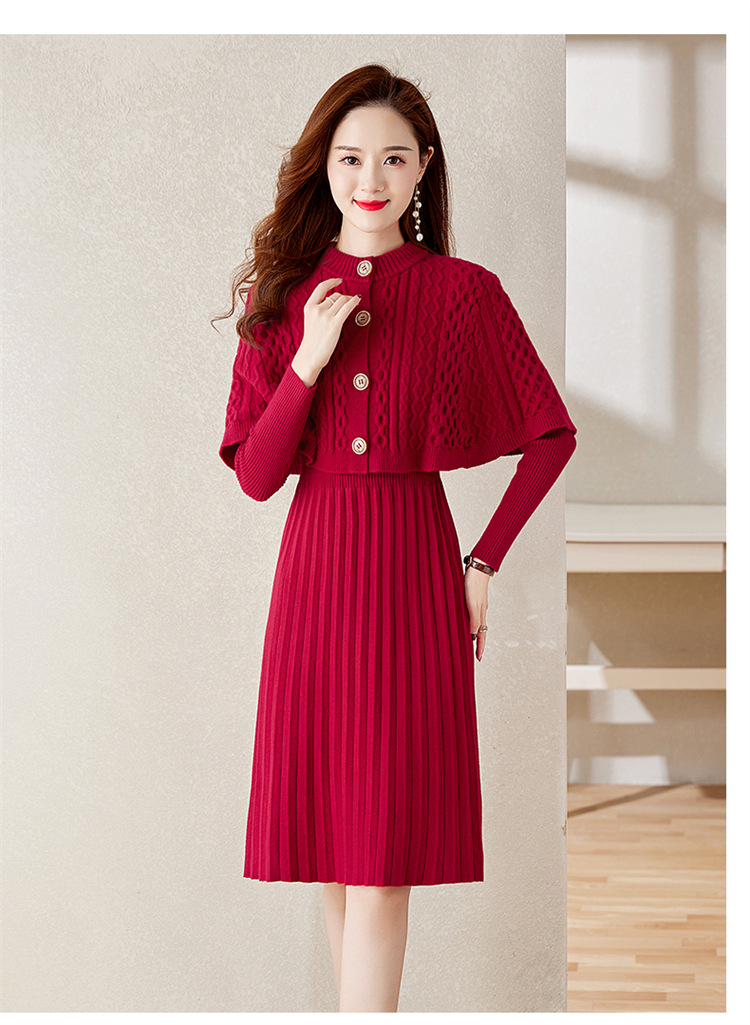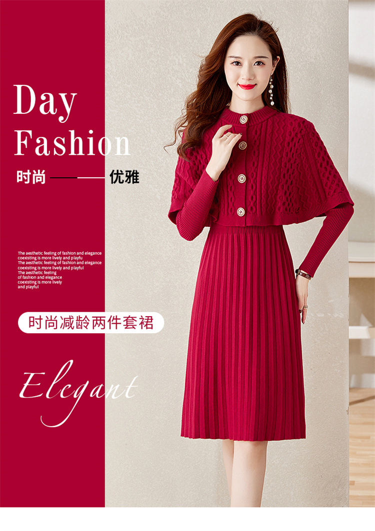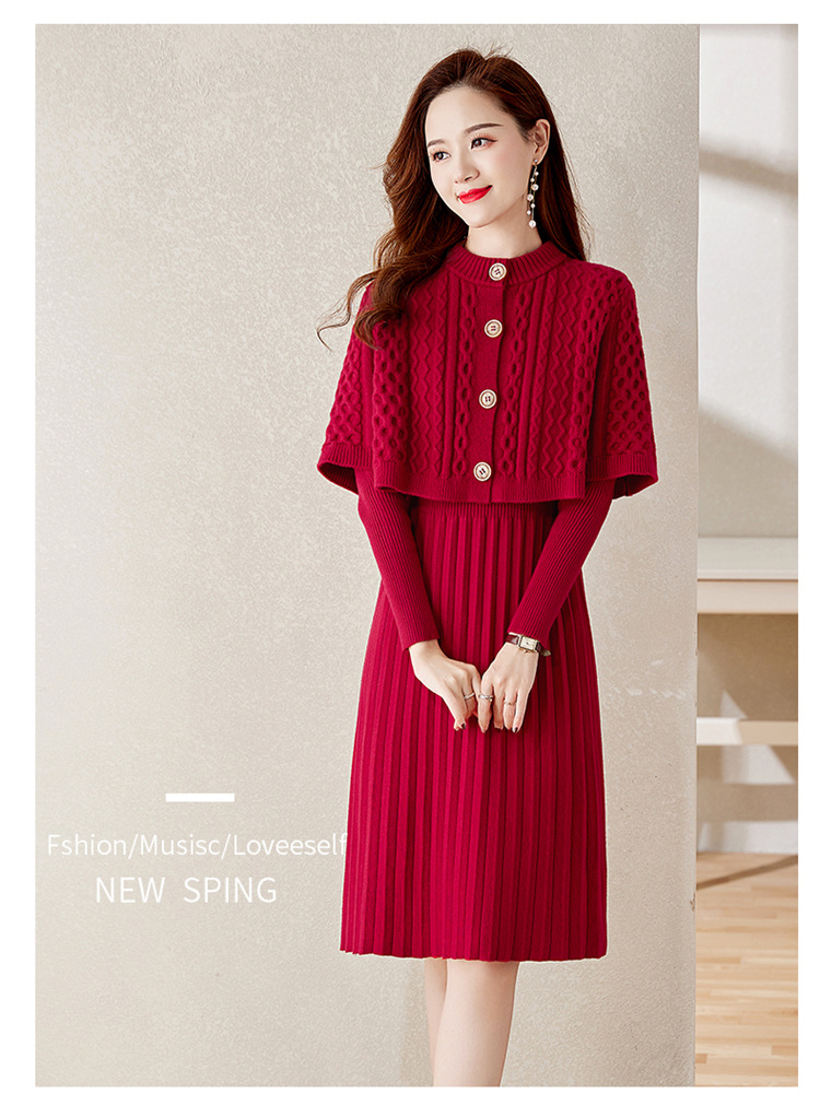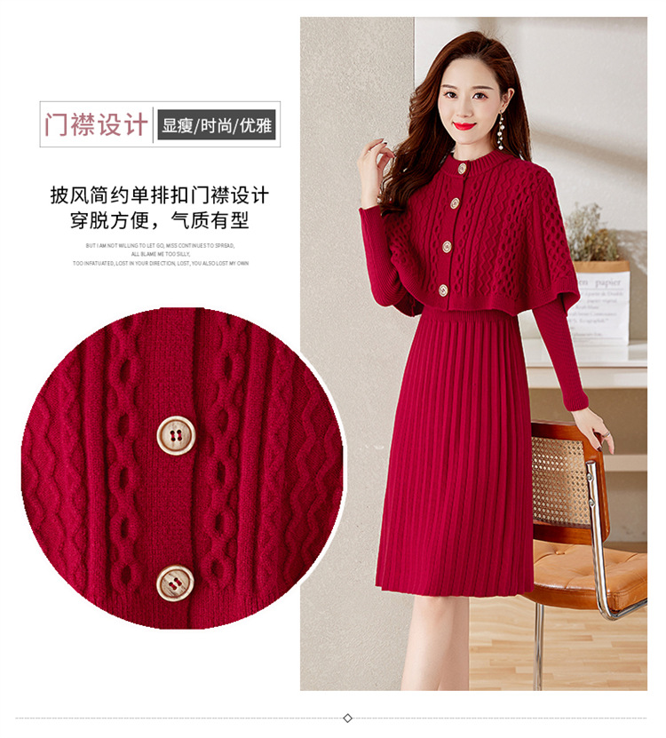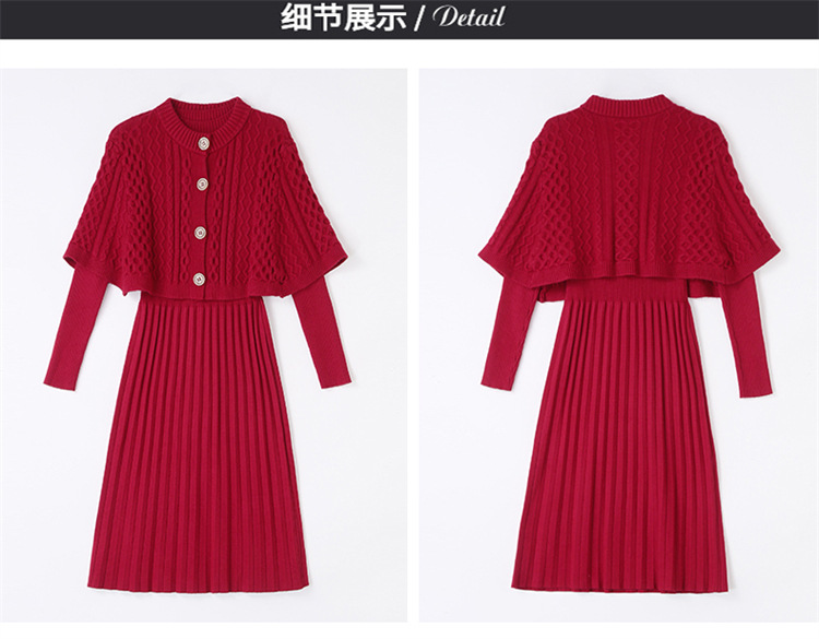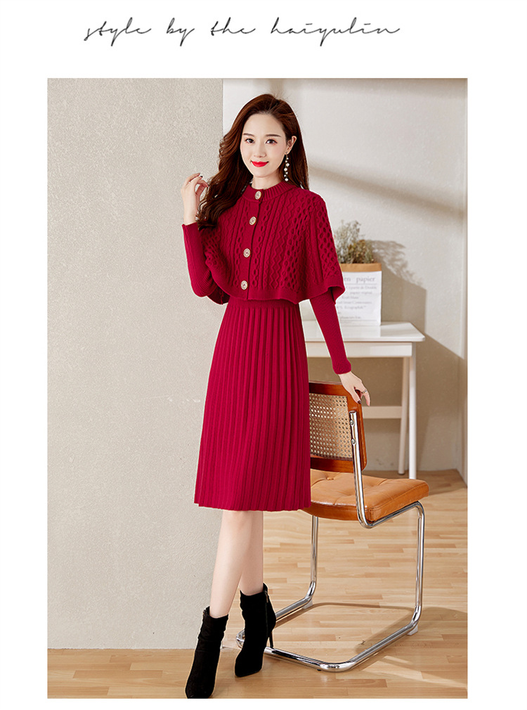 小个子针织连衣裙,法式气质毛衣裙披肩两件套装HR-WY23239