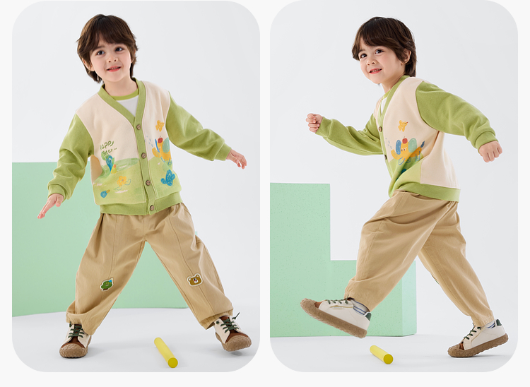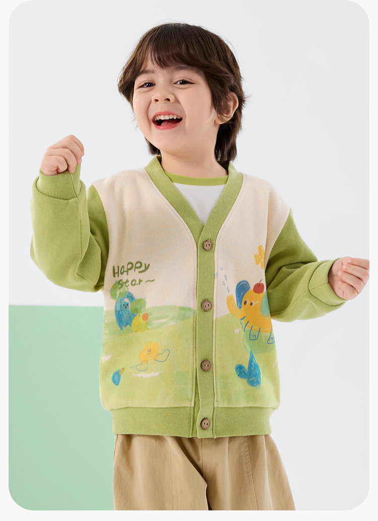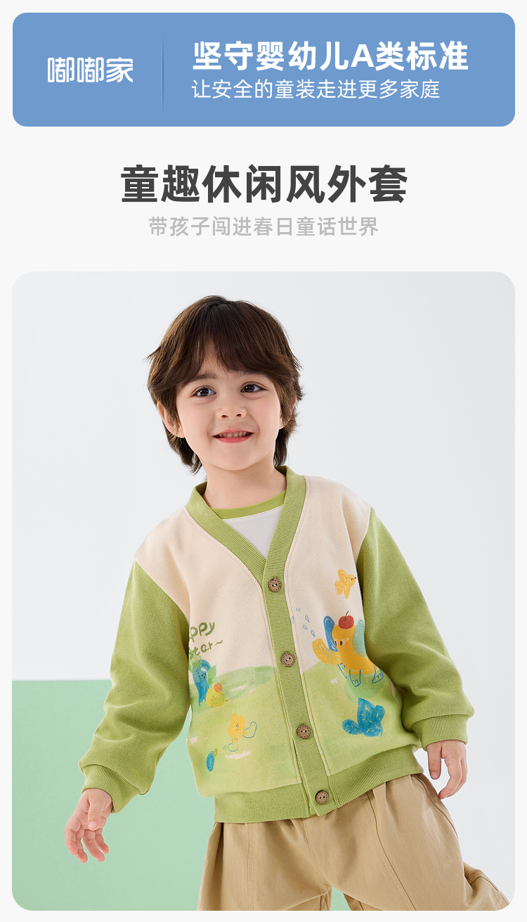 嘟嘟家儿童外套春装男童针织衫宽松女童开衫春秋宝宝上衣可爱童装D6AWT085