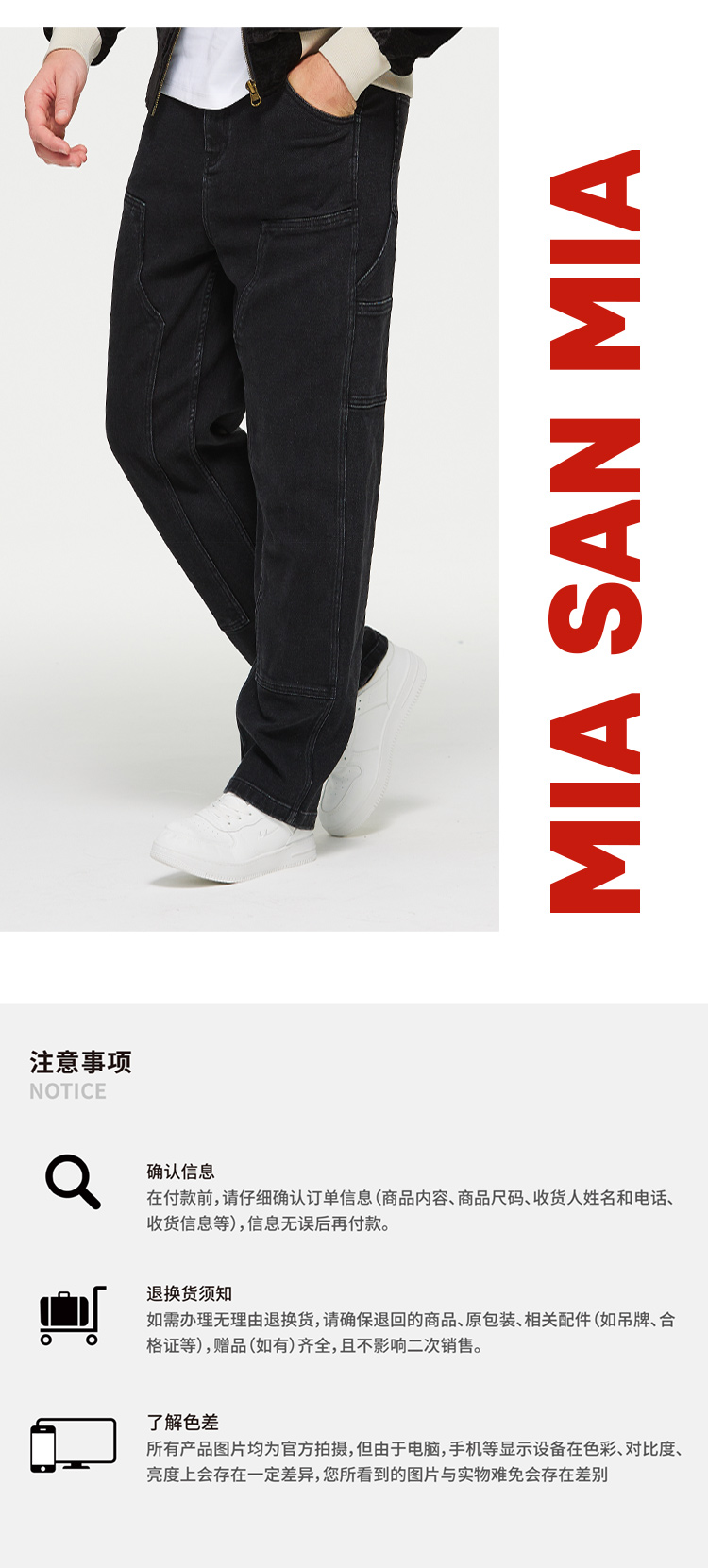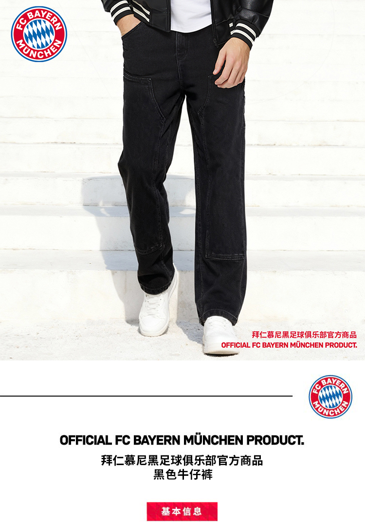【官方正版】拜仁足球俱乐部丨秋季新款黑色牛仔裤简约百搭长裤