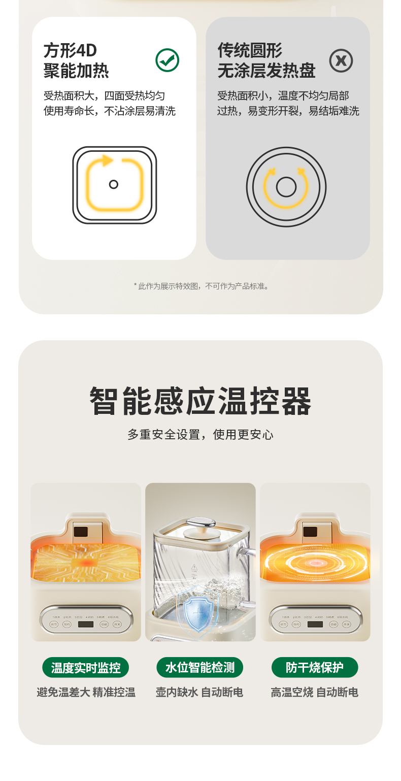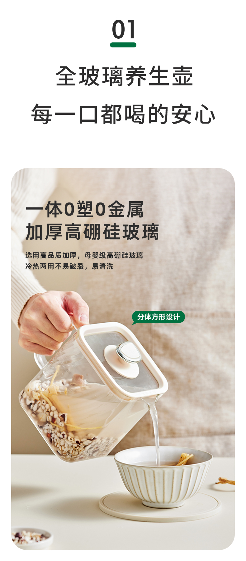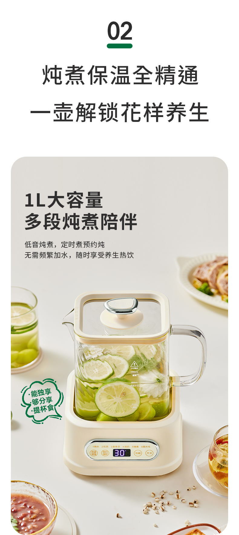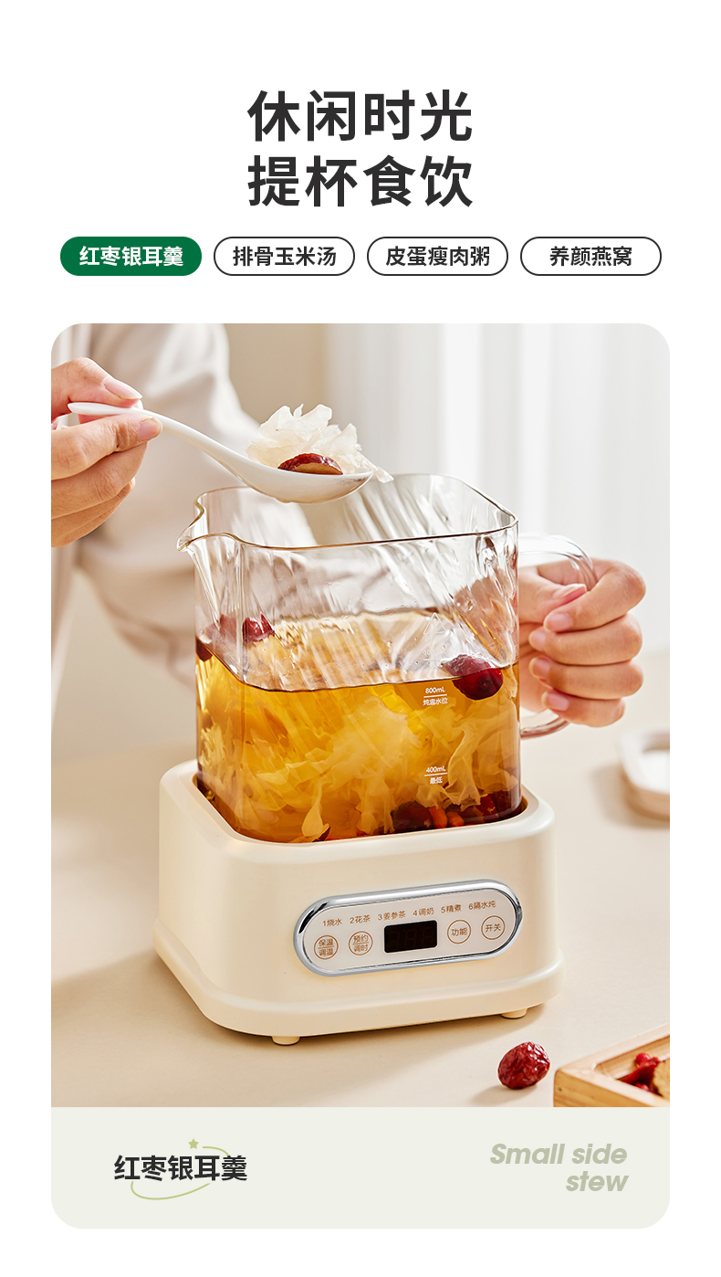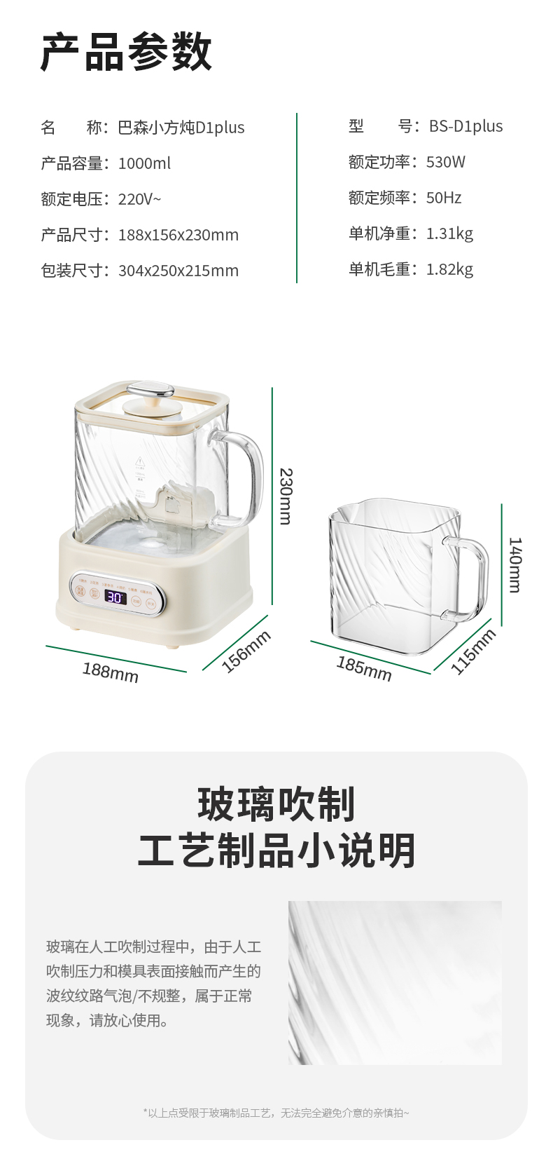 巴森小方炖养生壶1L,全玻璃多功能,多段炖煮,24小时智能预约,精准温控不干烧【预售10.16开始发货】