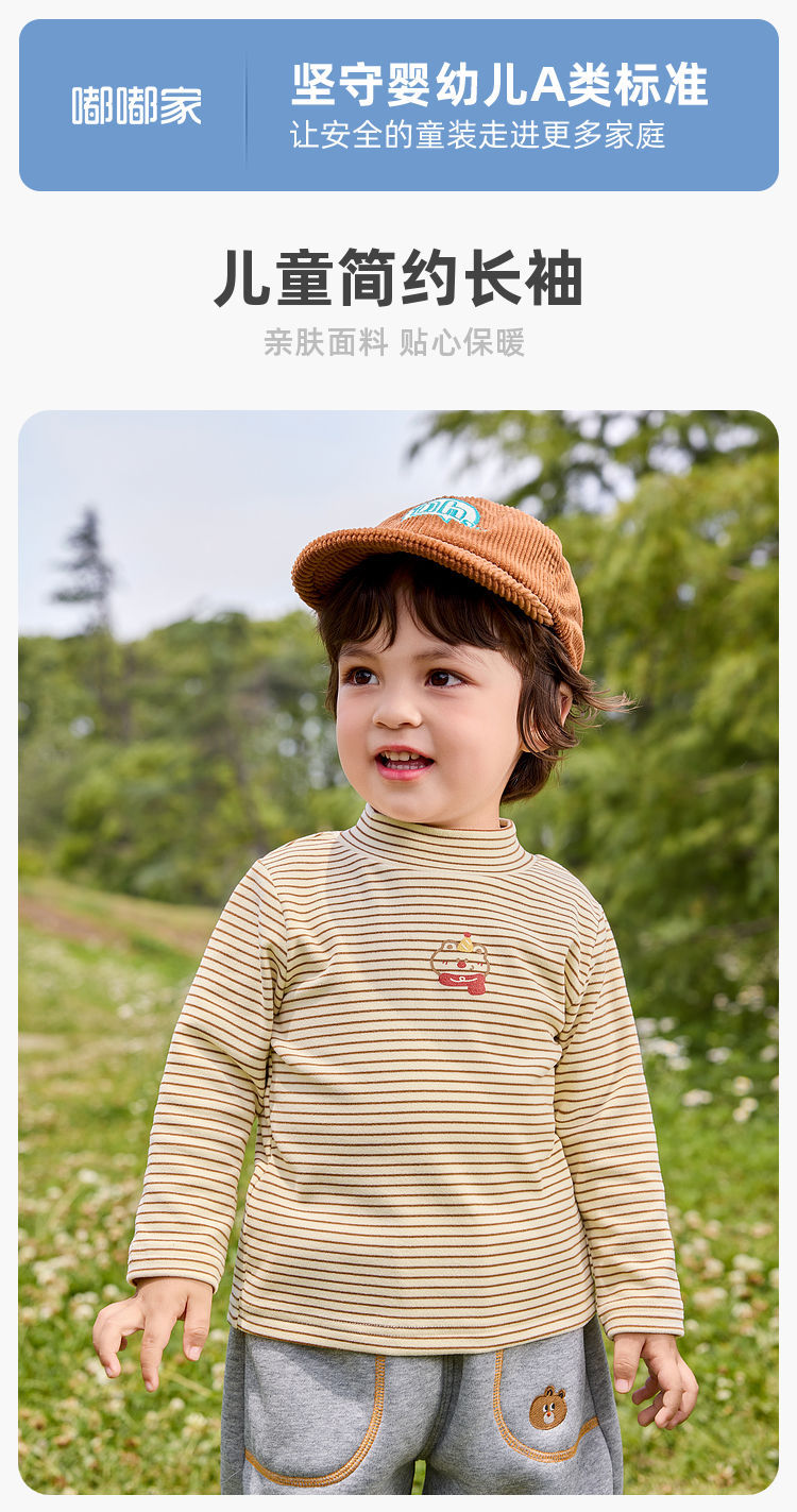 【循环发热】嘟嘟家儿童半高领T恤秋季宝宝7A抑菌打底衫男童秋装