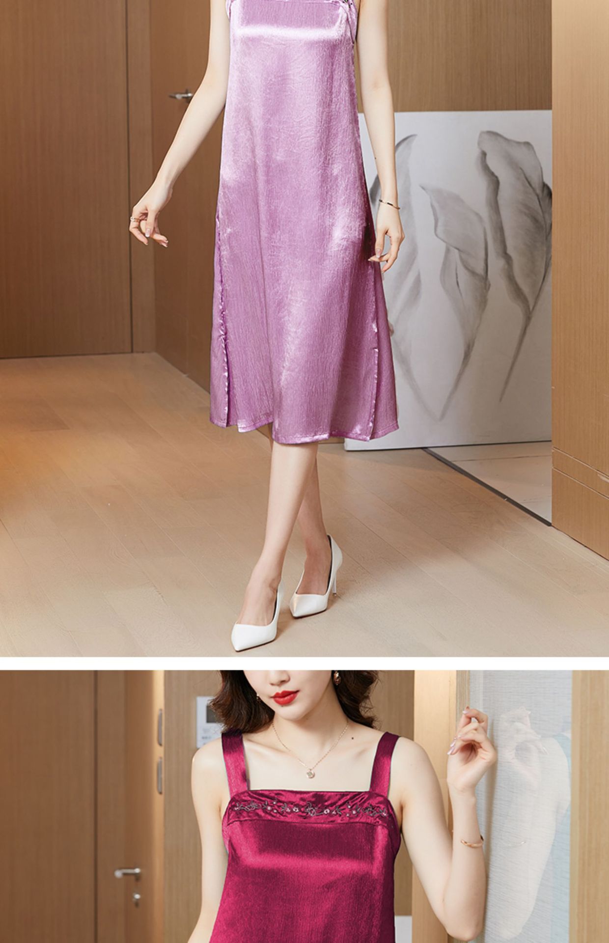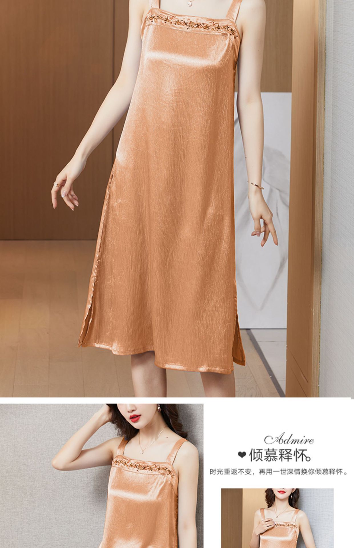 纯色仿香云纱,无袖裙内搭裙子宽松显瘦吊带裙KQL-9860