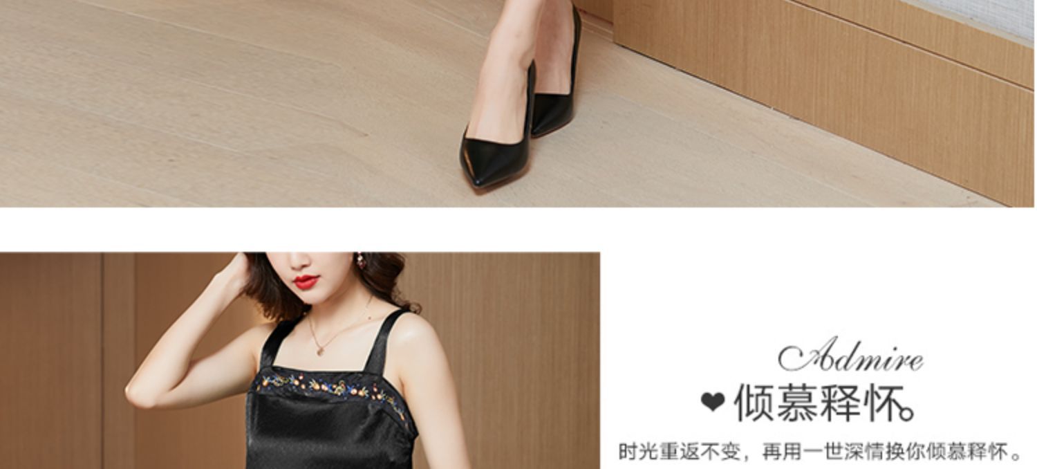 新款百搭浅口尖头中跟舒适真软皮时尚单鞋AL