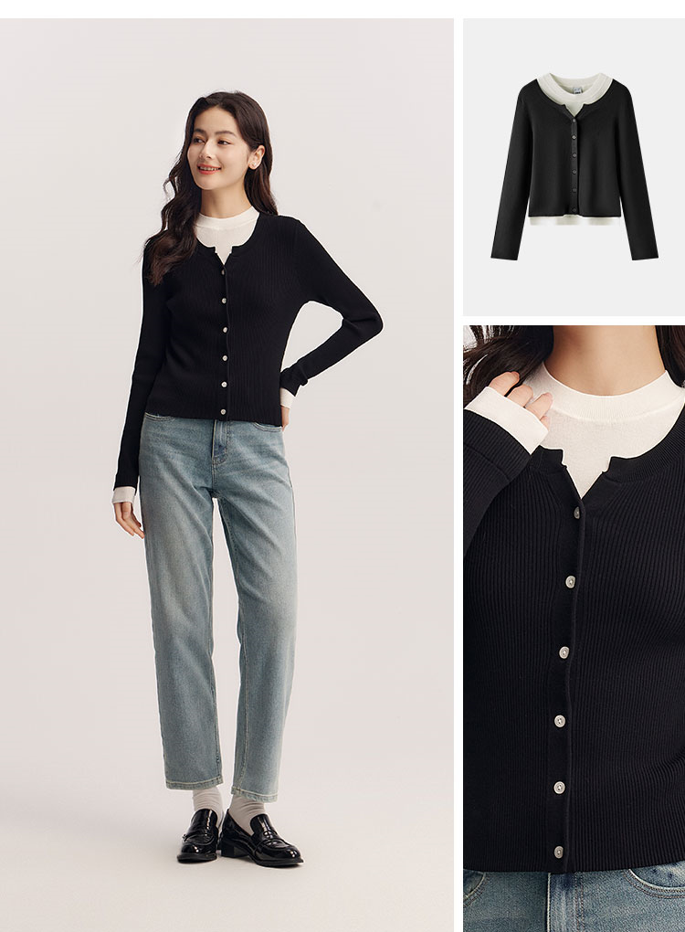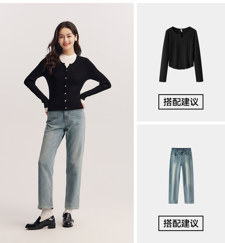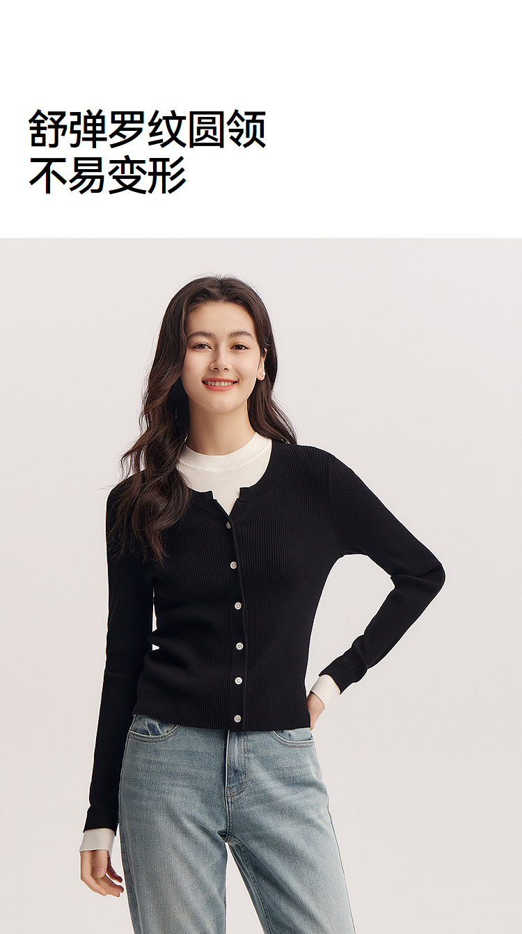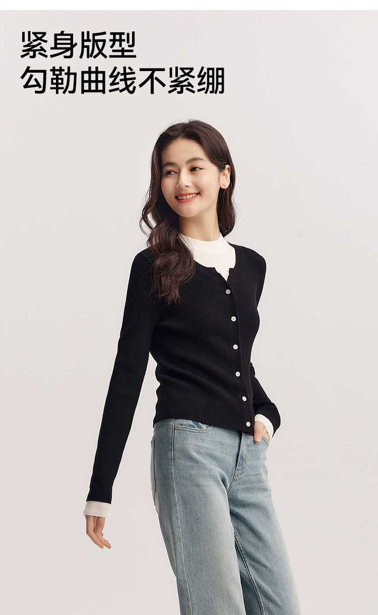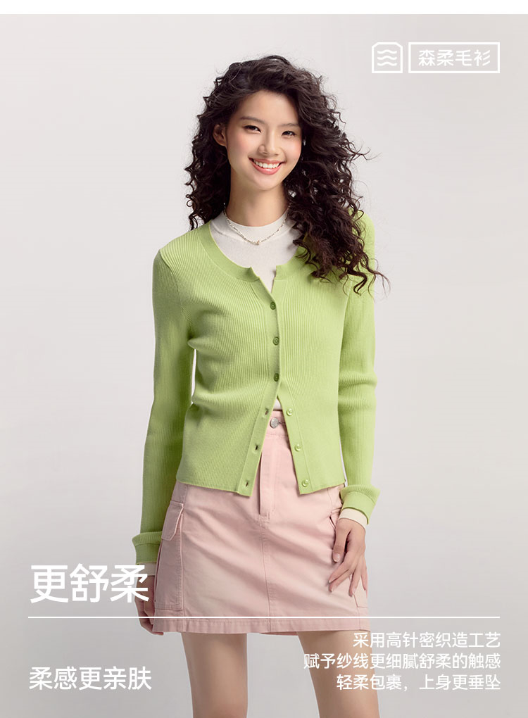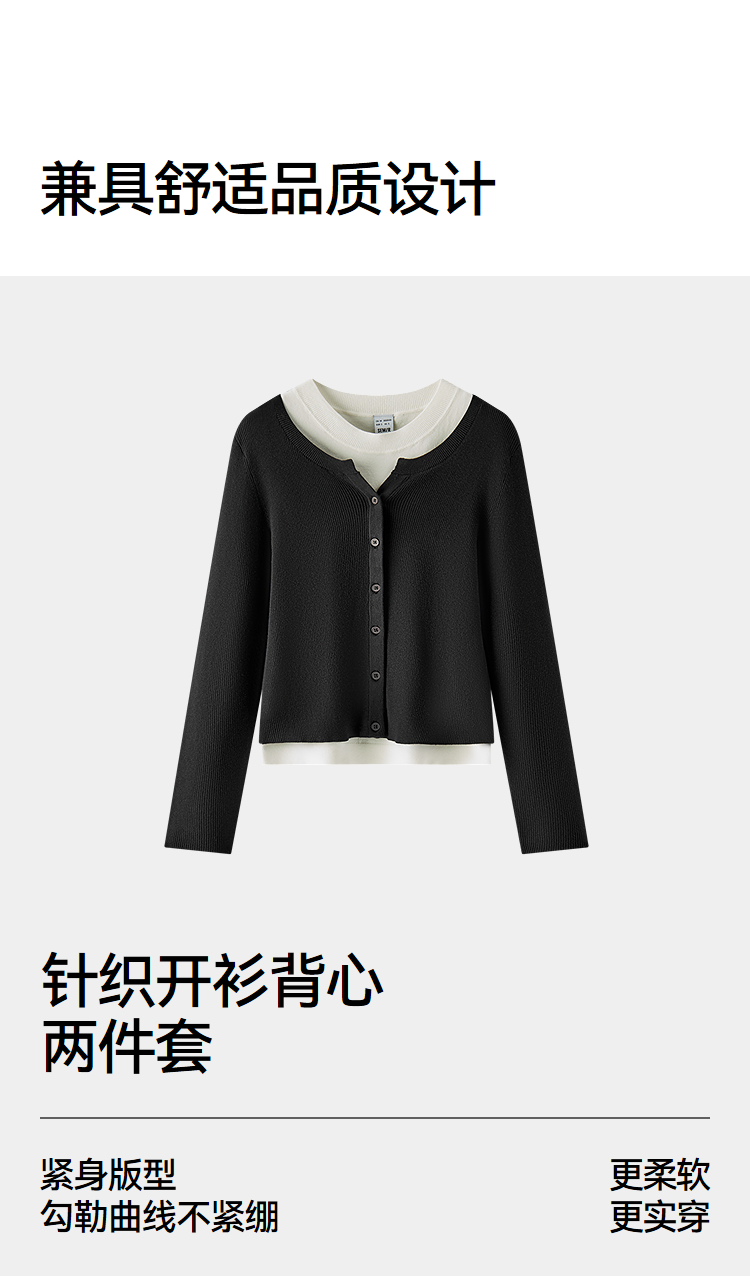 森柔|森马针织开衫女春季紧身背心正肩上衣简约显瘦小个子两件套