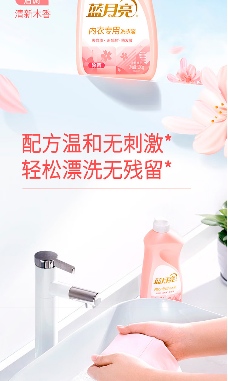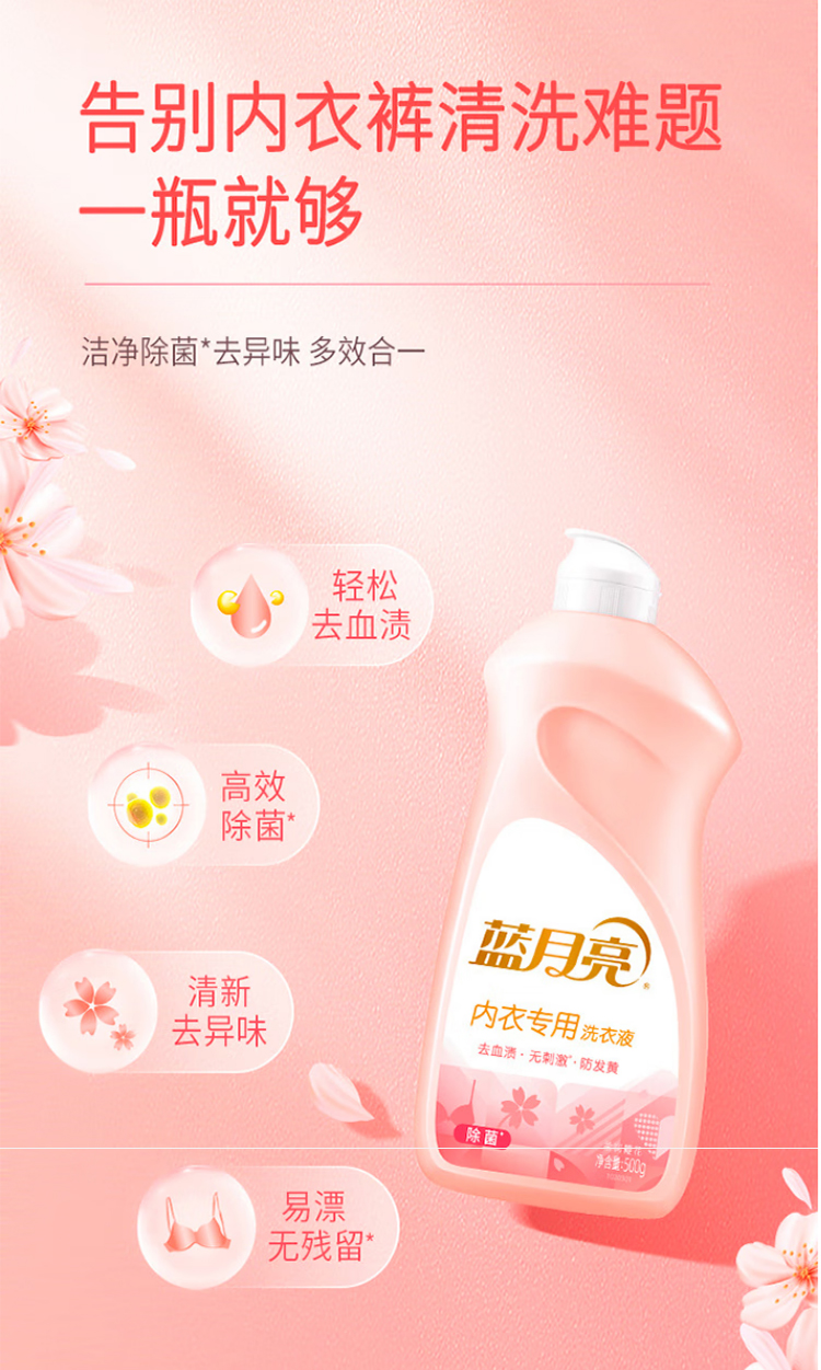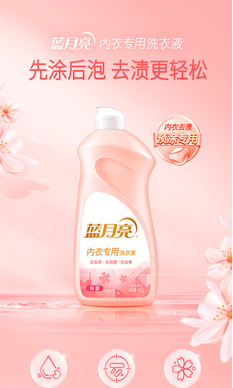 蓝月亮500G樱花内衣专用洗衣液 翻盖装