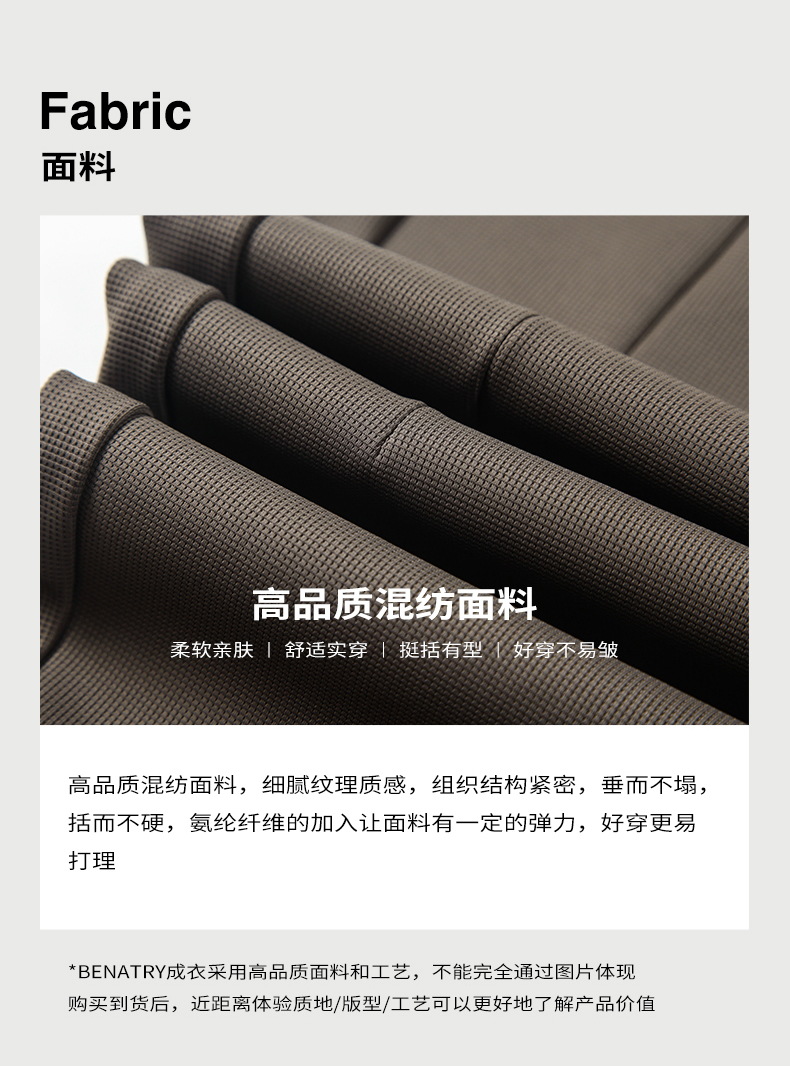 贝纳川男装致力于为不盲目追随潮流,坚持自己风格,注重细节与配饰搭配的而立之年轻熟男打造时髦、简约、轻松、真实的着衣风格。