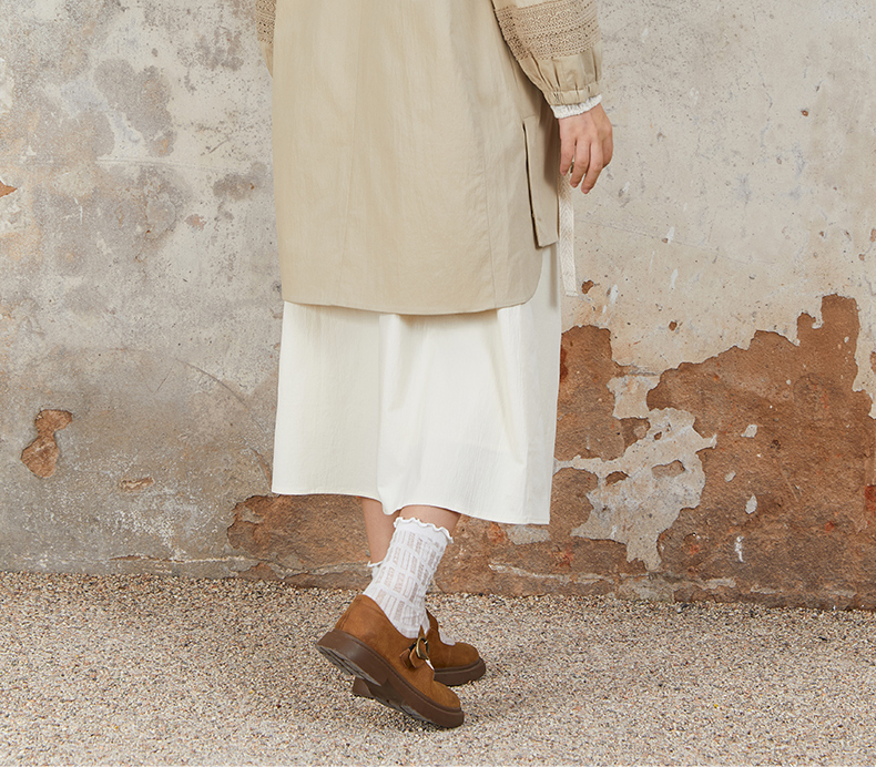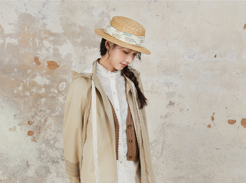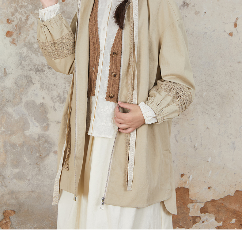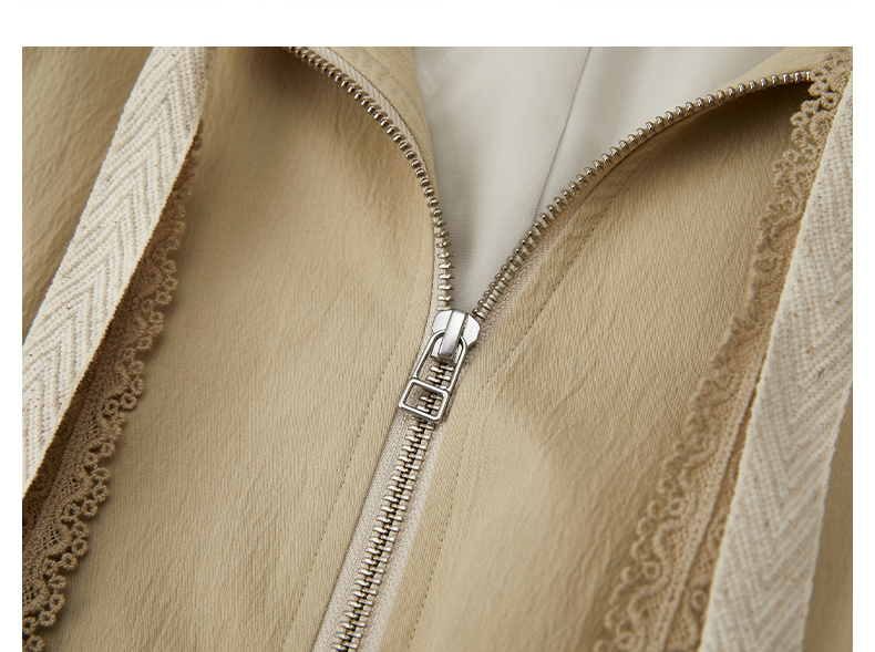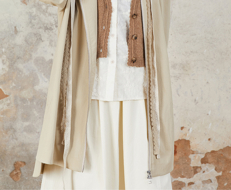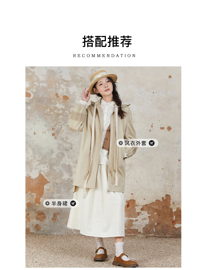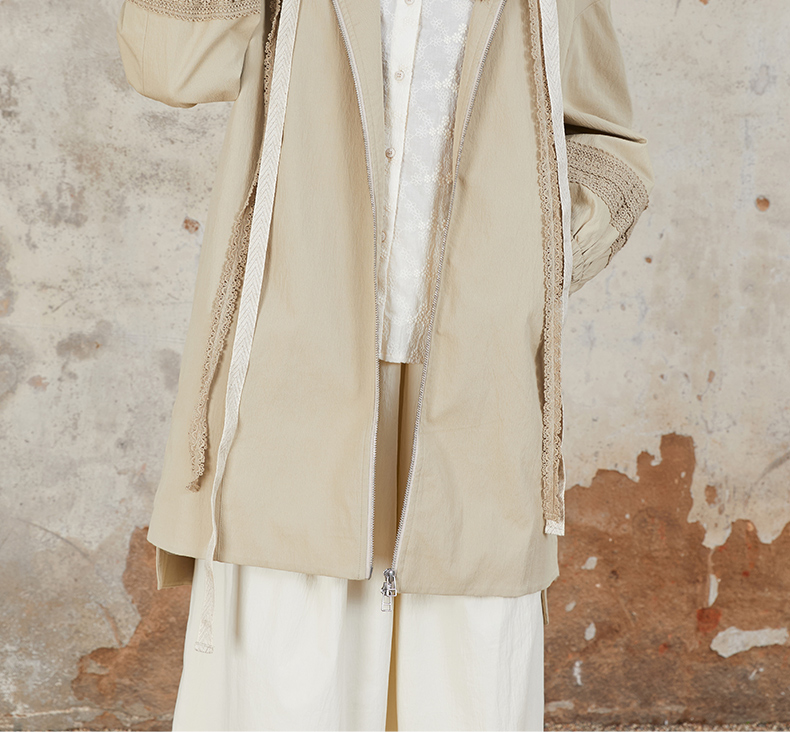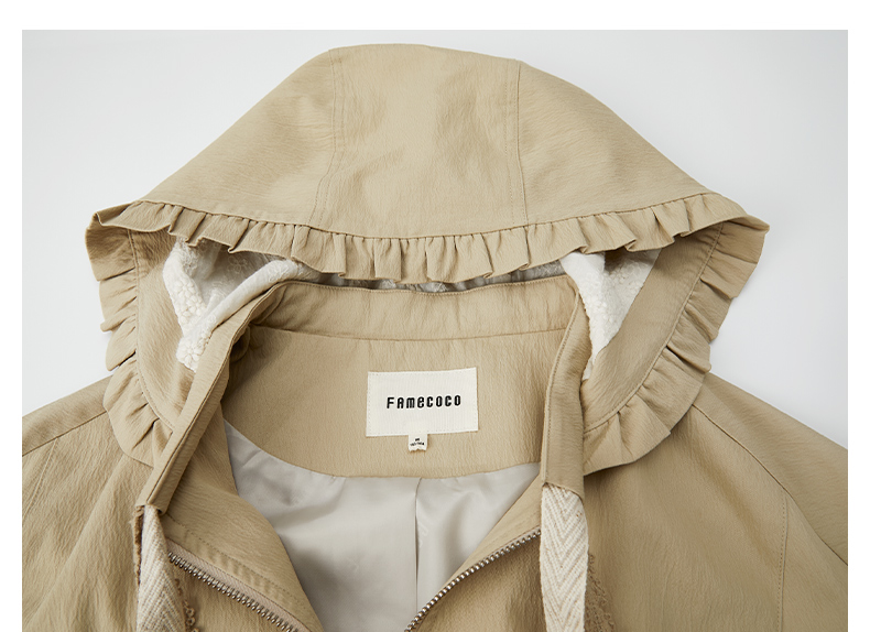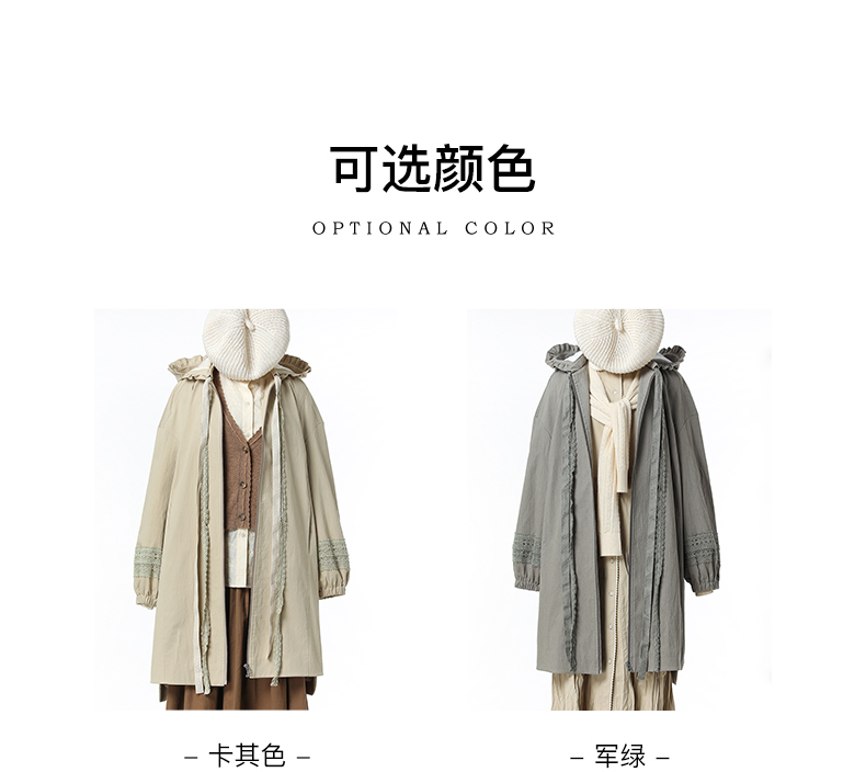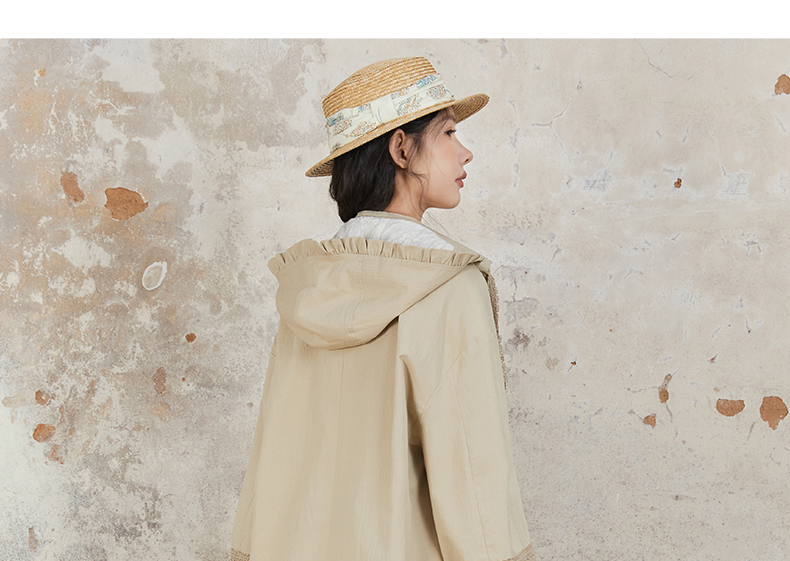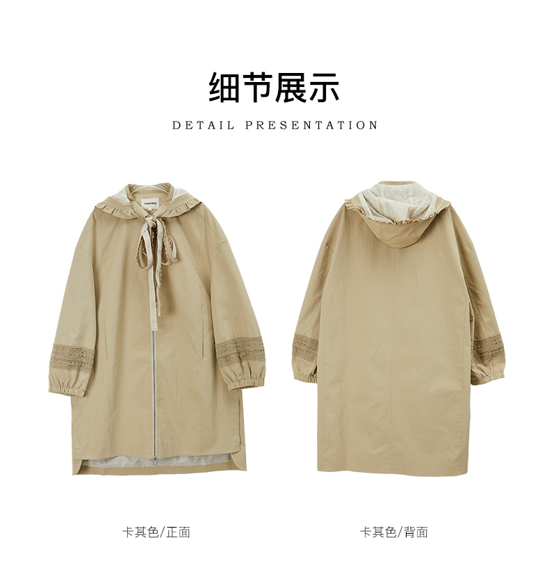 Famecoco范可儿风衣外套花边连帽中长款文艺通勤棉质女FAB6AA007