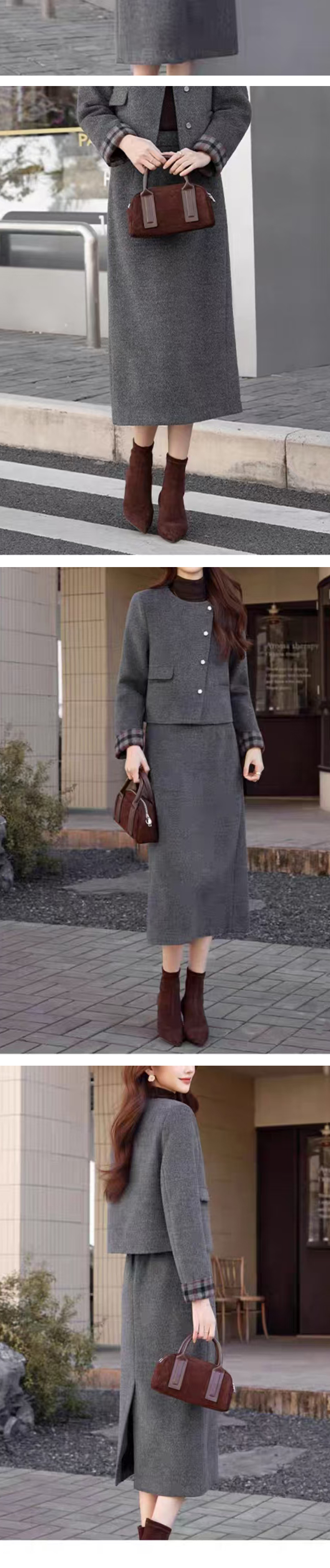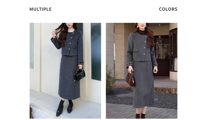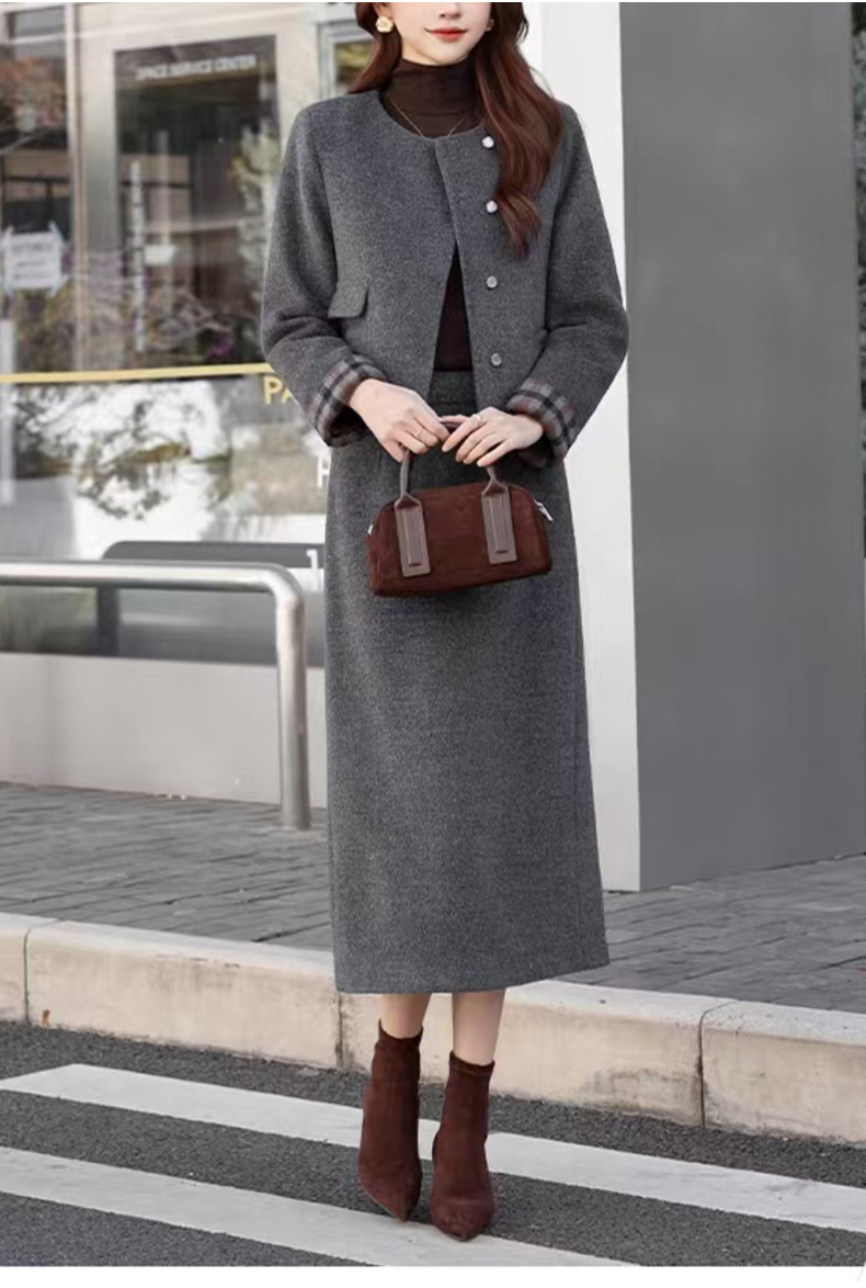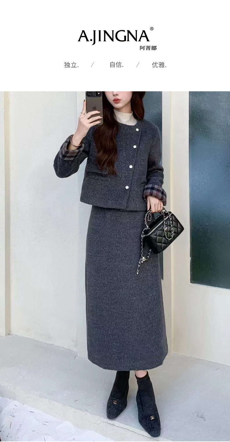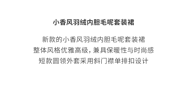 【小香风套装】阿菁娜春季新款小香风羽绒内胆套装毛呢外观温暖不臃肿90白鸭绒填充外套F31C230011