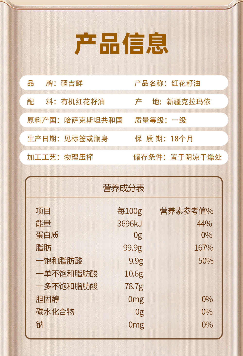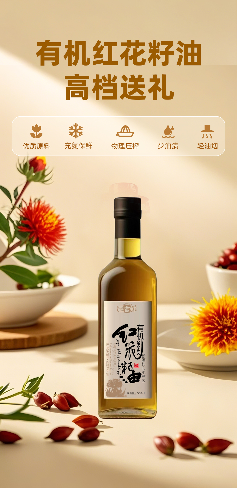 【采购下架】【助农】新疆疆吉鲜有机红花籽油500mL*2(礼盒)