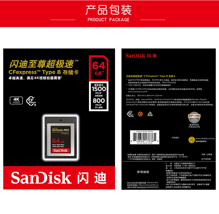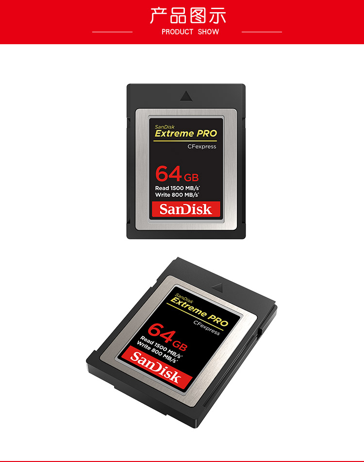 Sandisk闪迪高速SD卡 64GCF存储卡4k至尊超极速单反相机内存卡V90