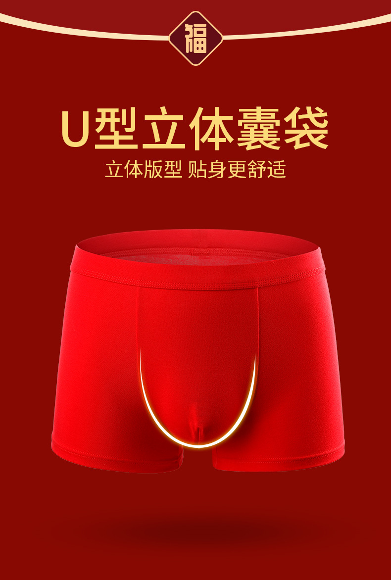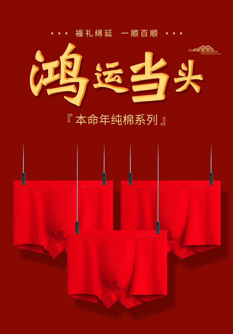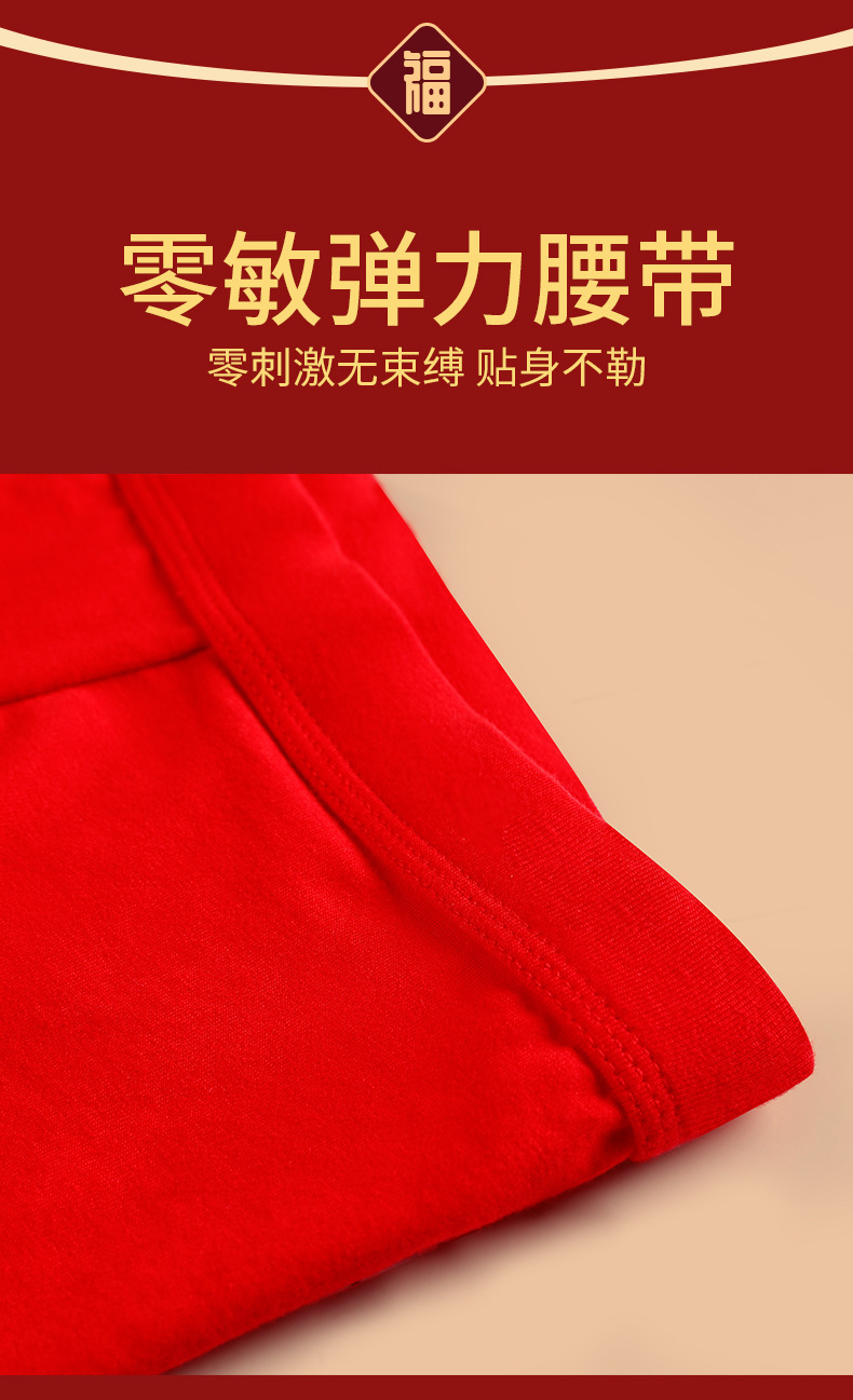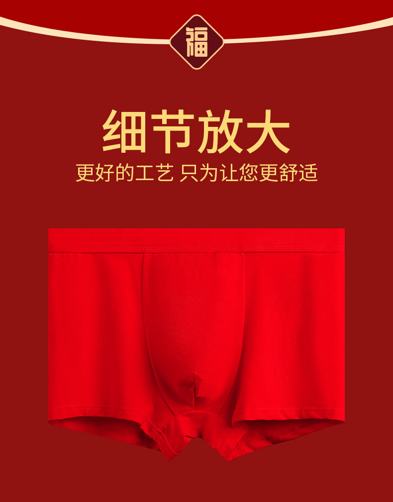 男士喜庆60S精梳棉内裤 本命年结婚中腰抗菌透气纯棉平角内裤