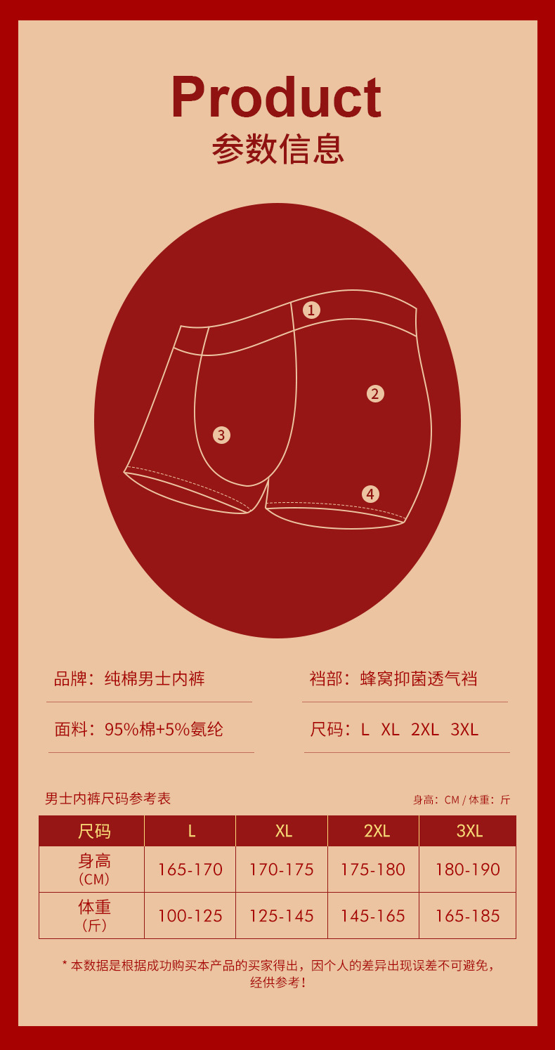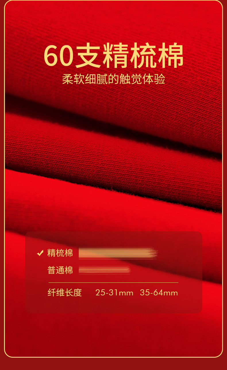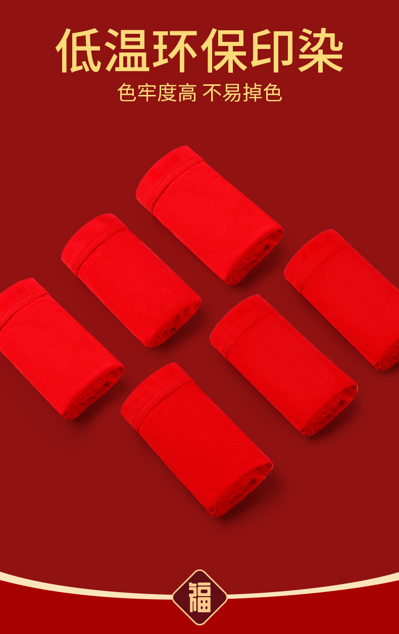 男士喜庆60S精梳棉内裤 本命年结婚中腰抗菌透气纯棉平角内裤