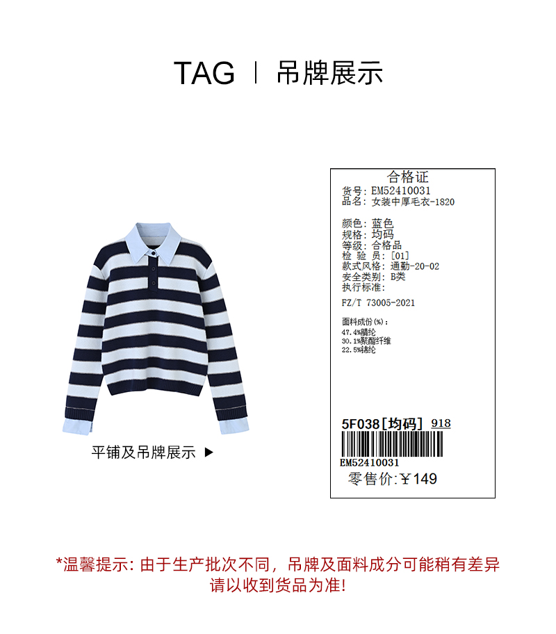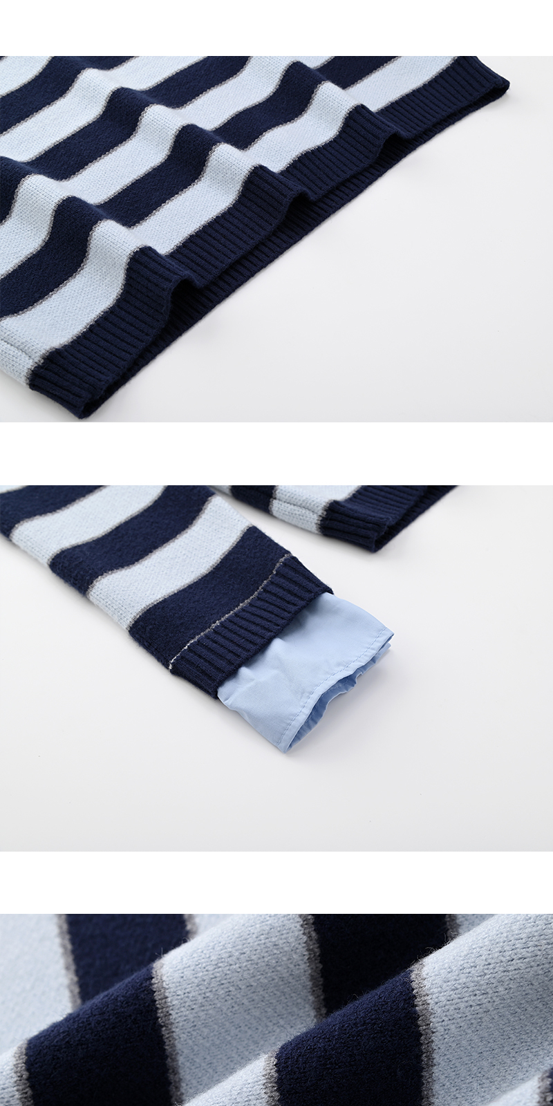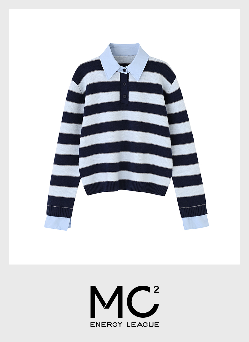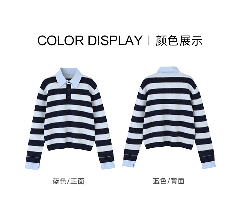 女装翻领拼接宽条纹毛衣-1820M5241003