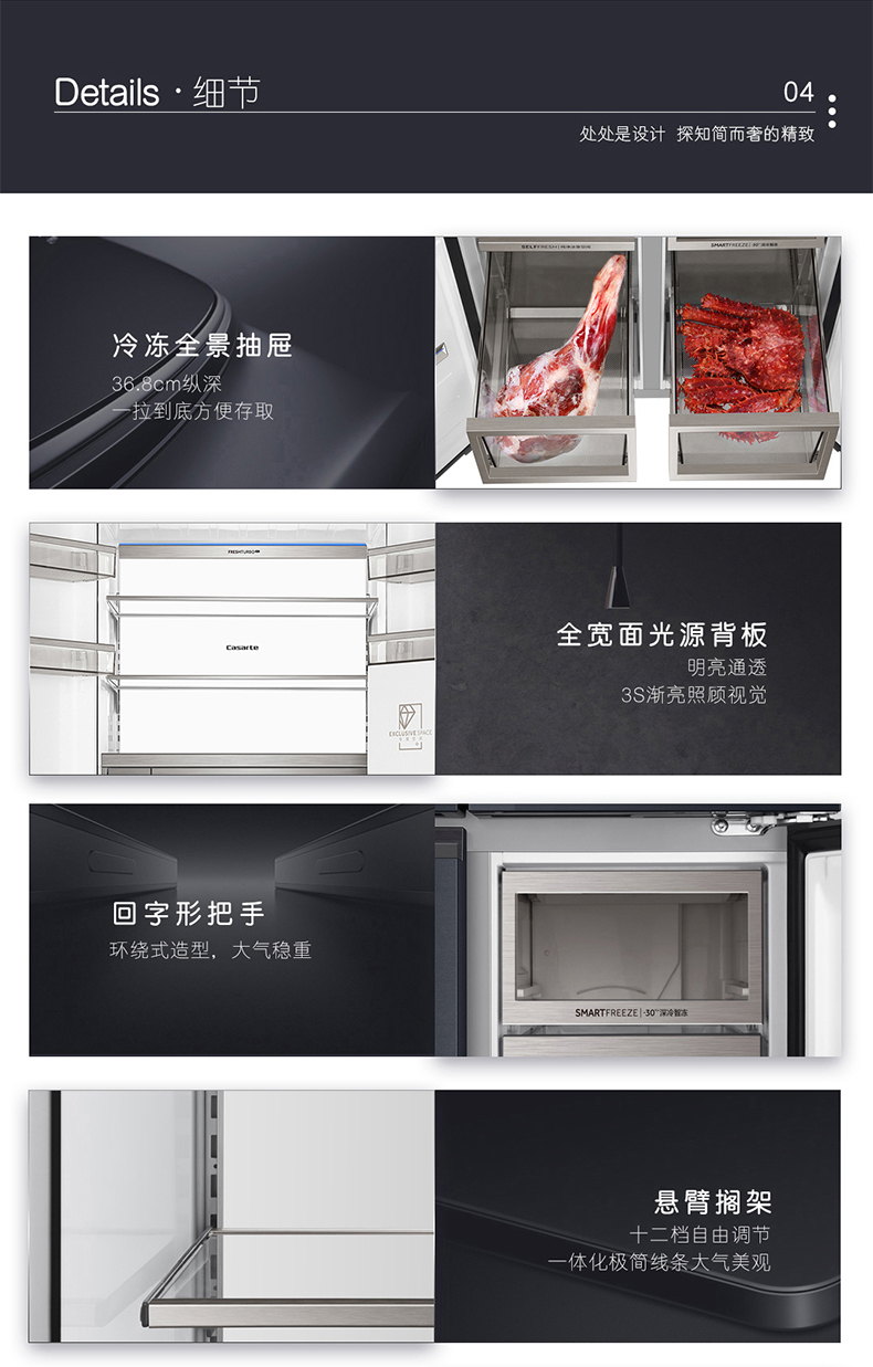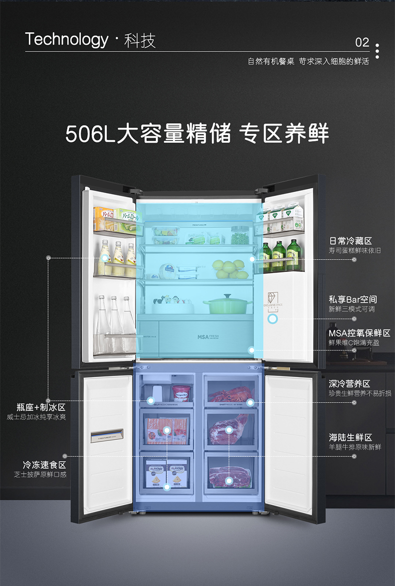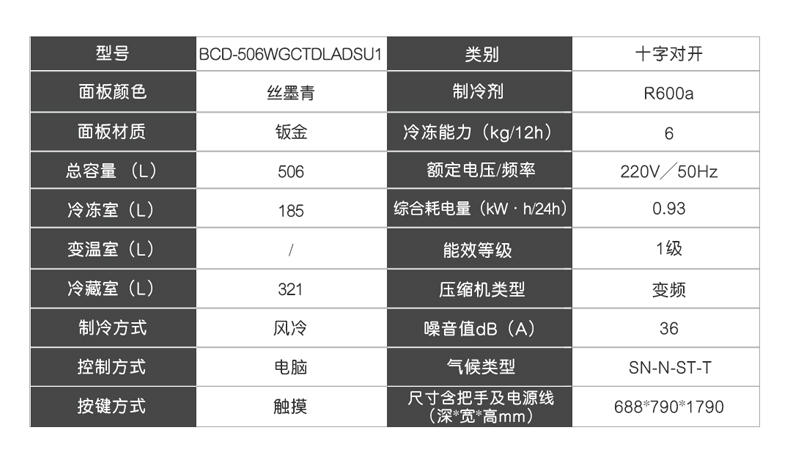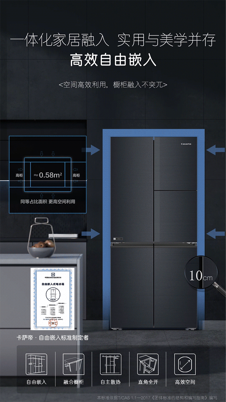 卡萨帝506L十字对开门超薄嵌入式无霜变频家用智能冰箱BCD-506WGCTDLADSU1